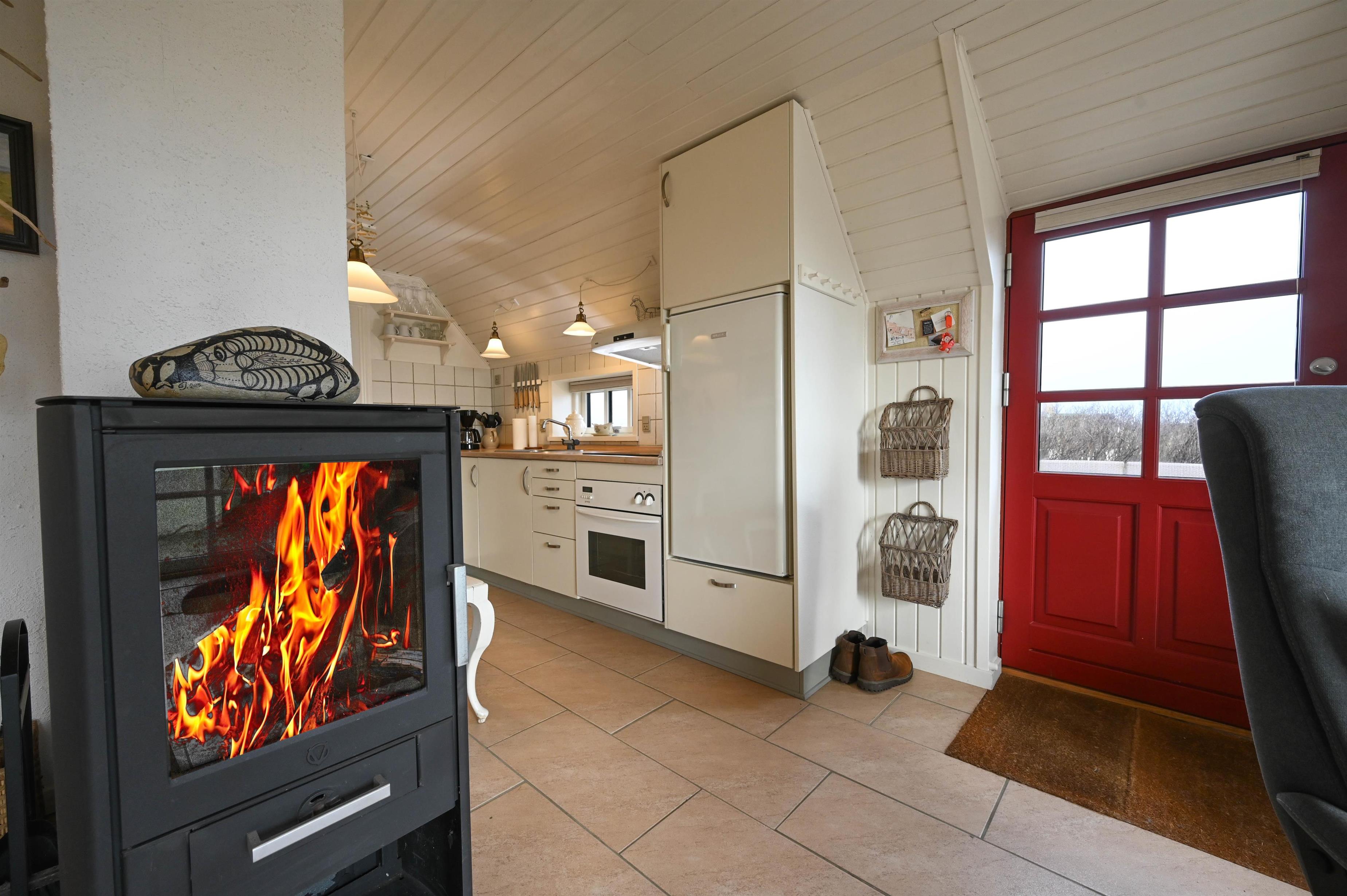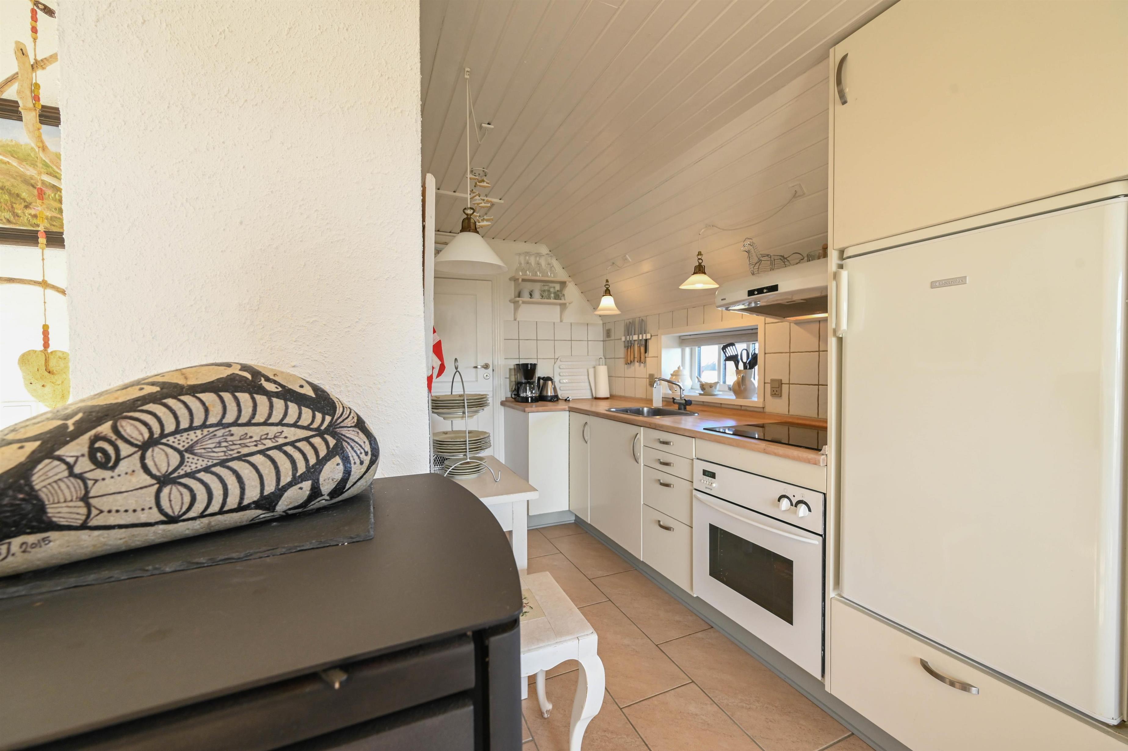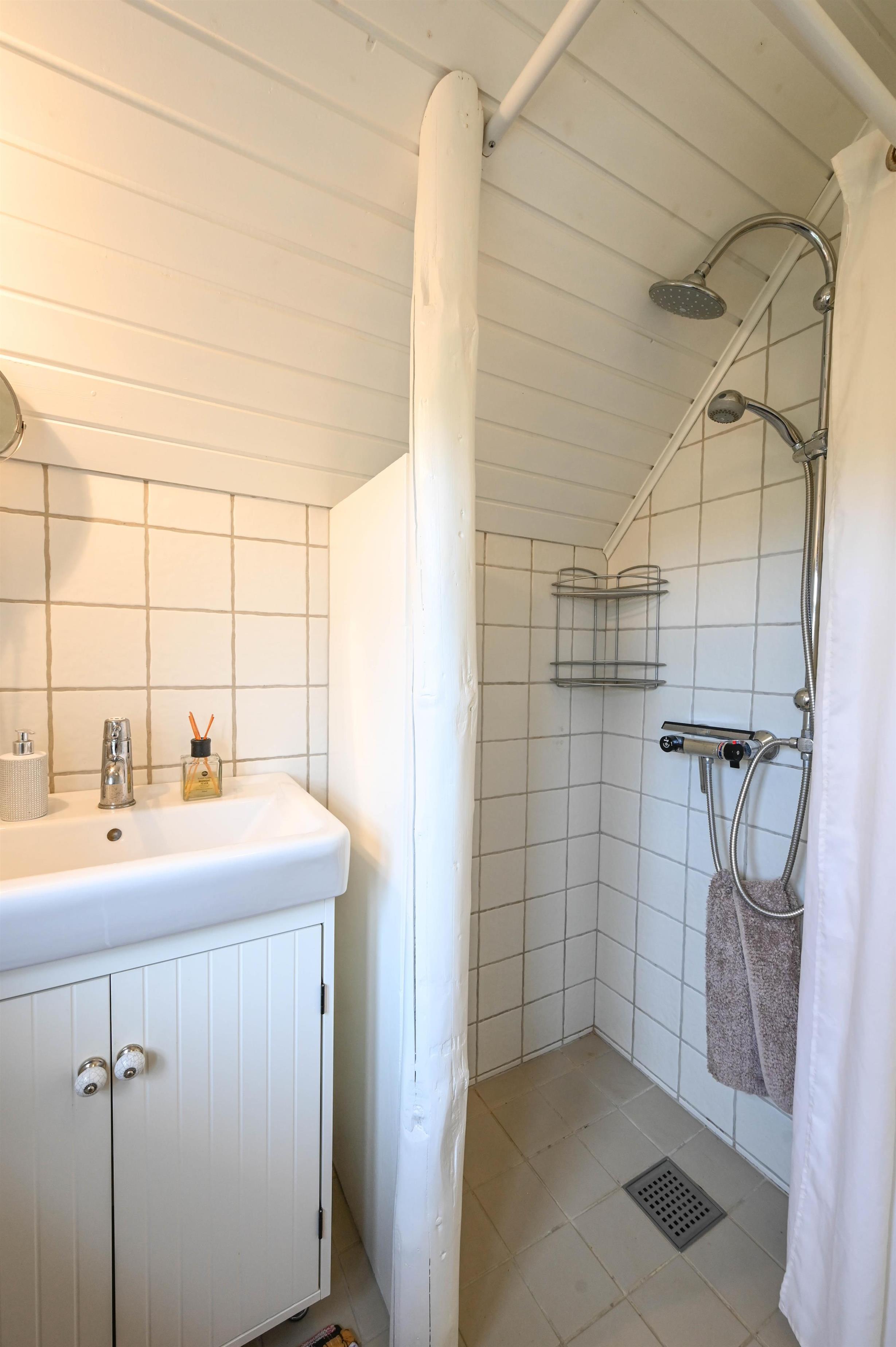 Tophuset blev opført i 1932 og er siden nænsomt moderniseret, så det i dag fremstår lyst, tidssvarende og utroligt hyggeligt. Indenfor mødes du af et indbydende opholdsrum med åbent køkken/alrum, brændeovn og klinkegulv med gulvvarme, der sikrer en behagelig stemning året rundt. Badeværelset er funktionelt med bruseniche og gulvvarme, og i det store soveværelse finder du en komfortabel dobbeltseng.