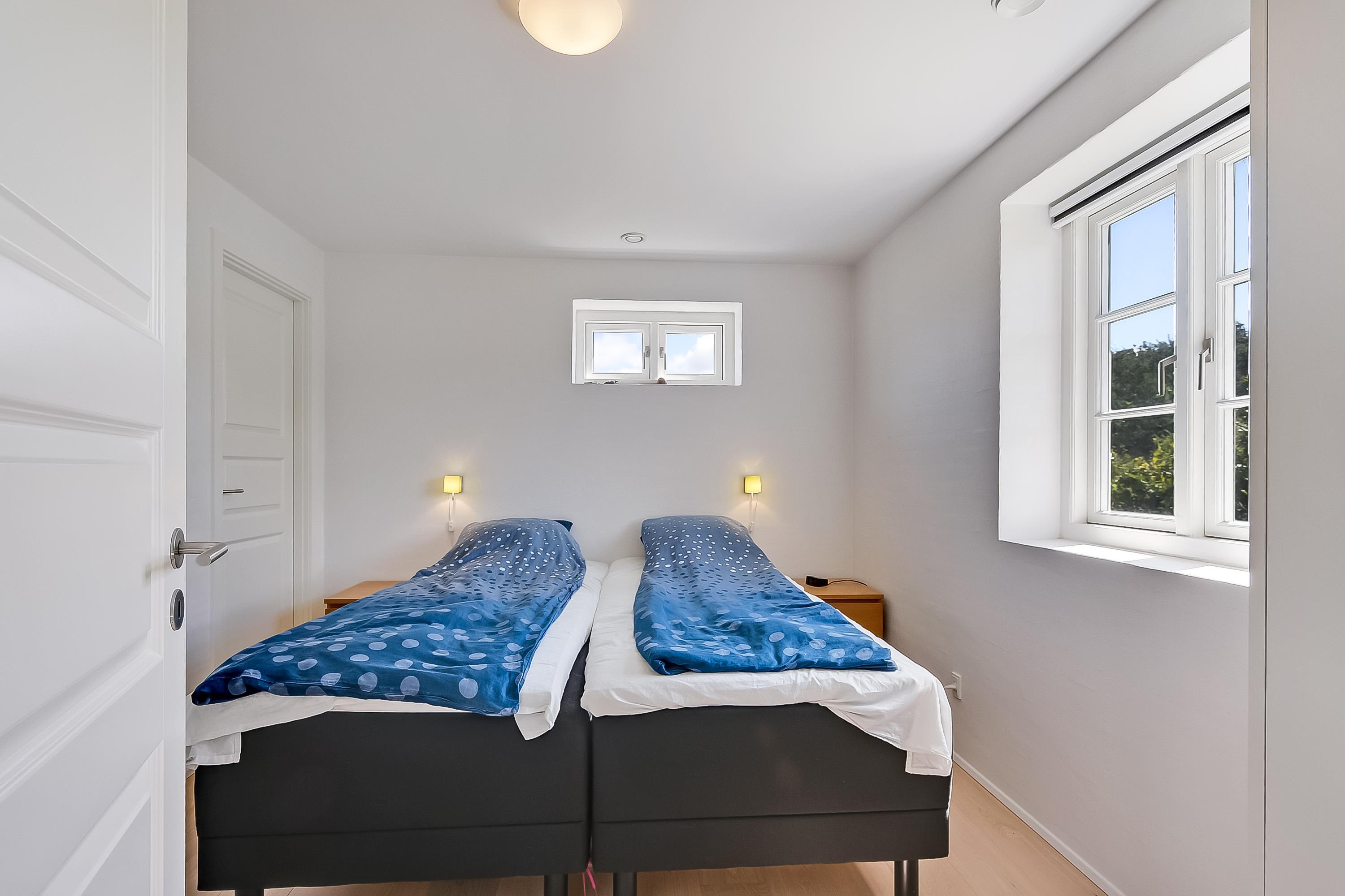 I værelserne er der trægulve, mens stue, køkken, entre og badeværelser har klinkegulve med gulvvarme i hele huset – praktisk og behageligt året rundt.
