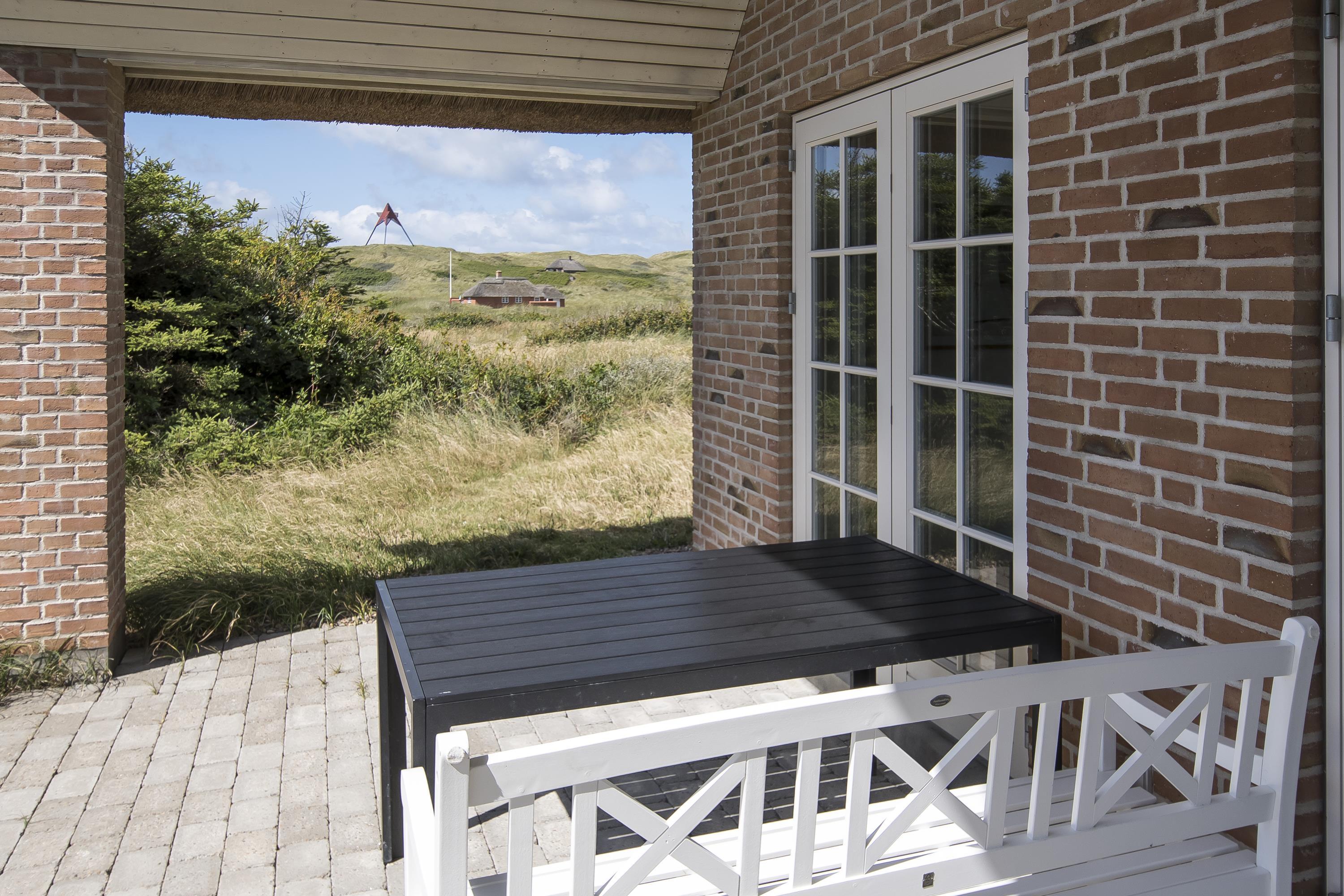 Mod syd finder du en overdækket terrasse, hvor man kan nyde solen, stilheden og lyden af vinden, der suser i marehalmen – et perfekt sted til morgenkaffen eller afslappende aftener i læ.