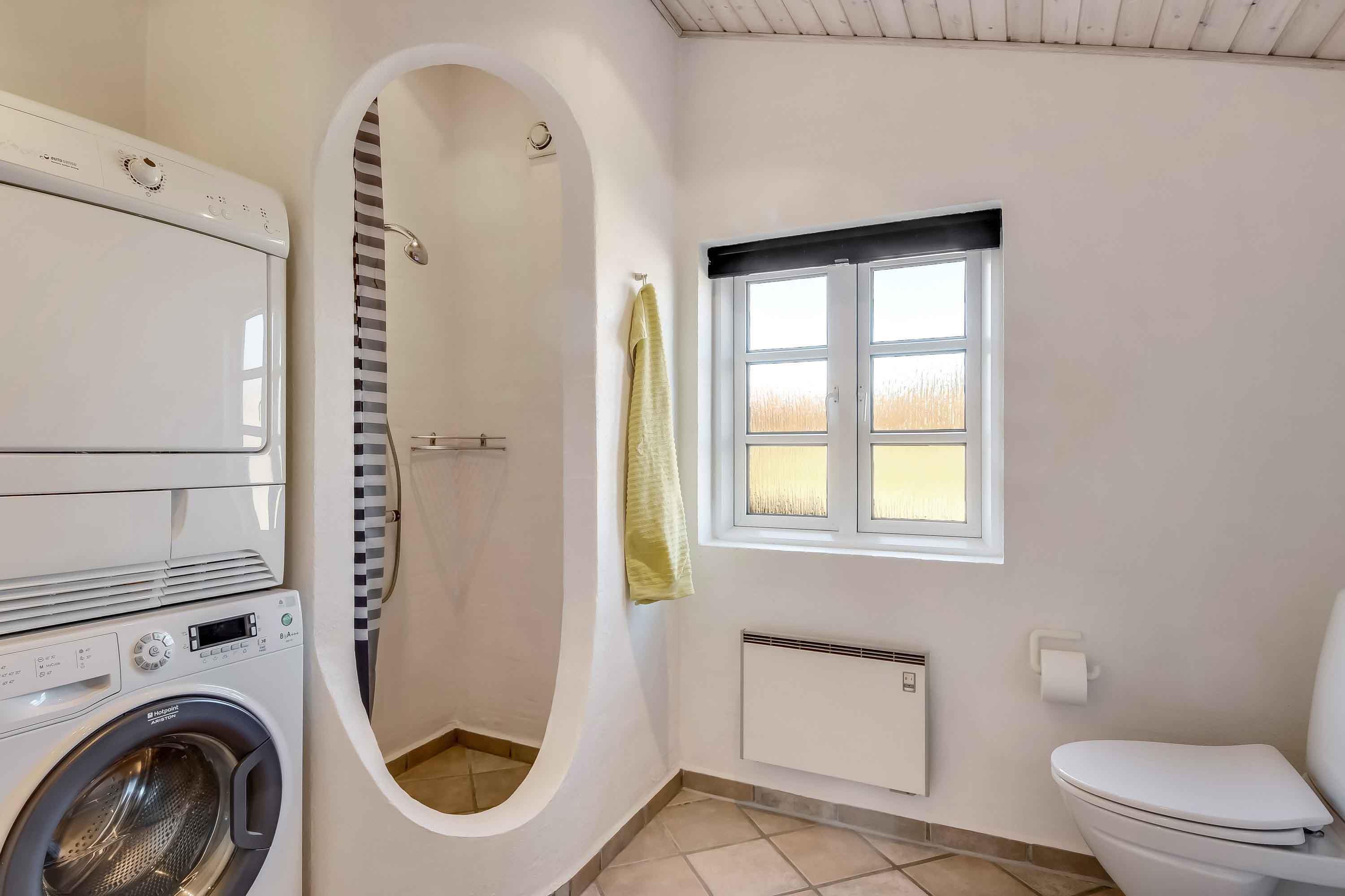 Det flotte badeværelse er med bruseniche, gulvvarme og vaskemaskine.