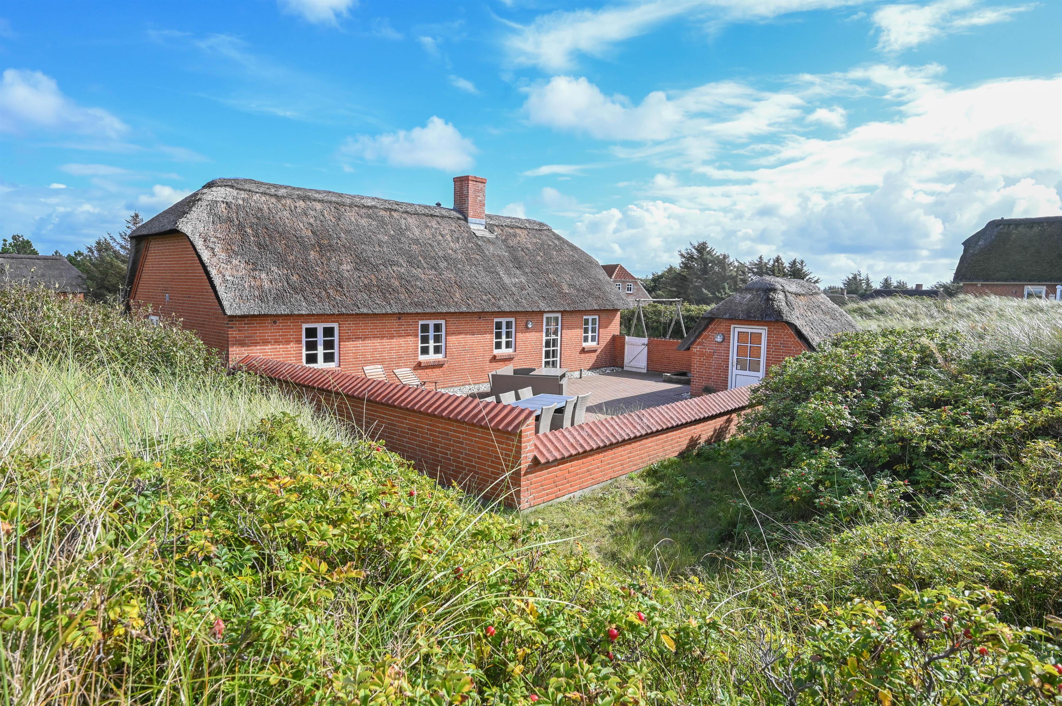 Huset ligger på en 1210 m² stor klitgrund, omgivet af smuk natur og frisk havluft. Den store, lukkede terrasse, som vender mod syd, nord og vest, byder på fantastiske læforhold – her kan du altid finde et fredfyldt hjørne i solen, uanset vindretningen.