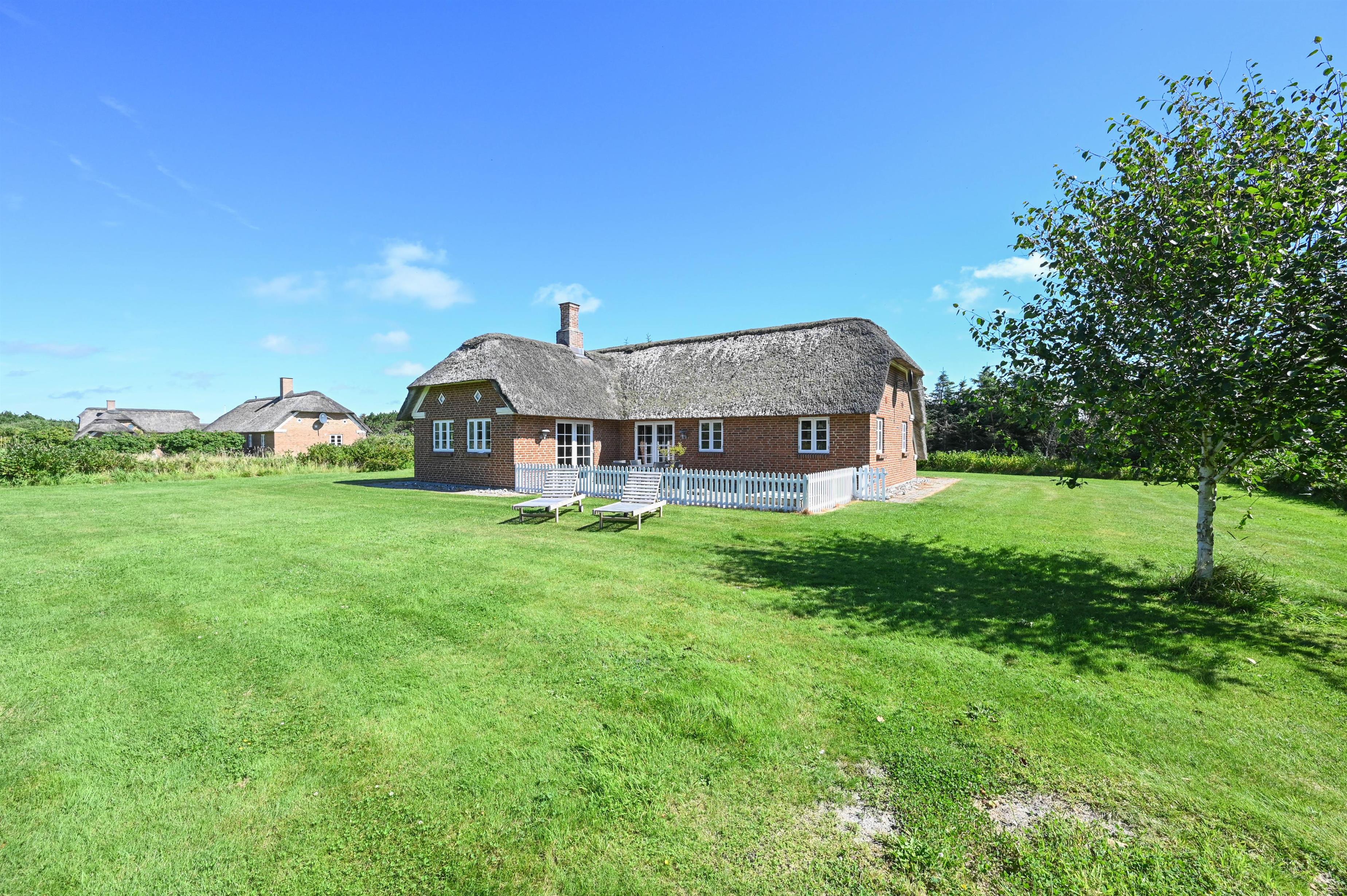 Huset ligger på en ca. 2.000 m² stor, delvist plejet naturgrund med gode læforhold og en dejlig, lukket terrasse mod syd/vest. Her kan du nyde solen dagen lang – fra morgenkaffen til aftenens stille timer, mens vinden blødt suser i klitterne omkring jer.