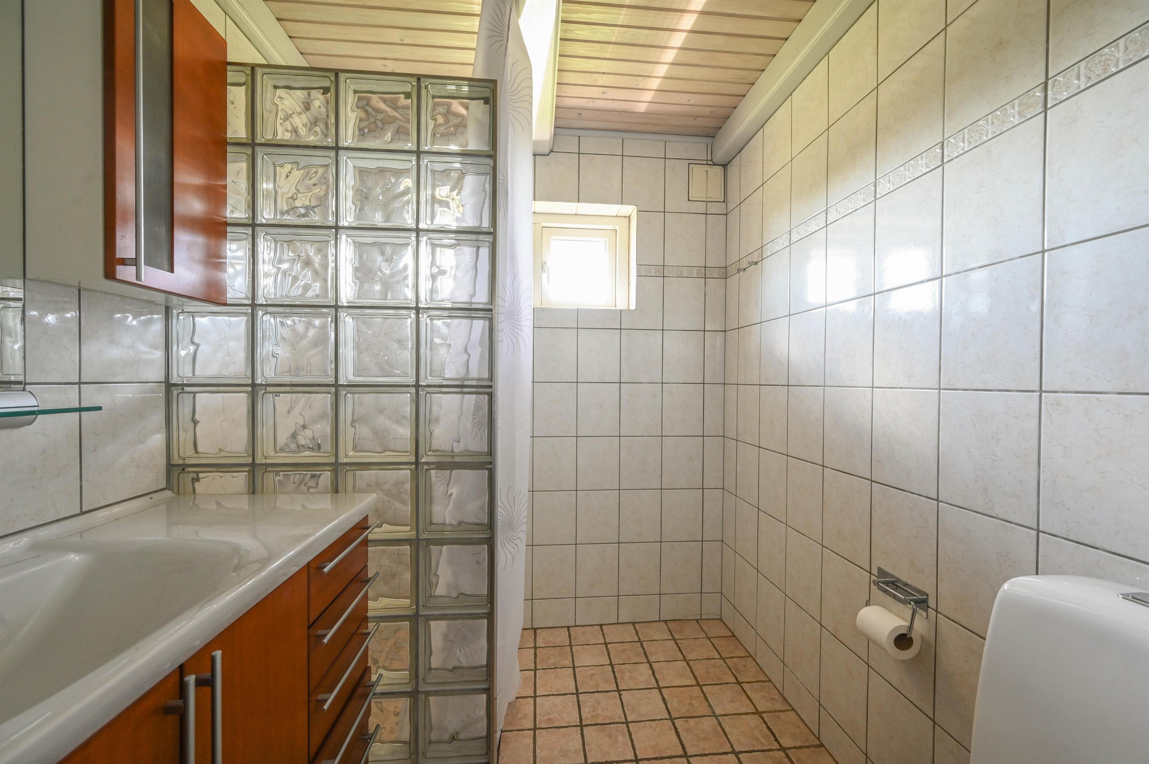 Renoveret badeværelse med bruseniche og vaskesøjle (vaskemaskine og tørretumbler)