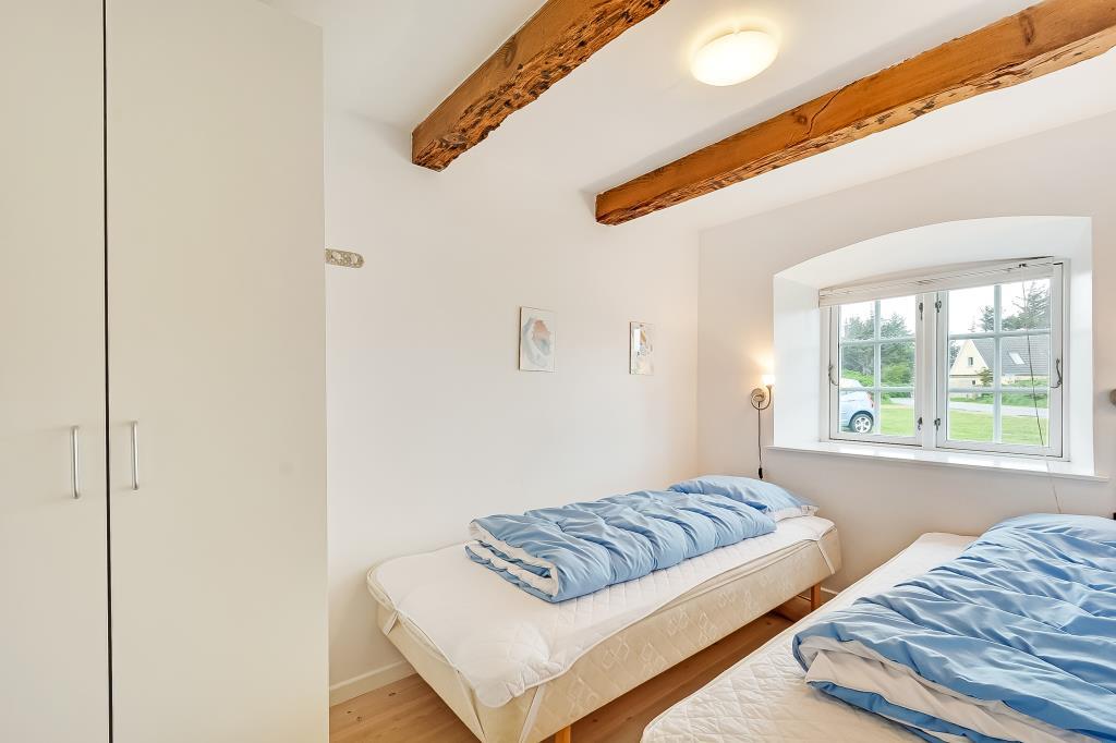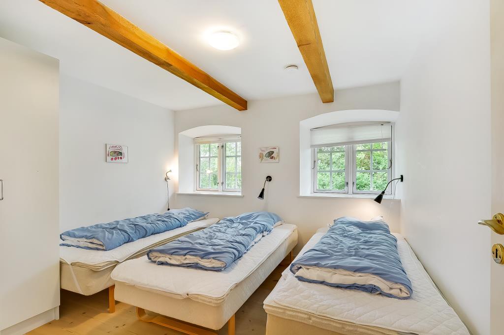 Der findes fem værelser i alt – ét med tre enkeltsenge, tre med mindre dobbeltsenge og ét med to enkeltsenge. Entré og badeværelser har klinkegulve, mens resten af huset har smukke trægulve.