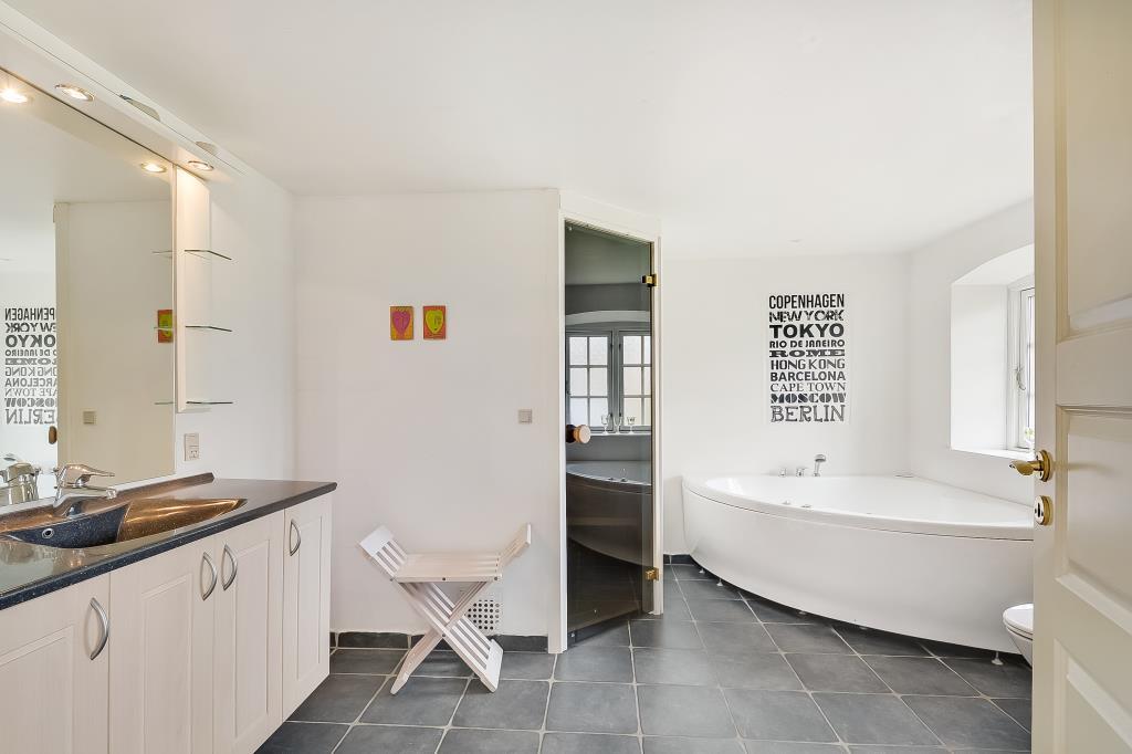 Det store badeværelse indbyder til ren forkælelse med spa, sauna og bruseniche.