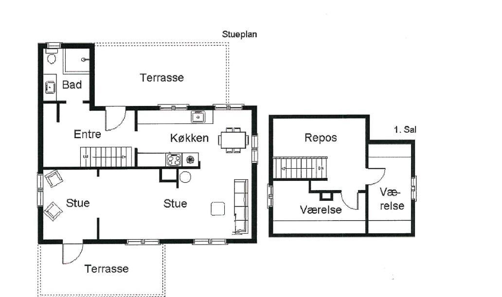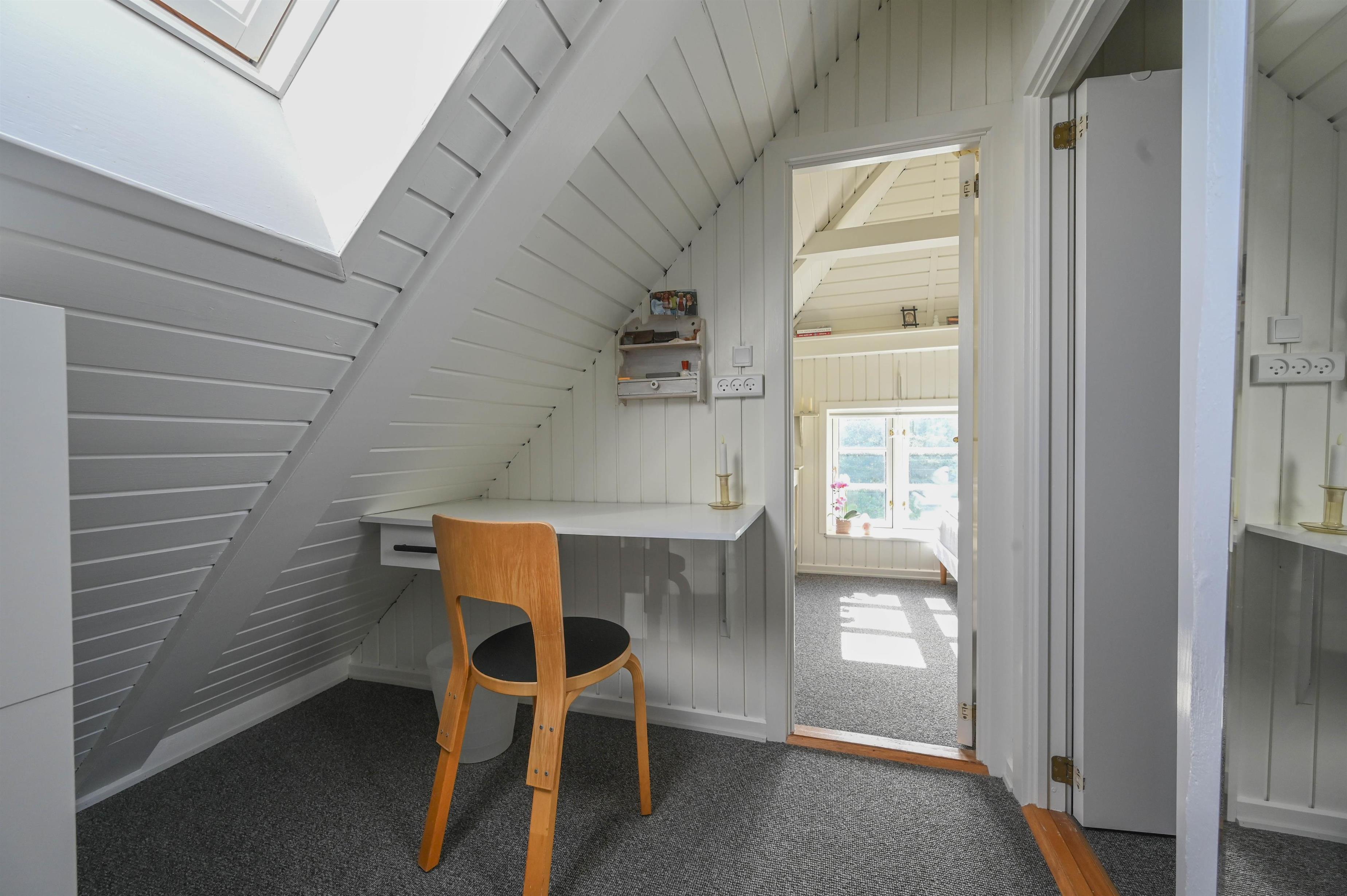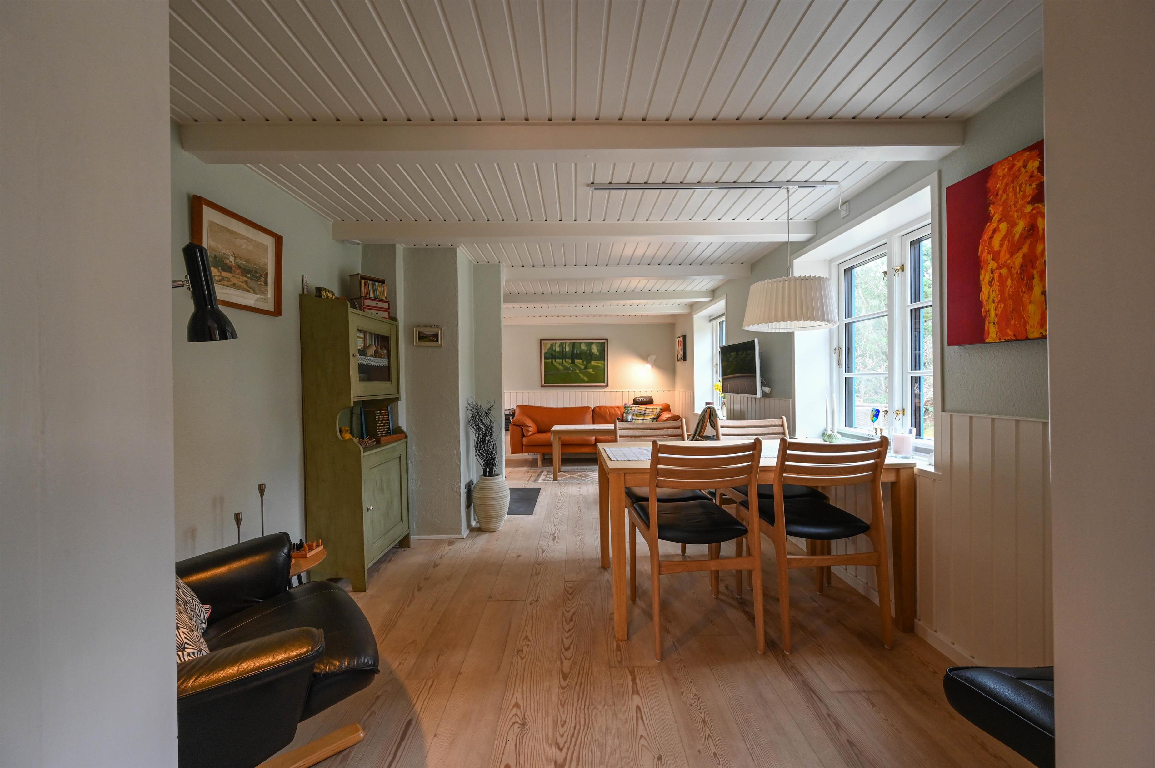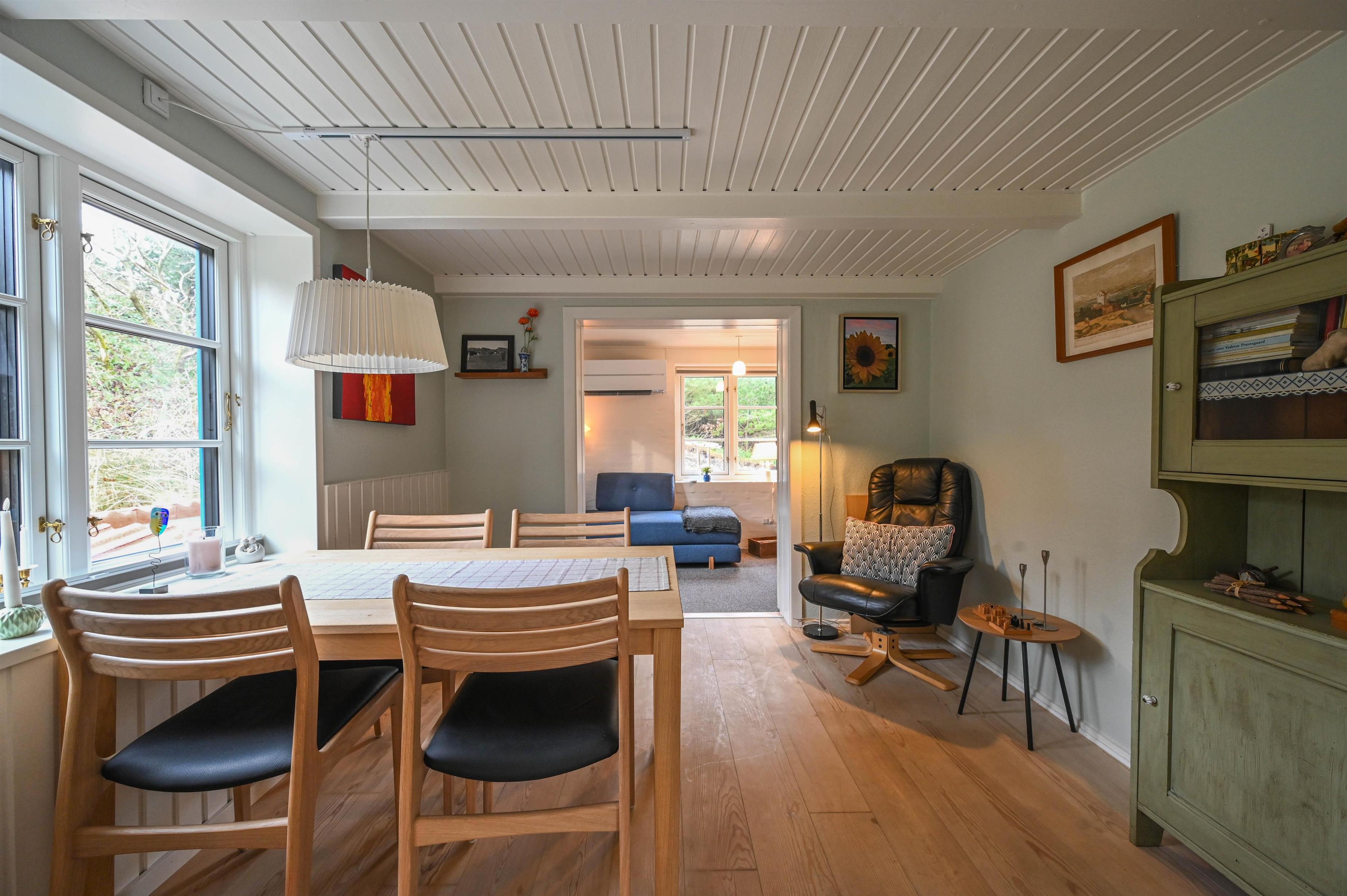 Derudover findes en separat spisestue og et lille hyggerum med læsestol – det ideelle sted til en god bog og en stille stund.