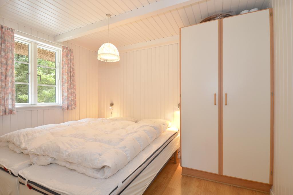 Soveværelse med dobbeltseng og skabsplads