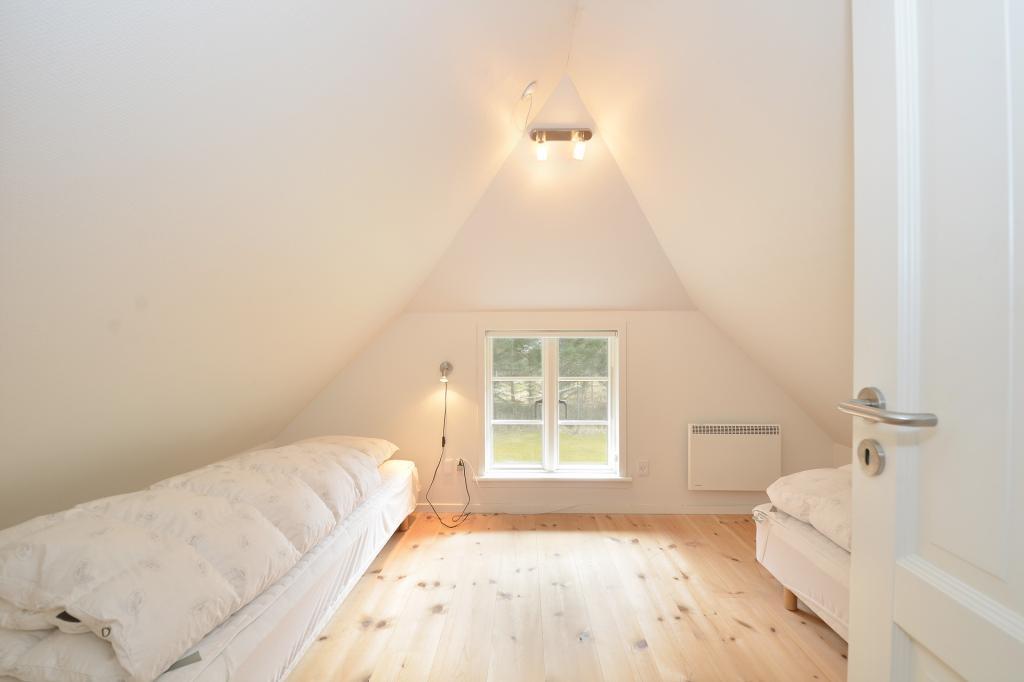 Et hyggeligt værelse mod øst med to enkeltsenge og et lille kig til klitterne