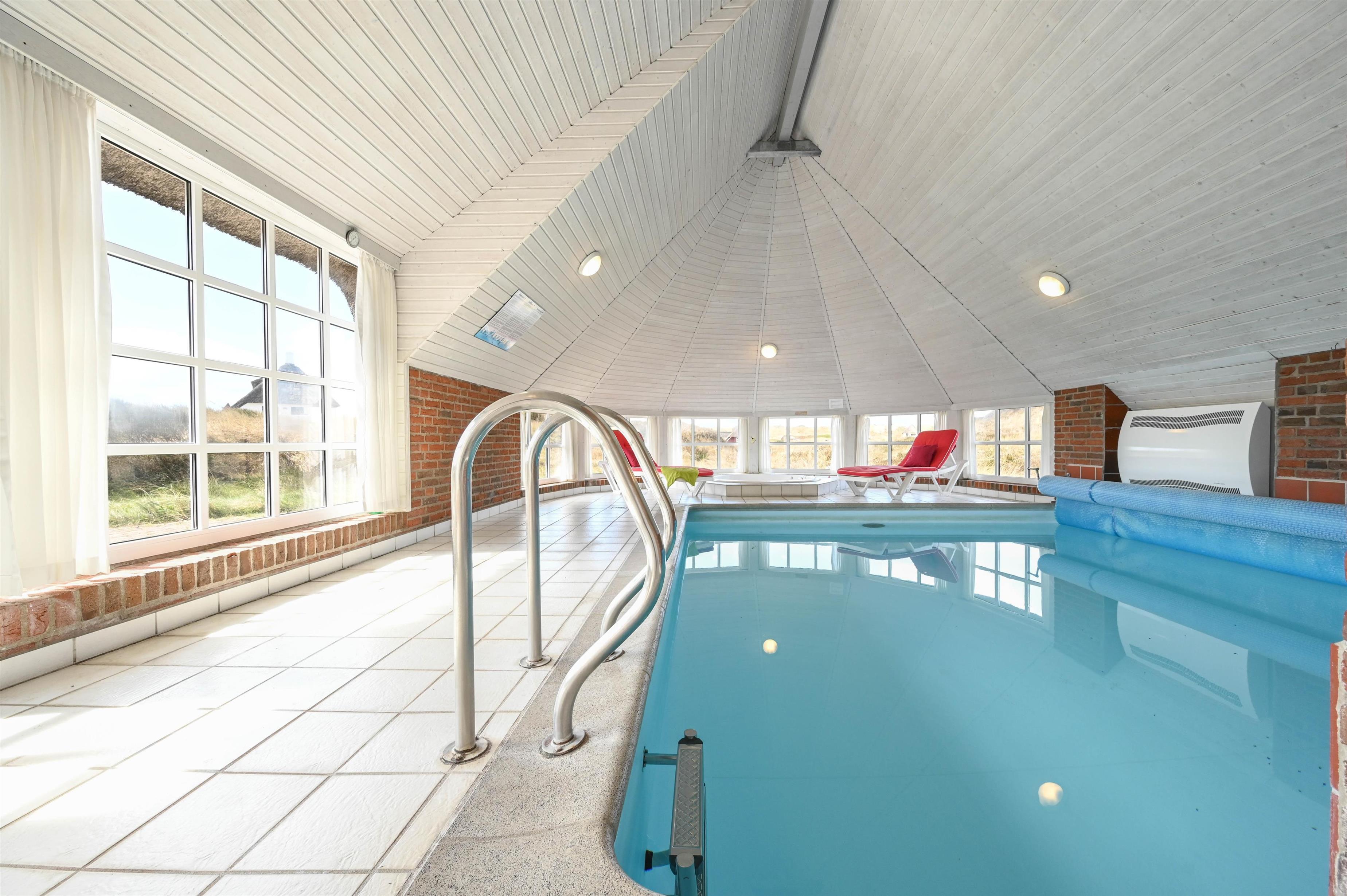 Beliggende på en flot klitgrund midt på Vedersø Klit, ligger dette feriehus med pool. Feriehusets klitgrund er på 2400 kvm.