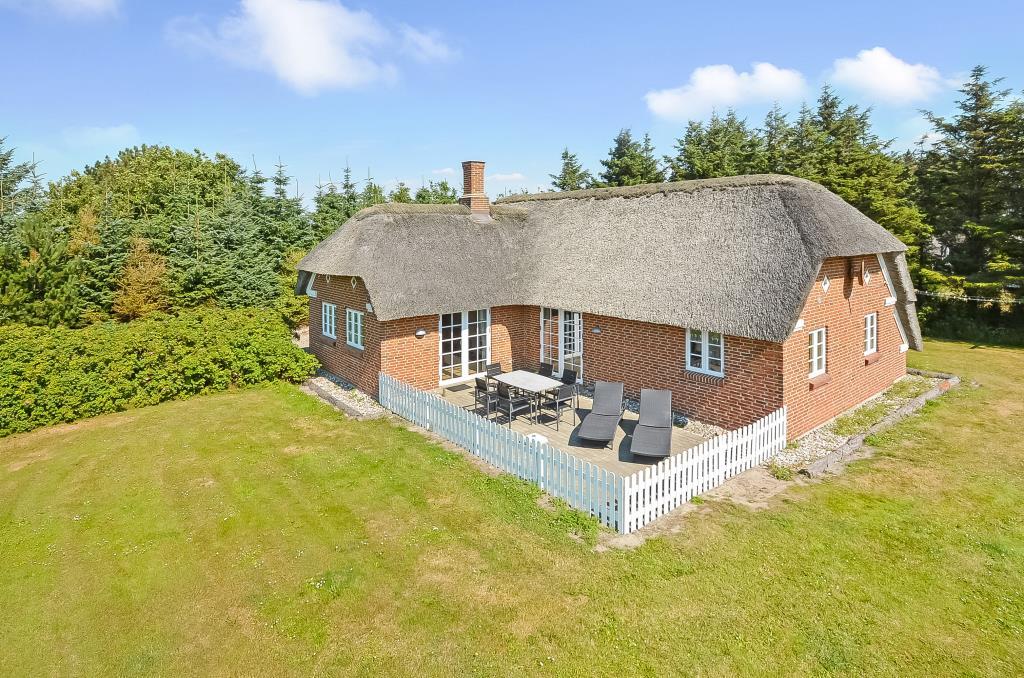 Kun få hundrede meter fra det betagende klitlandskab og sandstrand ligger dette smukke eksklusive feriehus, perfekt placeret på en rummelig og delvist plejet naturgrund på ca. 2000 m² med gode læforhold. Her finder I ro og afslapning i naturskønne omgivelser, der skaber den perfekte baggrund for en mindeværdig ferie.