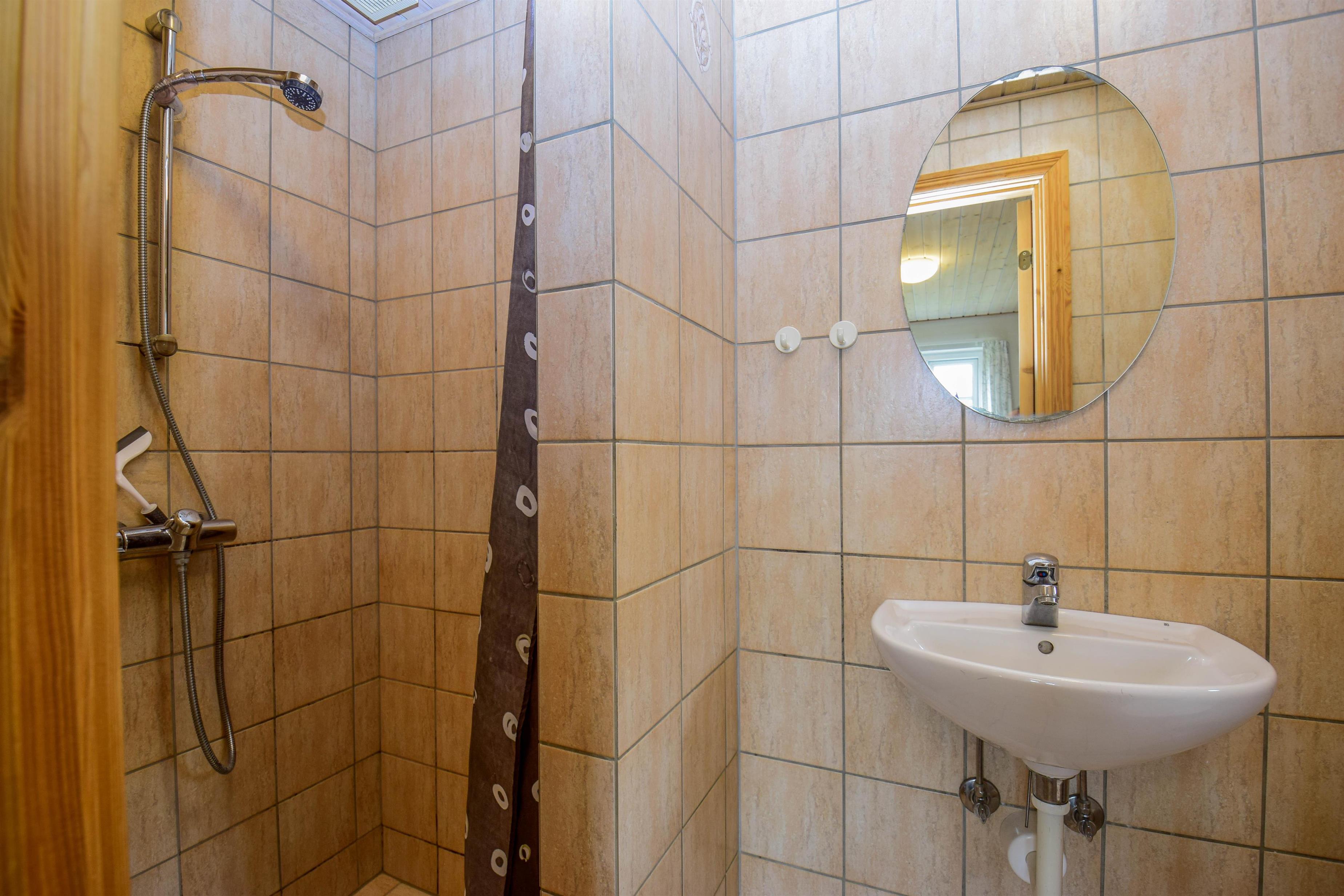 - Et stort, veludstyret badeværelse med bruser, spabad og sauna – oplagt til afslapning og velvære efter en dag i naturen.