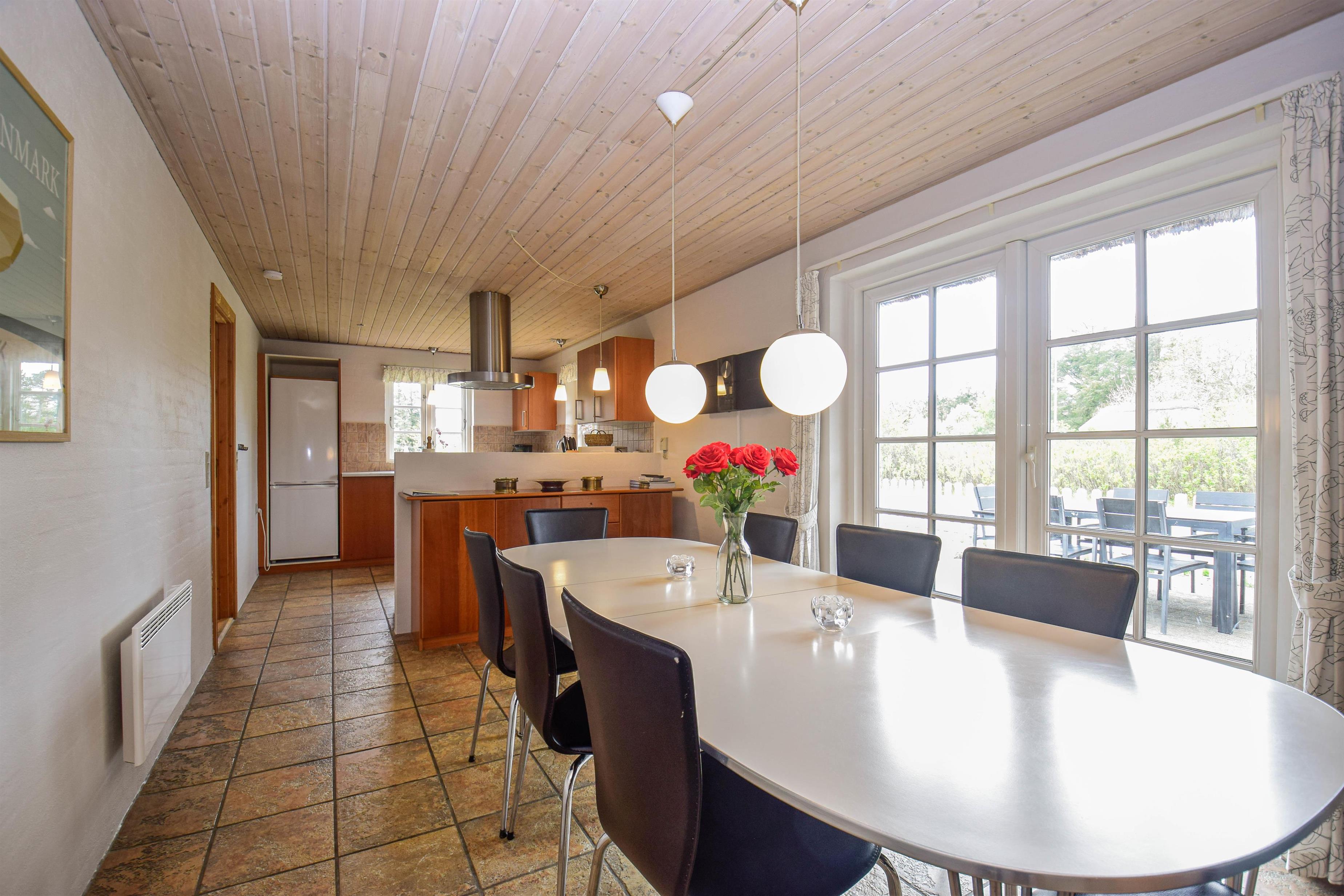 Fra det store åbne og moderne køkken-alrum er der direkte adgang til en stor sydvestvendt terrasse, hvor I kan nyde solen det meste af dagen og afslutte med en smuk solnedgang. Terrassen er det perfekte sted til hyggelige grillmiddage eller stille stunder med en god bog.