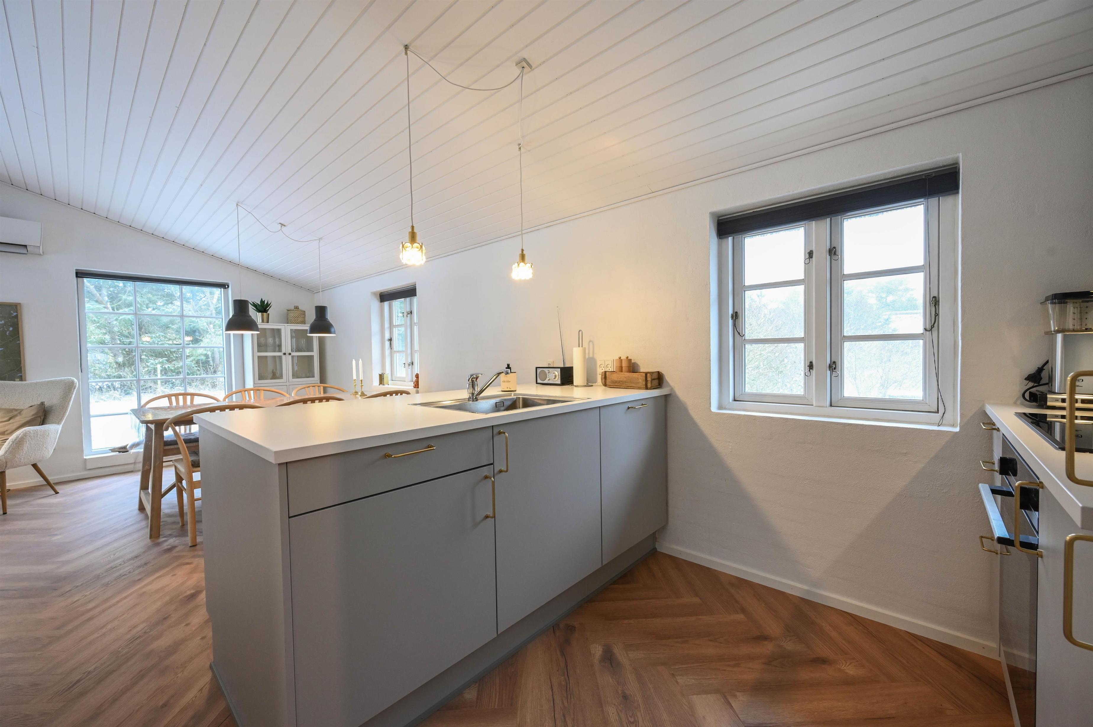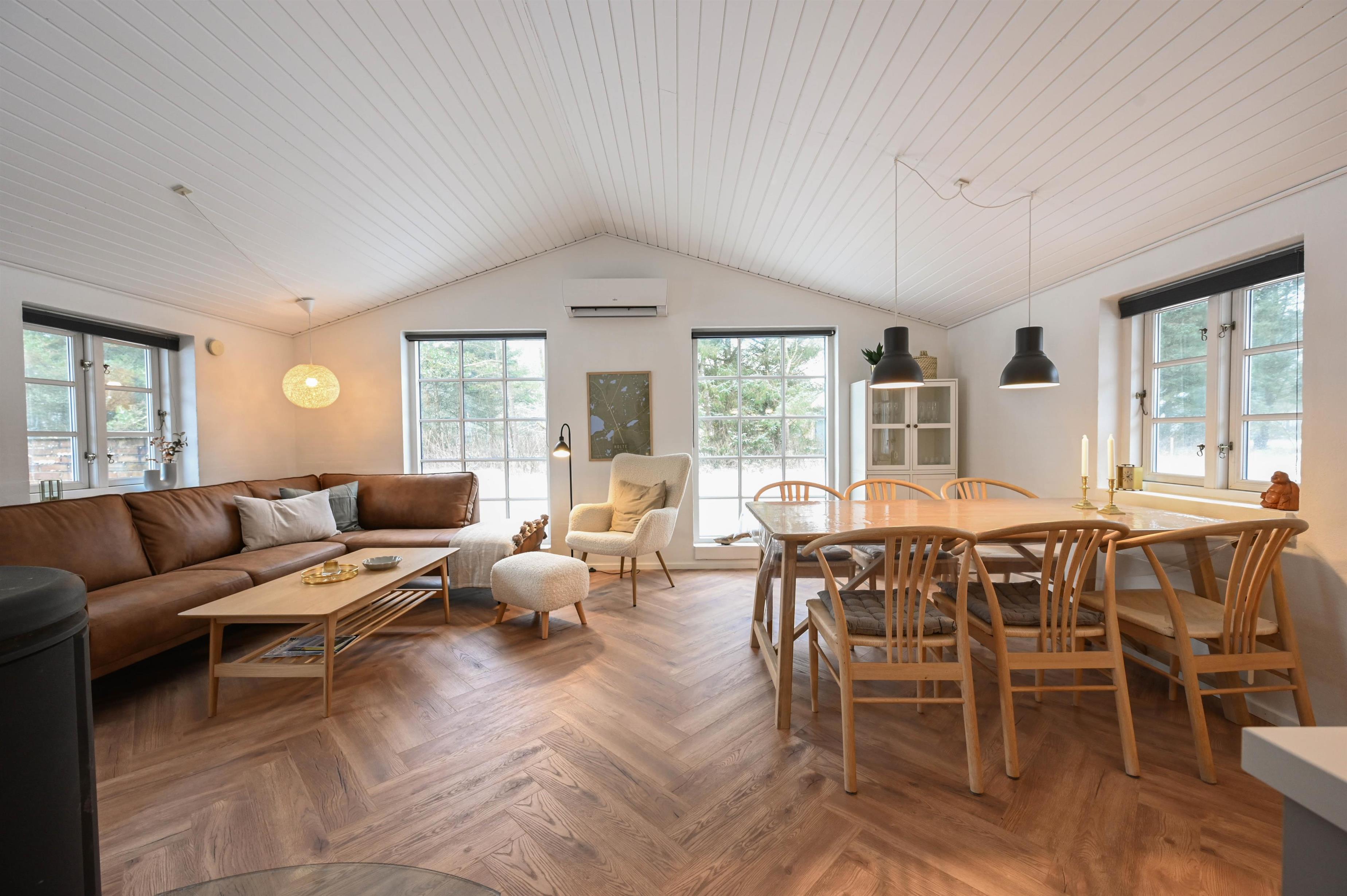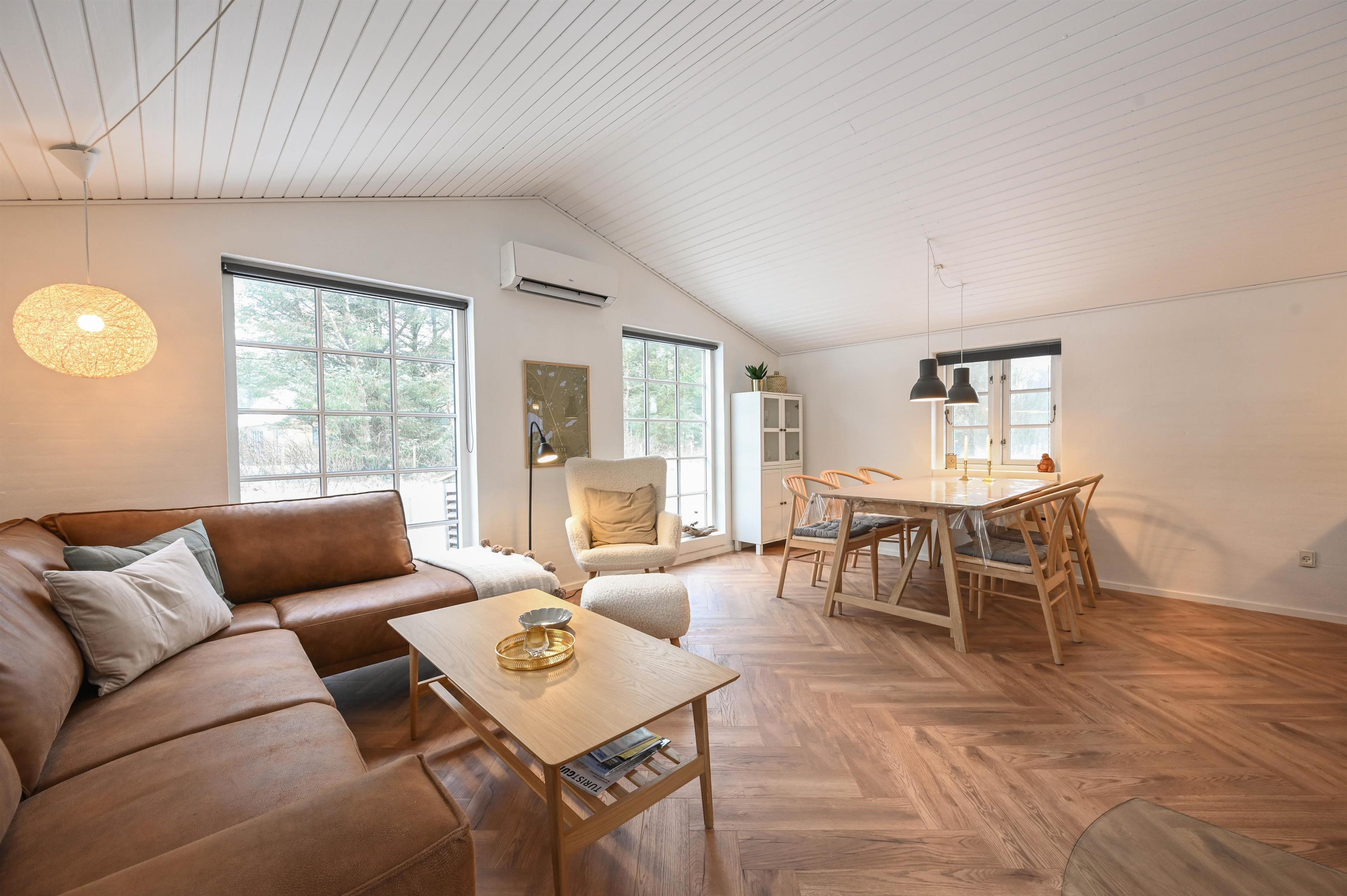 Fritidshuset på Lars Murersvej 5 er flot moderniseret i 2024, og fremstår overalt lyst og venligt.