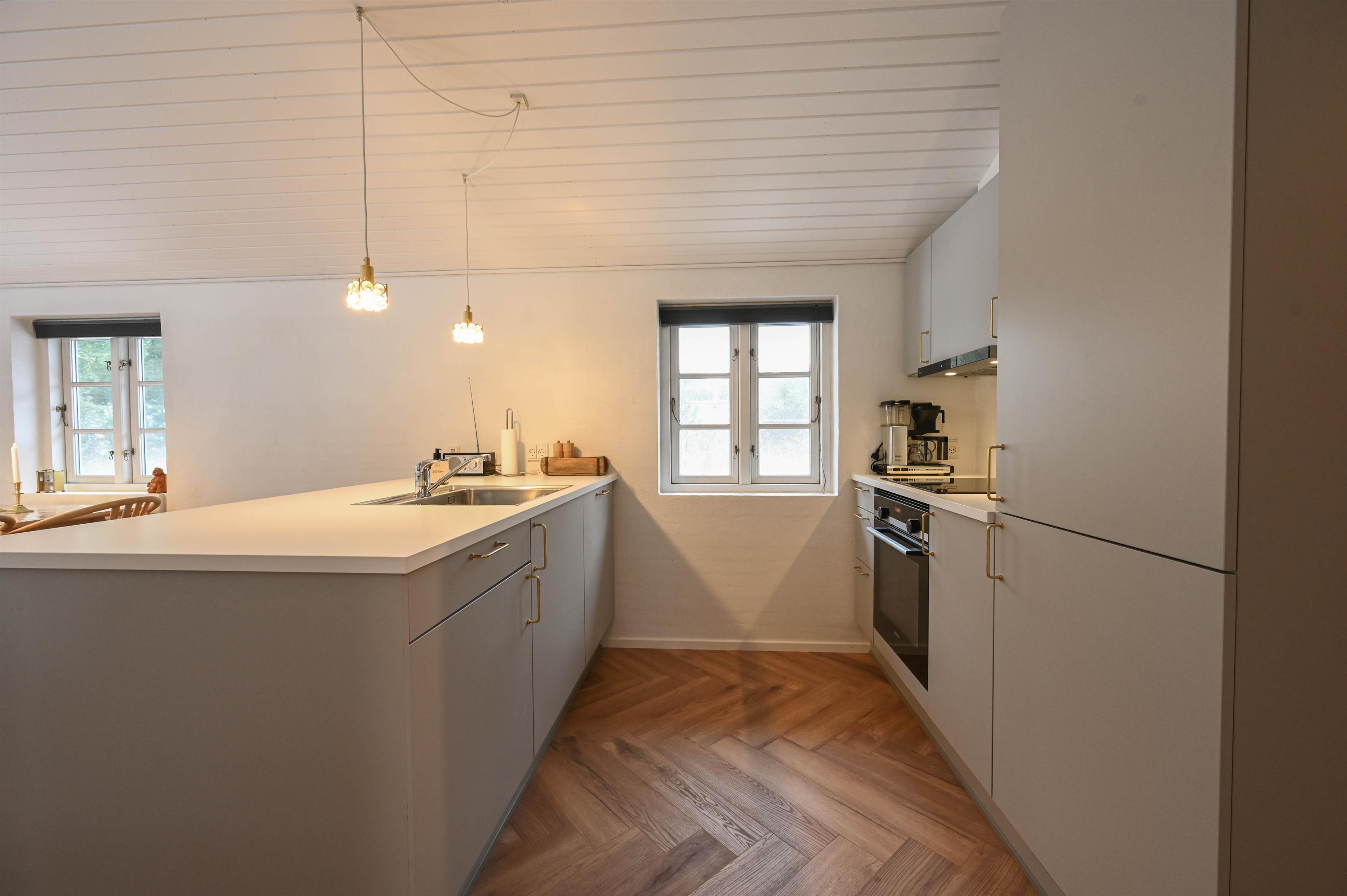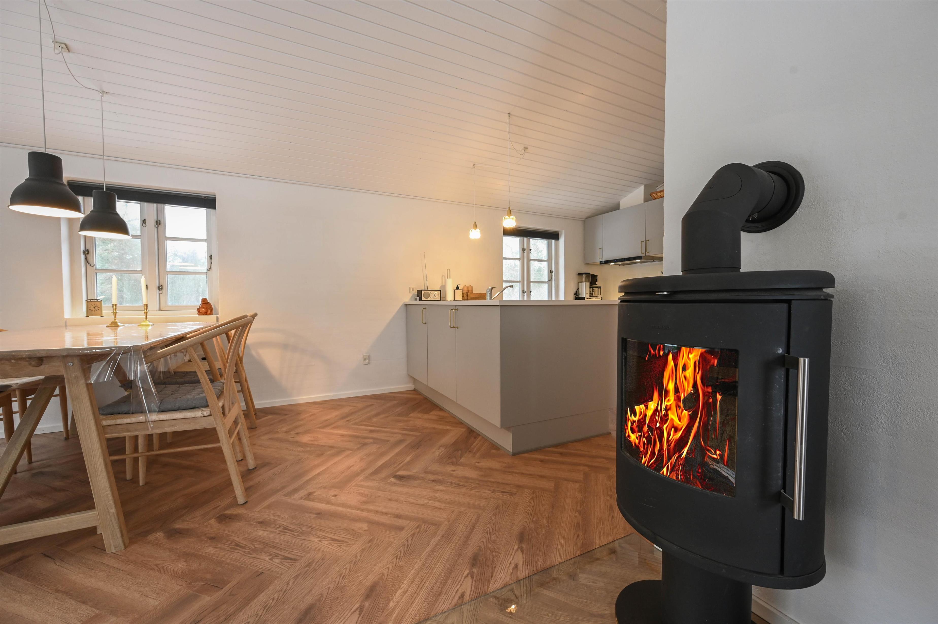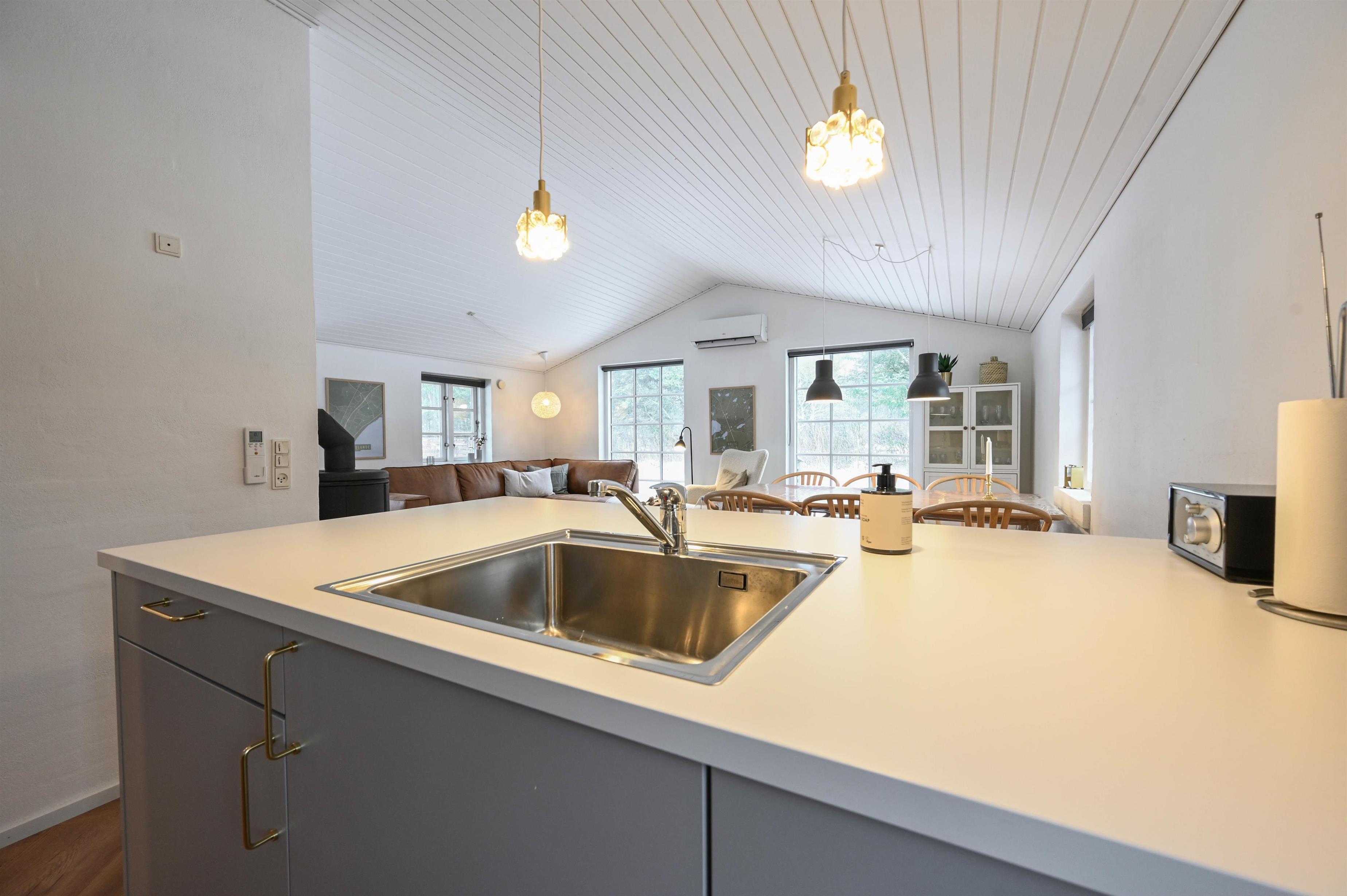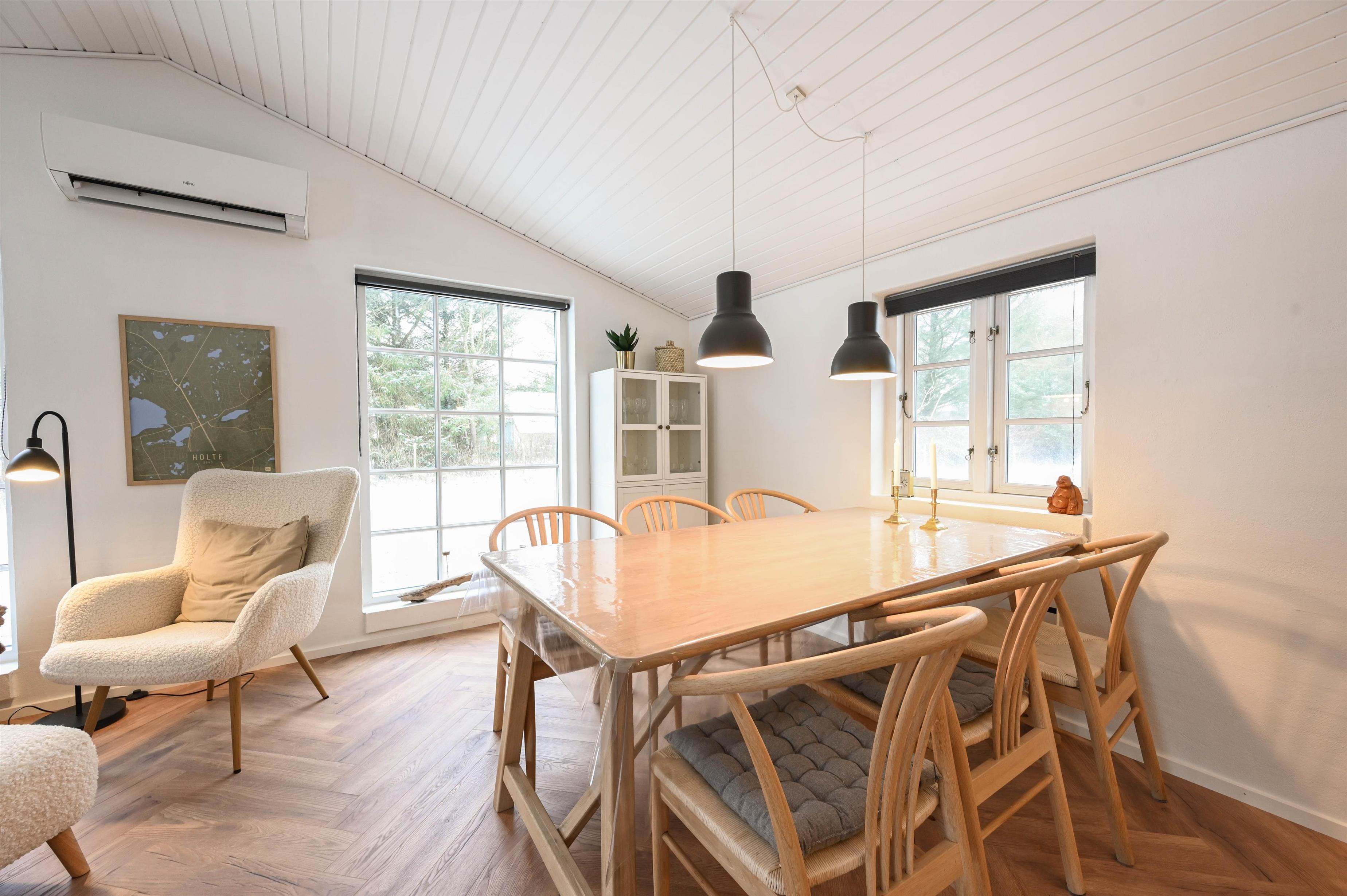 Fritidshuset på Lars Murersvej 5 er flot moderniseret i 2024, og fremstår overalt lyst og venligt.