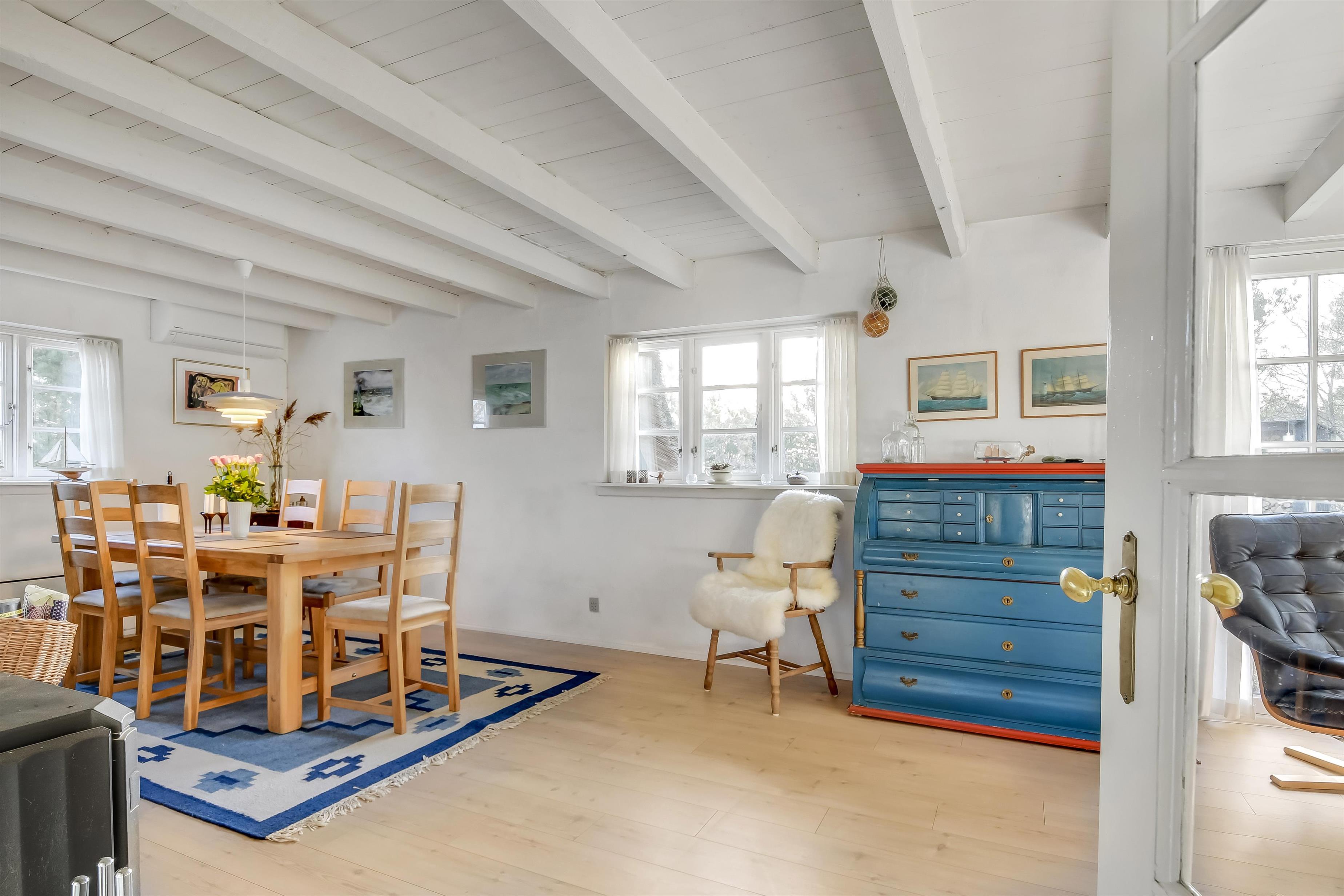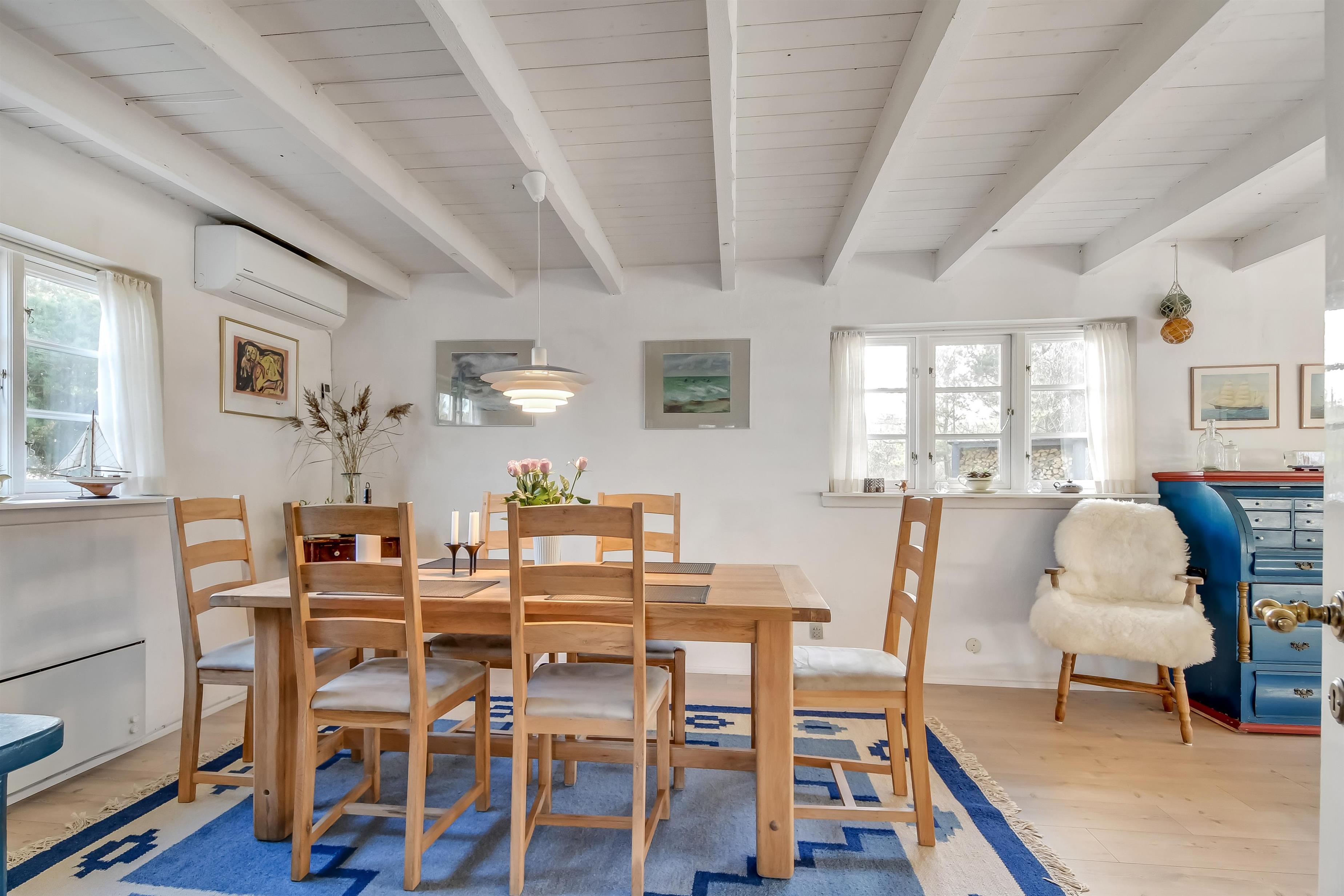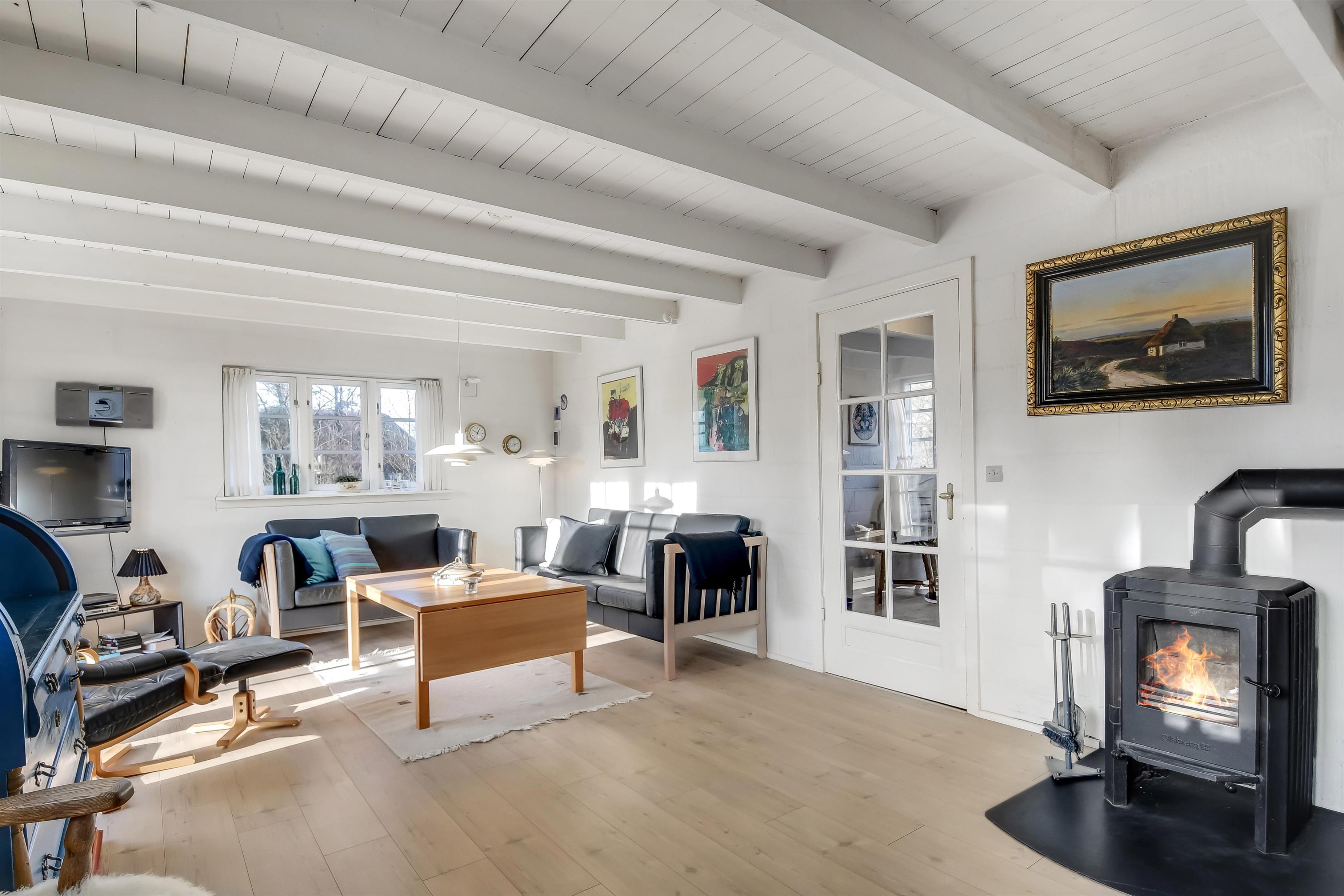 Med klitterne som nærmeste nabo og Vesterhavets brusen i baggrunden ligger dette dejlige feriehus på 114 m² – et sted, hvor ro, natur og hygge går hånd i hånd.