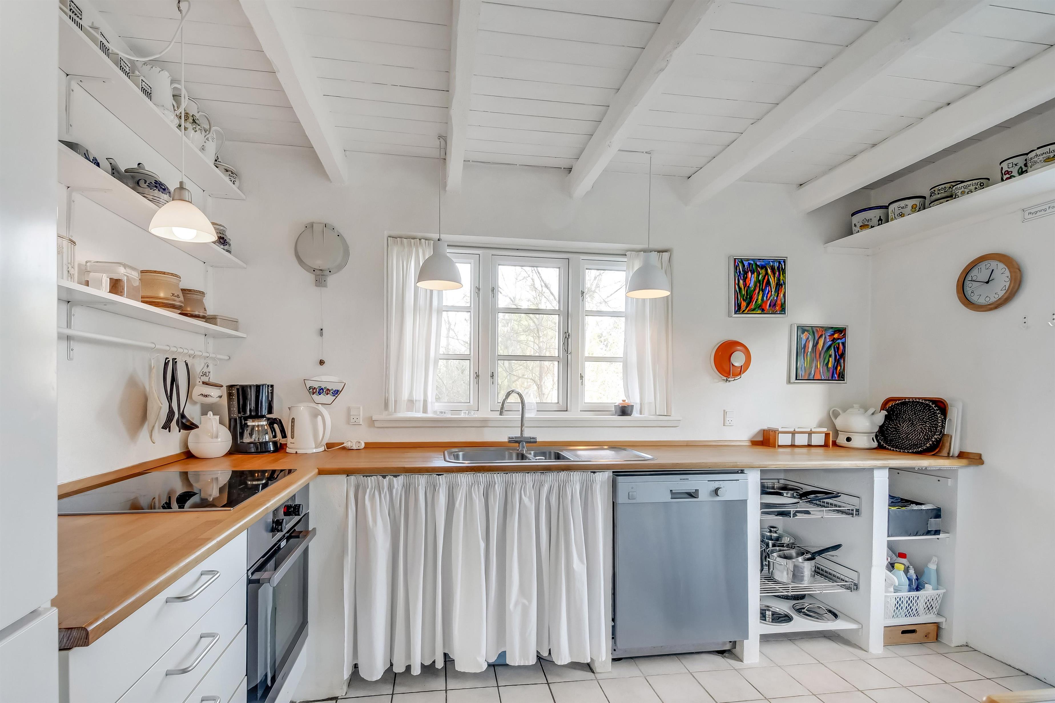 Det charmerende landkøkken byder på alt, hvad du behøver til feriens måltider, og har masser af plads til madlavning og samvær.
