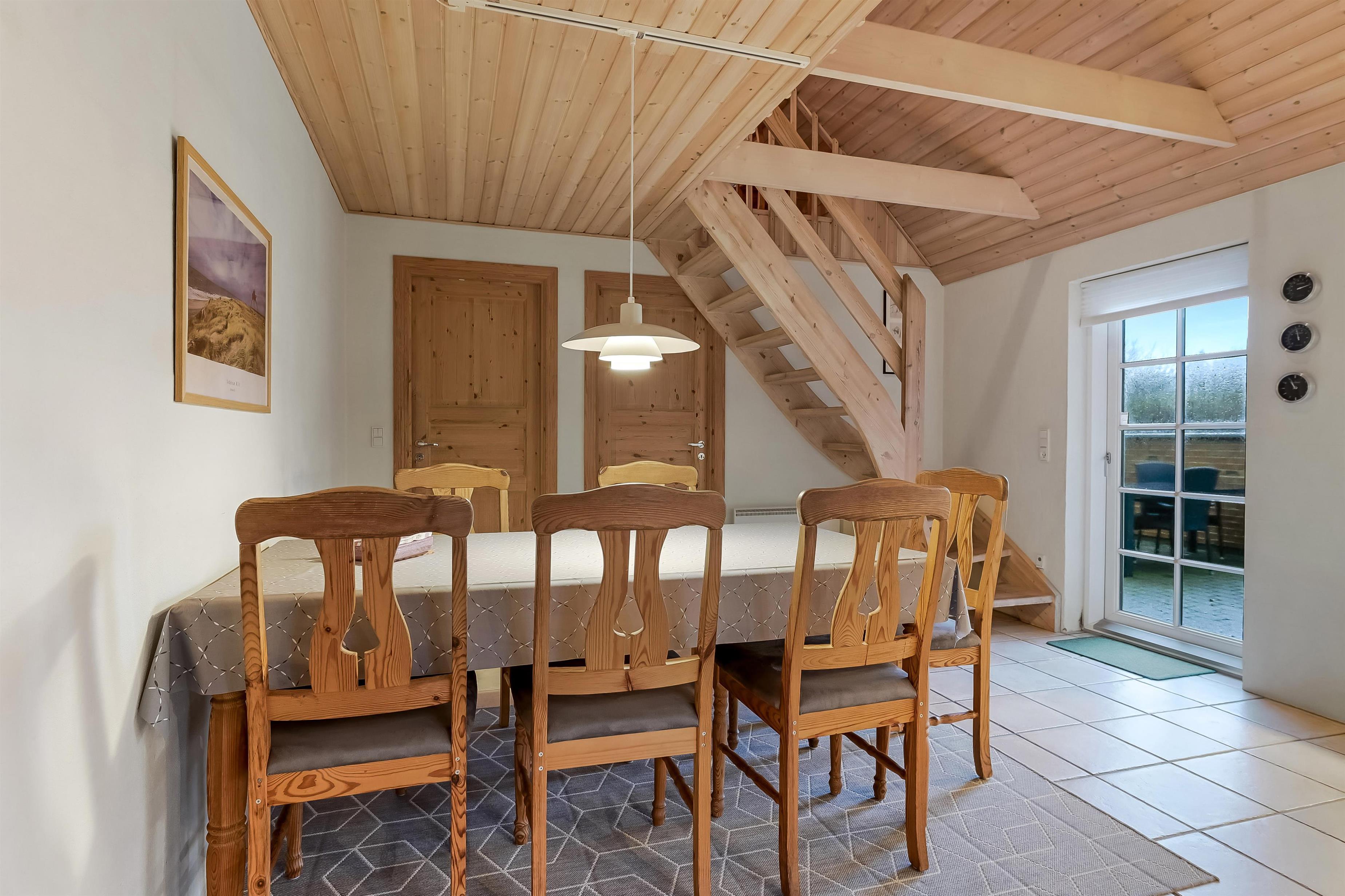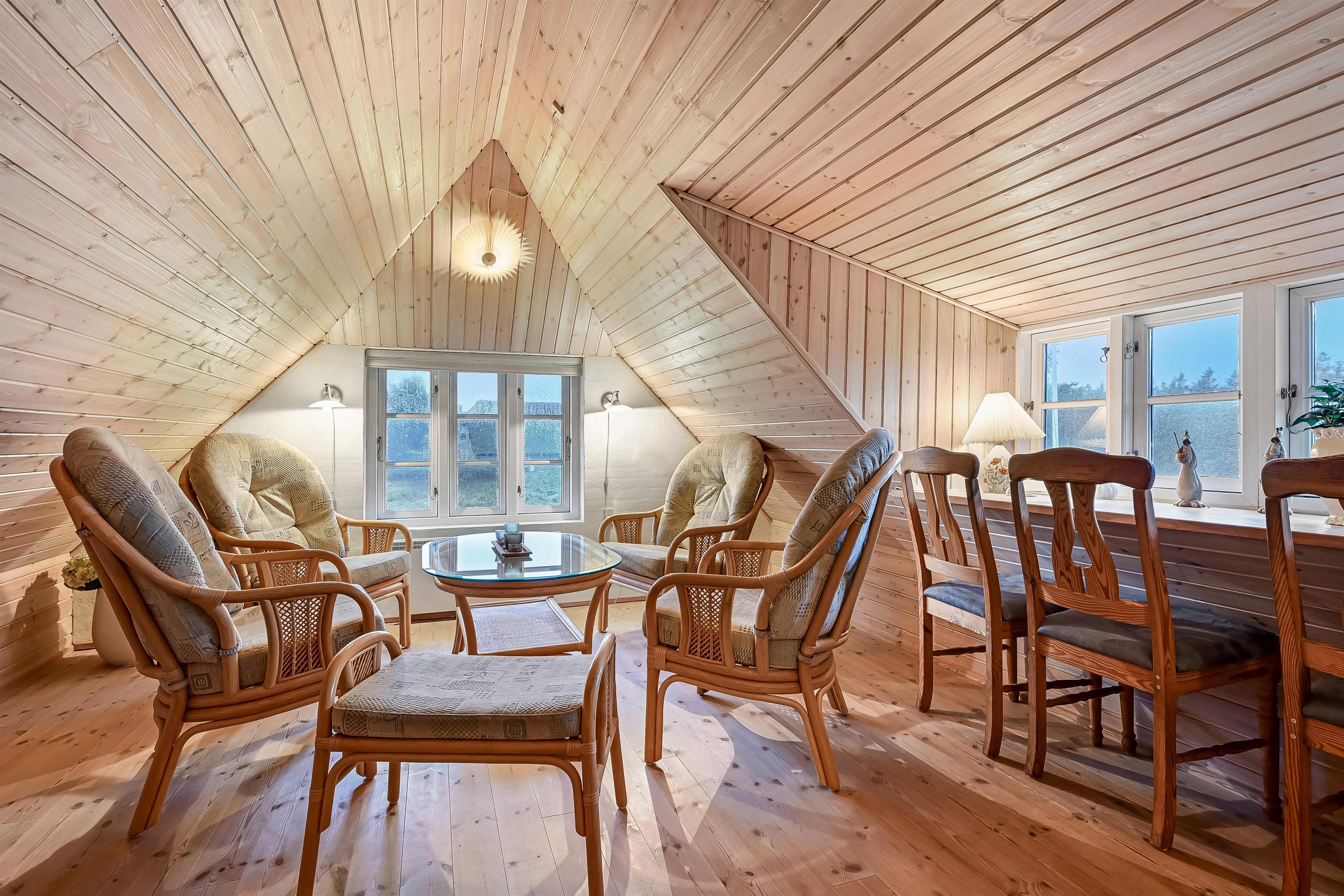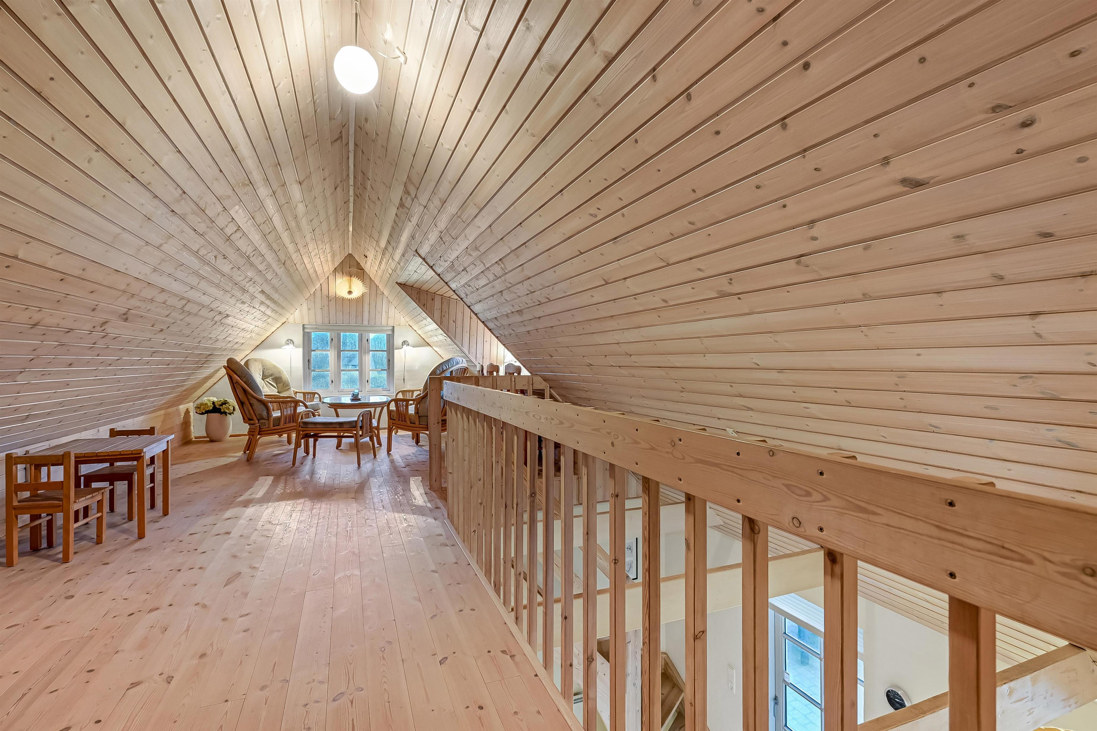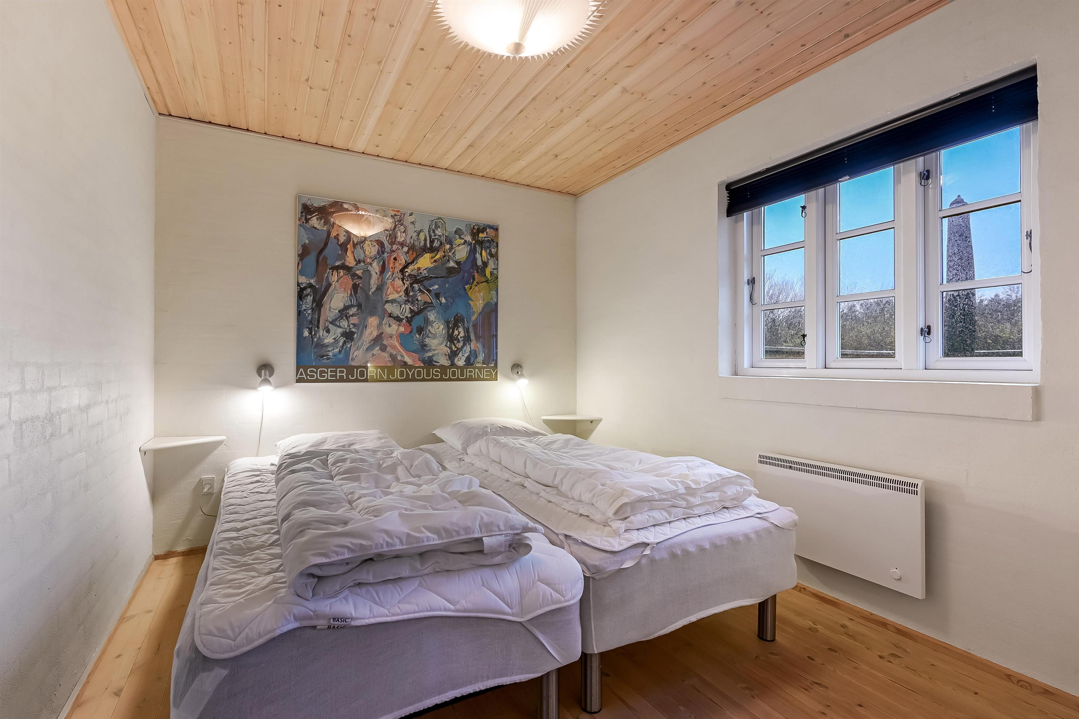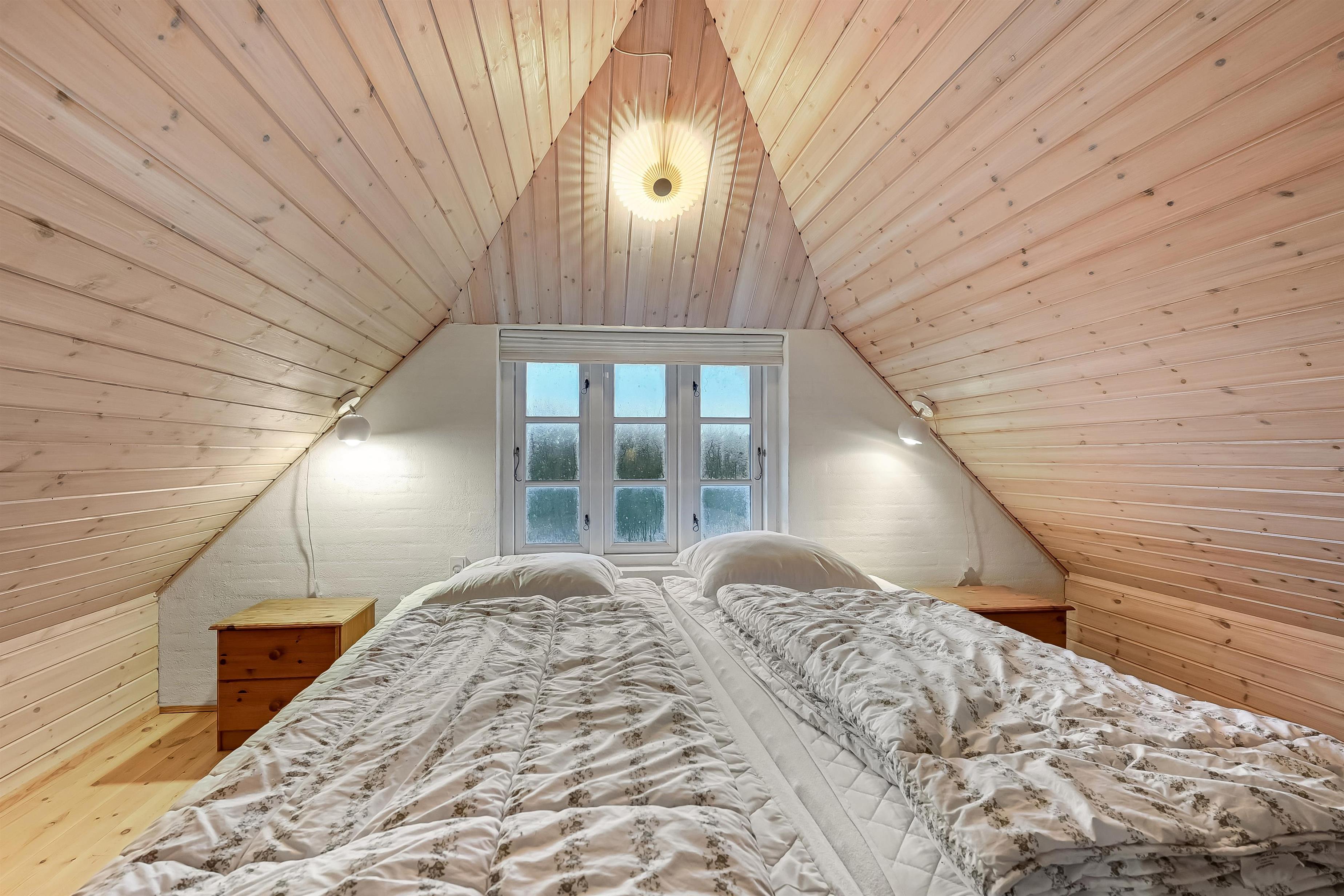 Der er tre soveværelser: to med dobbeltsenge og ét med to enkeltsenge. Ét af soveværelserne ligger på 1. sal, hvor der også er et flot opholdsrum – perfekt som legerum for børnene eller et stille hjørne med en god bog.