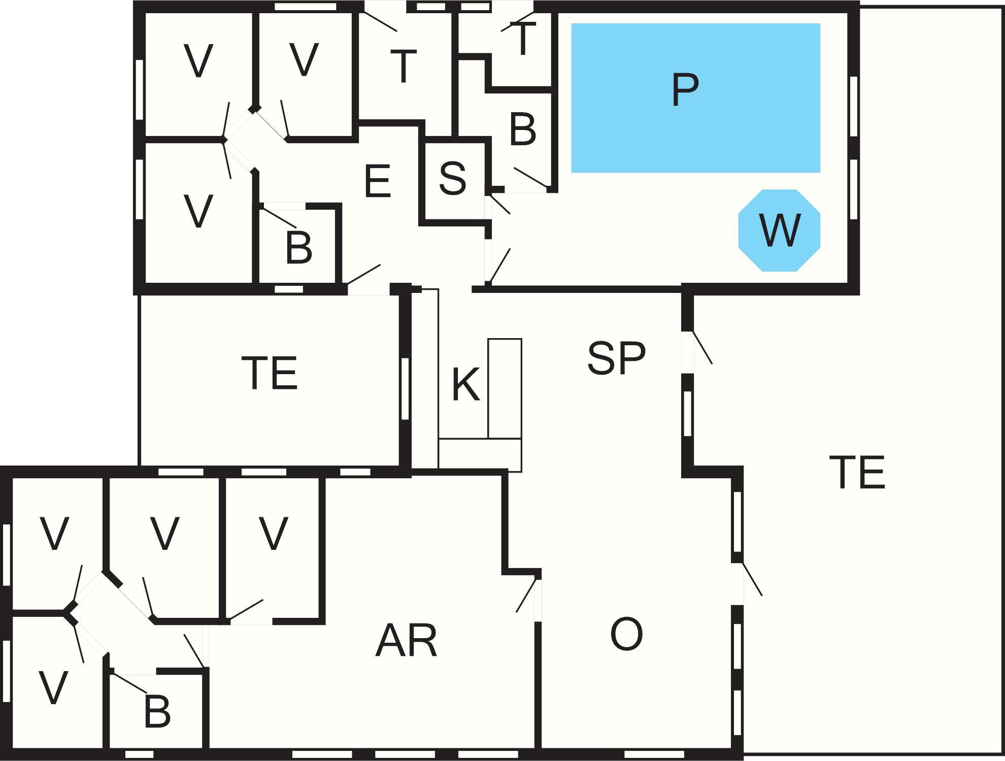 Sommerhuset rummer ganske enkelt alt hvad hjertet kan begære af aktivitets- og udfoldelsesmuligheder. Huset er yderst rummeligt og veldimensioneret og bygget op omkring to separate soveafdelinger. Hver afdeling har et badeværelse og ekstra badeværelse i forbindelse med poolafdelingen. I alt tre badeværelser, der selvfølgelig alle har gulvvarme. Huset har 7 soveværelser.