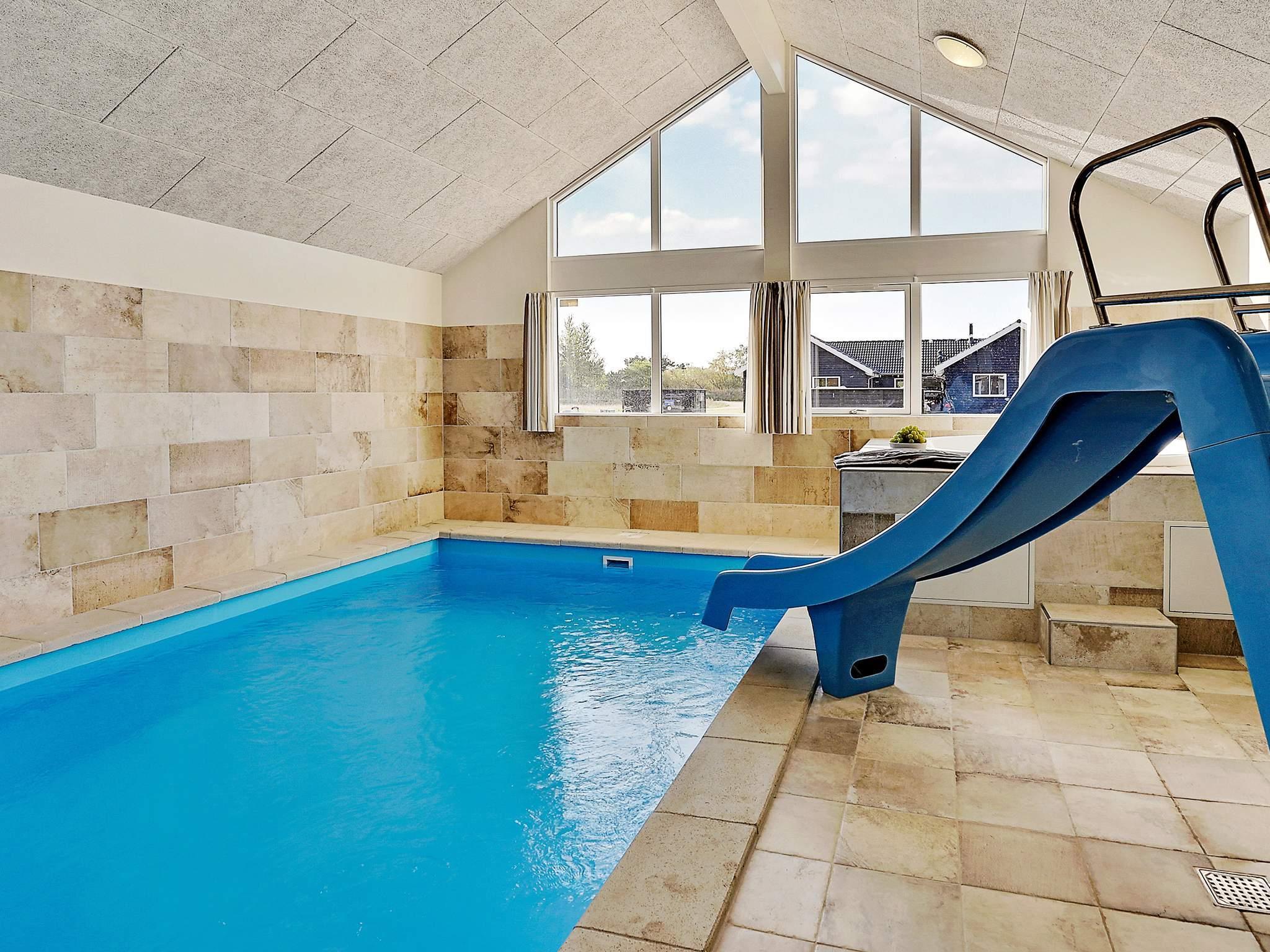 Sommerhus i Vejby med poolafdeling som indeholder både stor 18 m² swimmingpool, vandrutschebane, svømmetræner, stort indbygget spabad og sauna med plads til 4-6 personer. I aktivitetsrummet kan der spilles billard, dart og bordtennis. Der er flere tv i forskellige afdelinger samt PlayStation4 og Nintendo Wii.