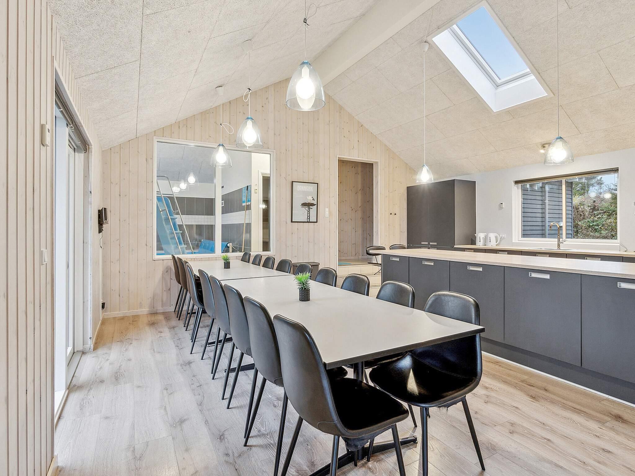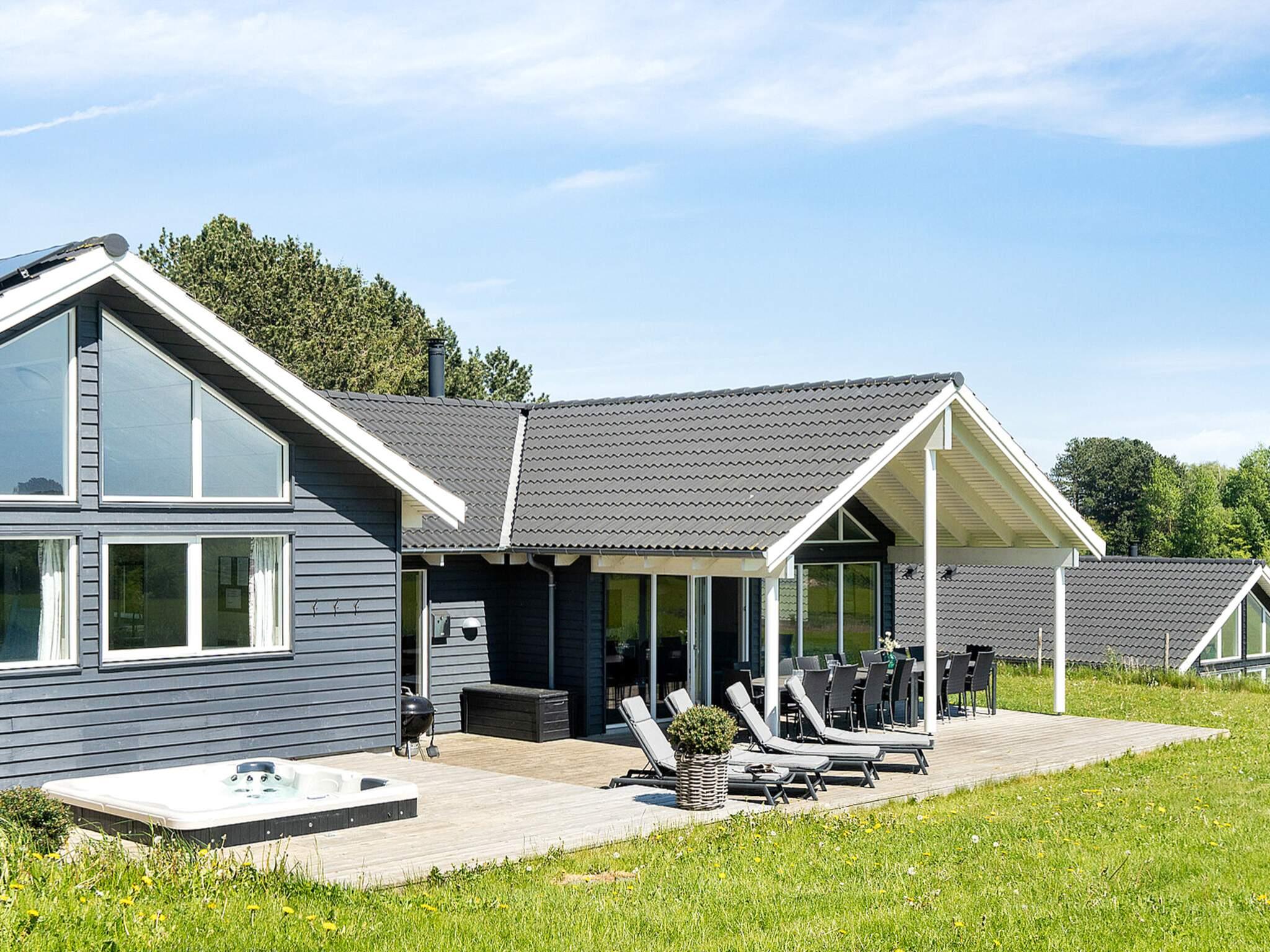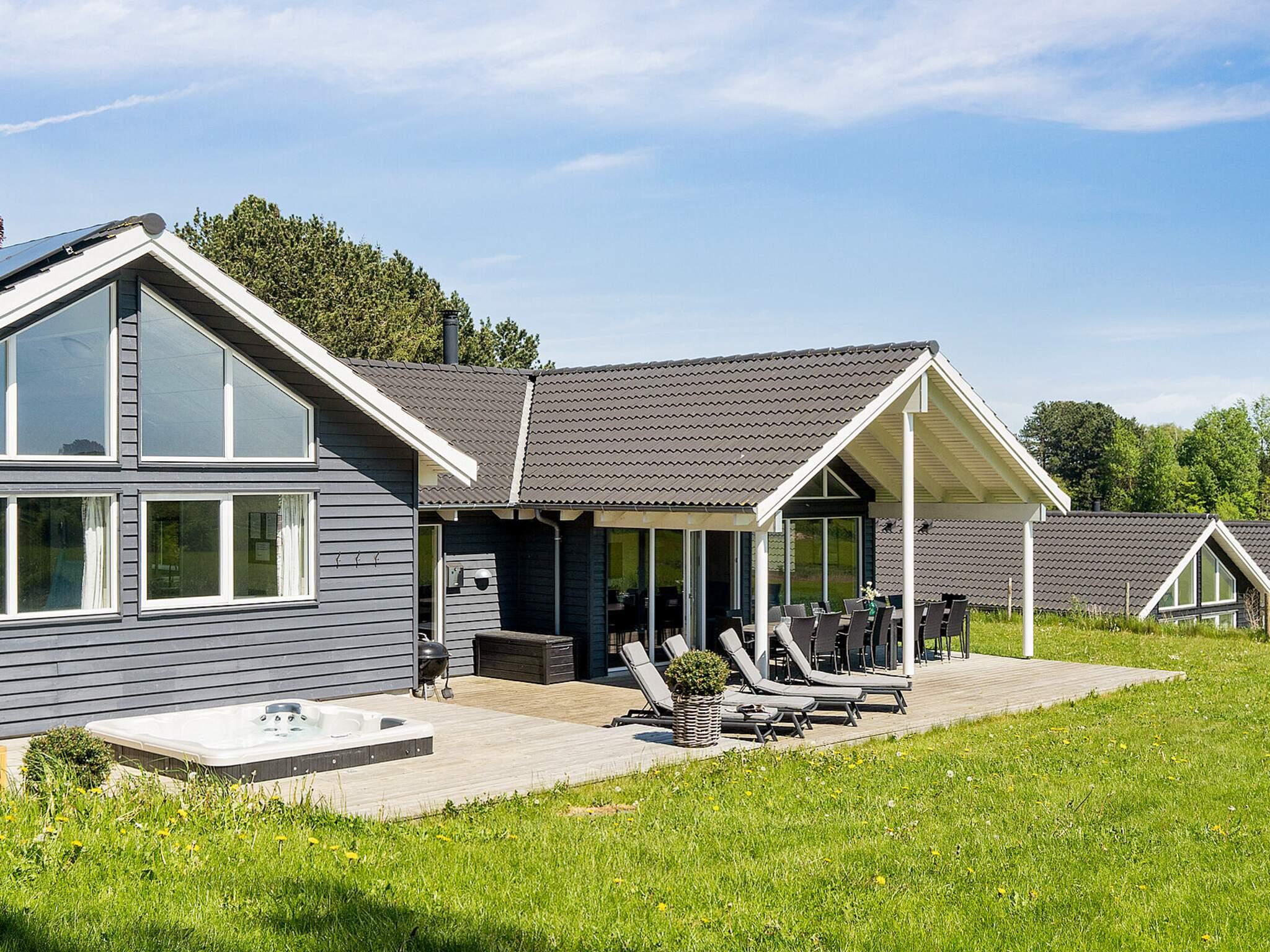 På den anden side af det centralt placerede spise/opholdsrum kommer I ind i det store aktivitetsrum, hvor I kan mikse en drink eller tage et spil dart eller pool ved det flotte poolbord eller blot slappe af i sofaen foran fladskærmen. Der er en stor terrasse (delvist overdækket), hvor den danske sommer kan nydes i gode havemøbler.