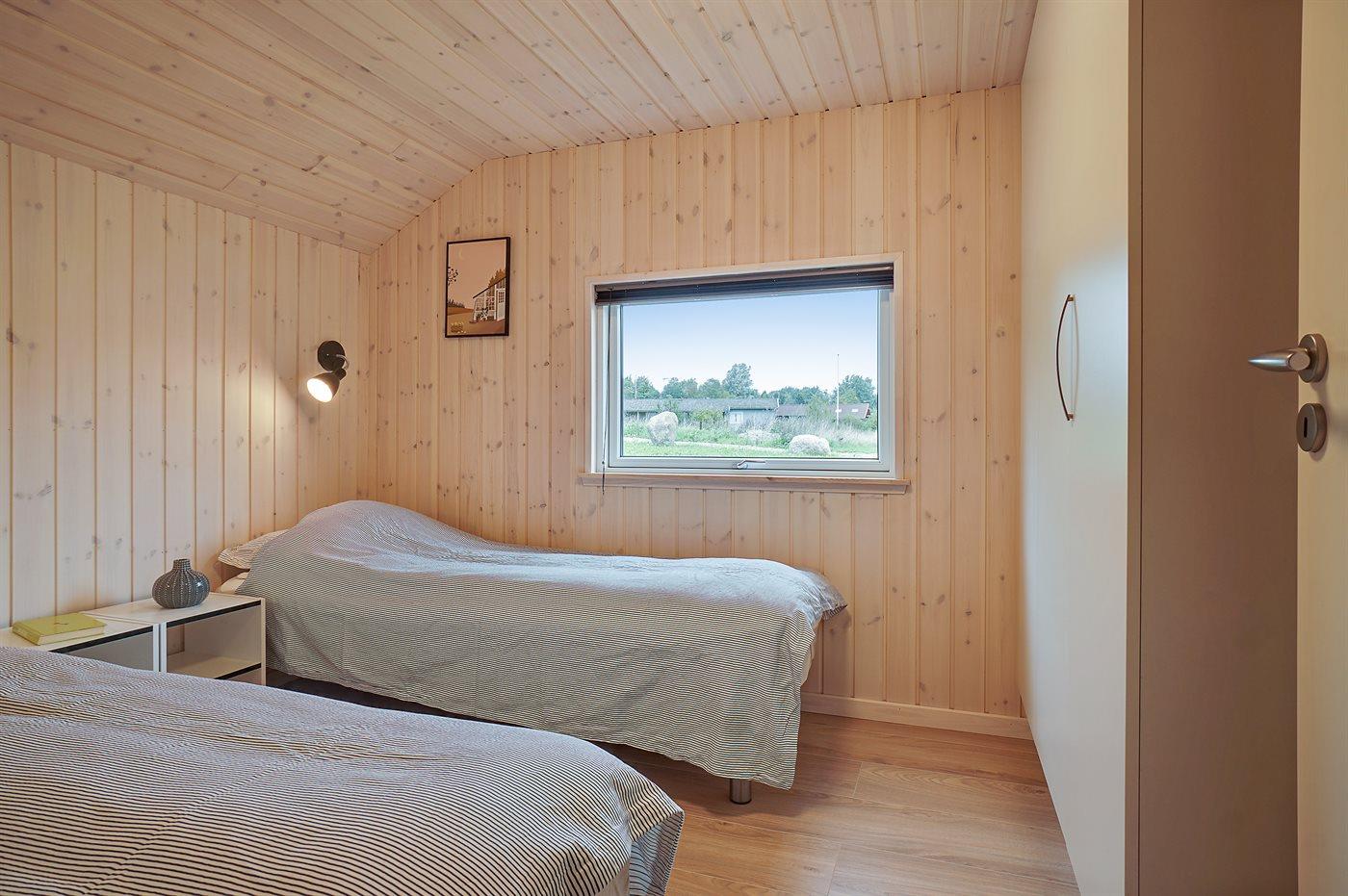 Der er i alt 5 soveværelser. Sovepladserne fordeler sig på: 4 sovepladser i dobbeltsenge. 6 sovepladser i enkeltsenge. 4 sovepladser på madrasser. 2 af disse sovepladser befinder sig på husets hems. Derudover er der 1 stk. barneseng.