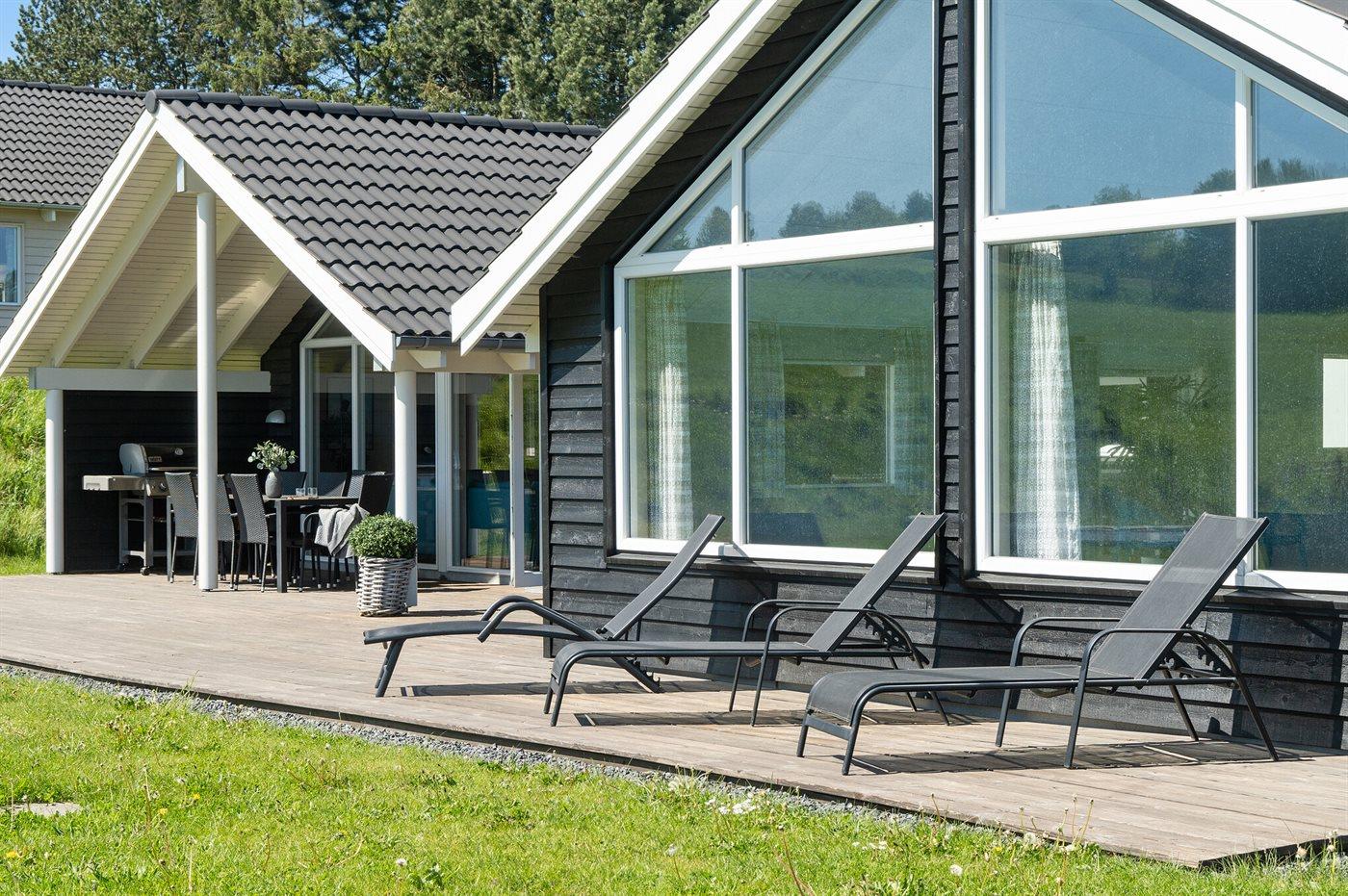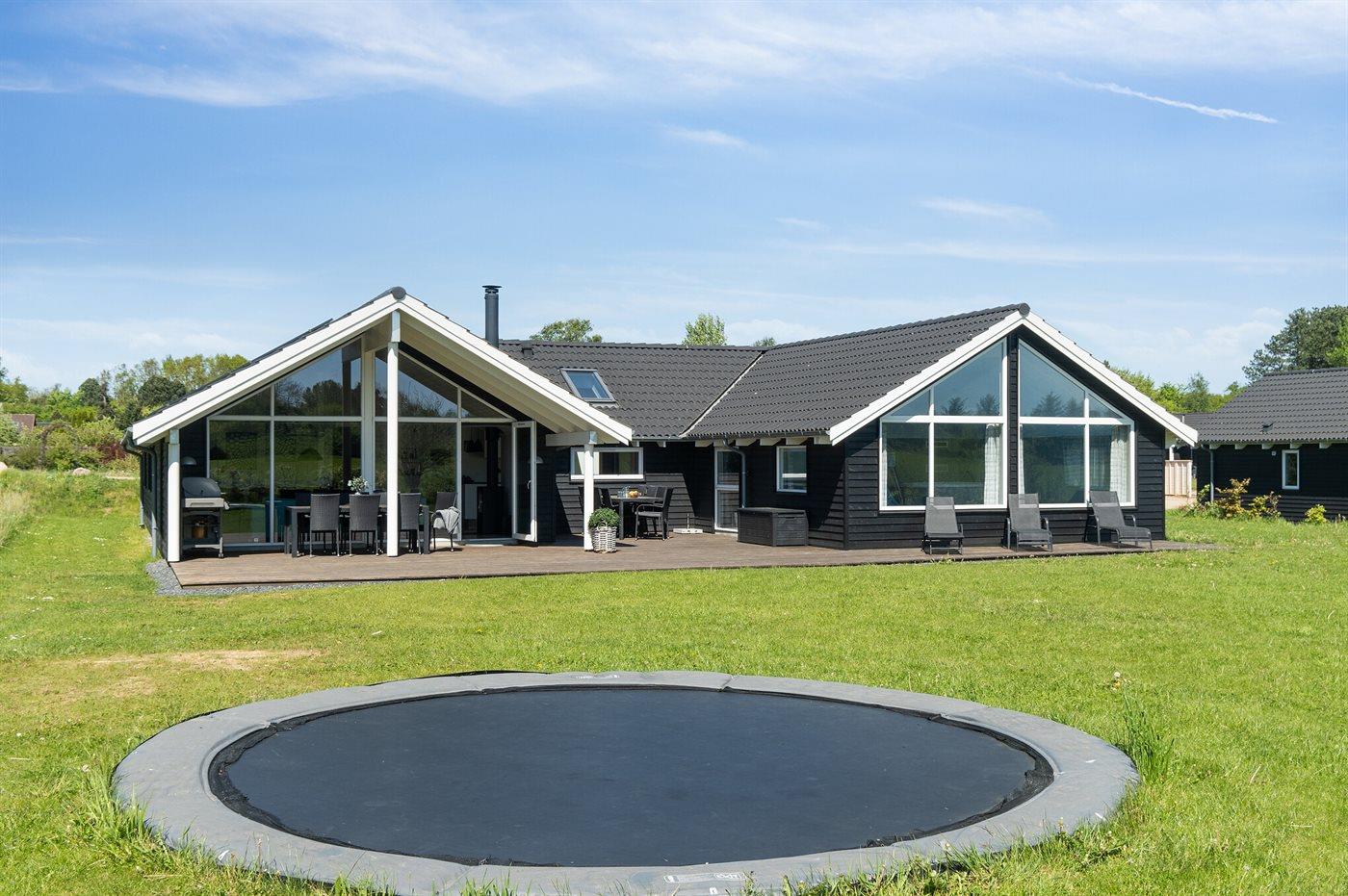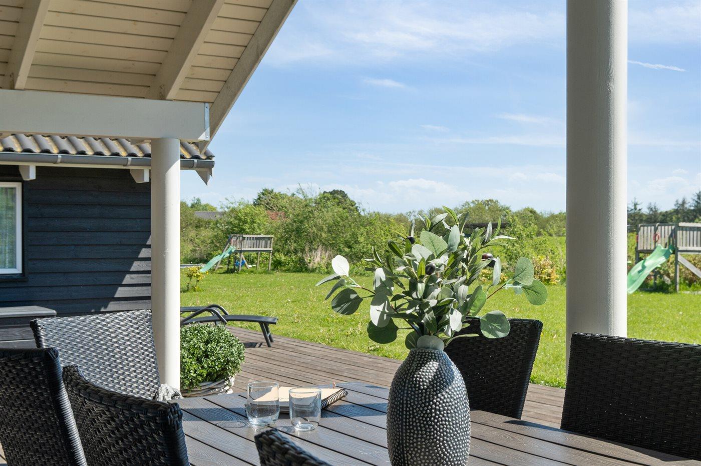 Ferieboligen er beliggende på en 1354 m² stor havegrund. Der er 800 m til havet. Nærmeste forretning er beliggende i en afstand af 2000 m. Til ferieboligen hører 100 m² terrasseareal. Desuden er der 18 m² overdækket terrasse. Gynge. Trampolin. Legetårn. Rutchebane. Grill til rådighed. Der er installeret stik til opladning af elbil. Type 2 stik. Med 11 kW ladeeffekt. Parkering ved ferieboligen.