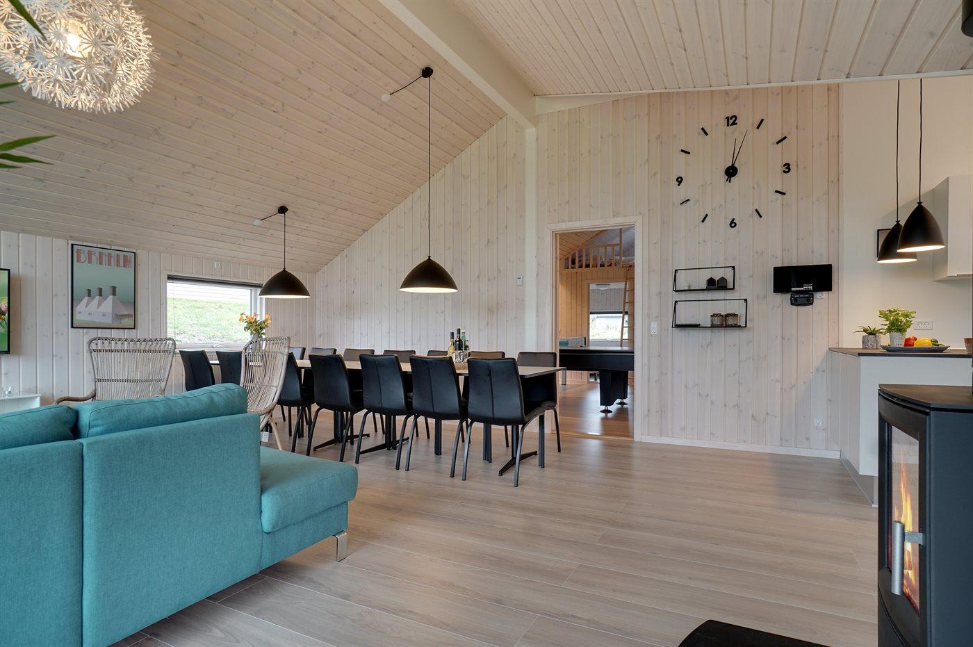 Sommerhuset egner sig til 14 personer. Ferieboligen er på 186 m² og er bygget i 2019. Det er ikke tilladt at medbringe husdyr. Ferieboligen er udstyret med energibesparende varmepumpe. Hele ferieboligen har gulvvarme. Ferieboligen har vaskemaskine. Tørretumbler. Frysekapacitet på 250 liter. Der er desuden brændeovn. Til de små er der 1 stk. barnestol. Puslebord.