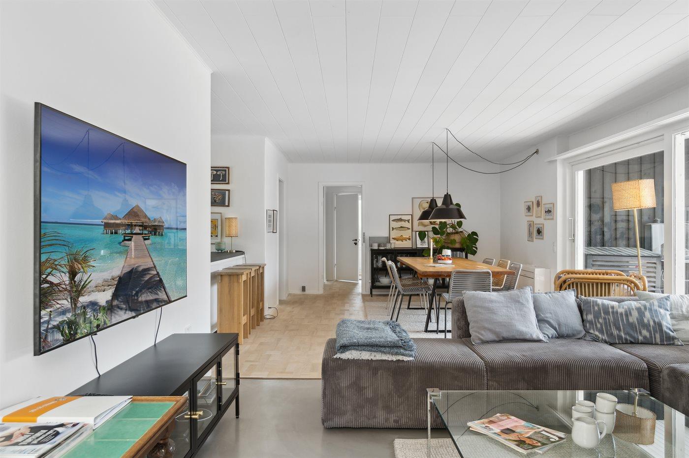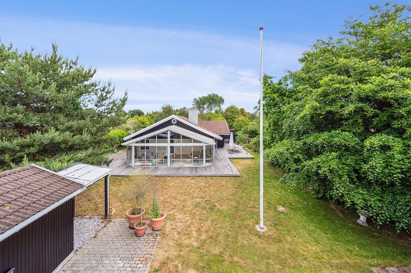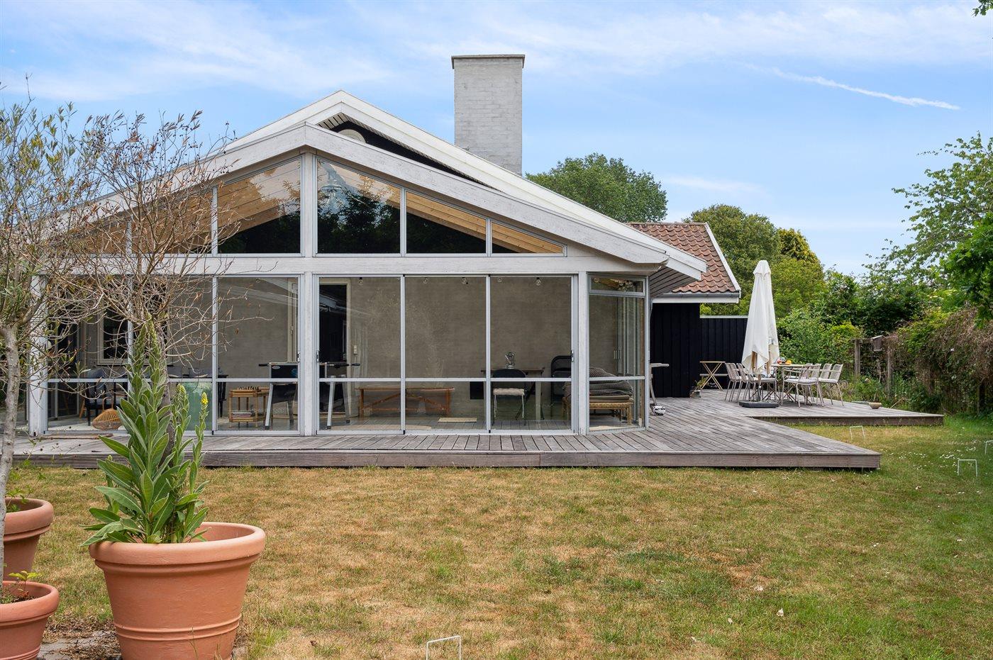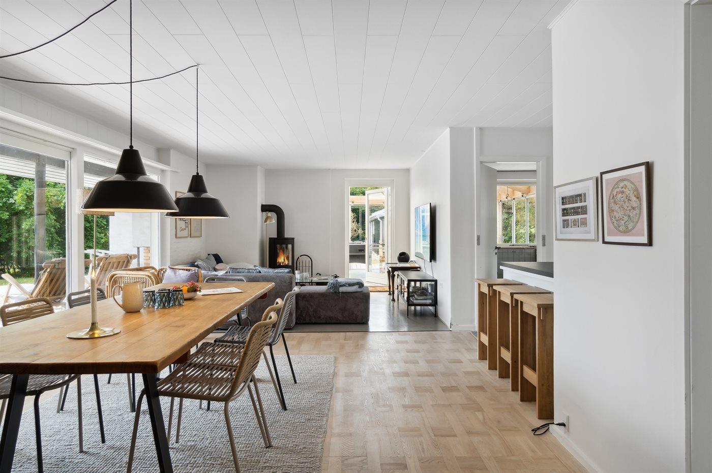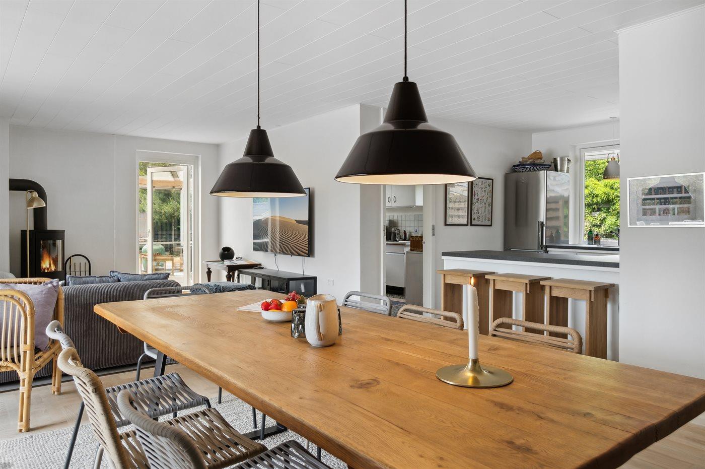 Et dejligt beliggende sommerhus med under 300 meter til stranden. Huset er meget rummeligt, renoveret i 2021 og fremstår moderne og funktionelt. Fra stuen og det åbne køkkenalrum er der udgang til det store og ugenerte terrasseområde, som er delvist overdækket og hvor der findes udendørs pejs.