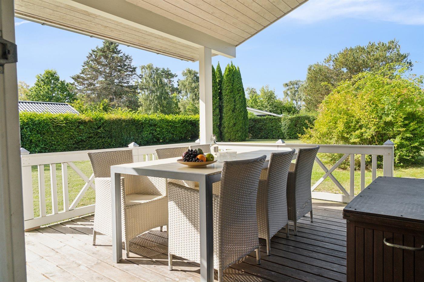 Hyggeligt sommerhus ved Vejby Strand med indendørs spa og store terrasser i naturskønne omgivelser.