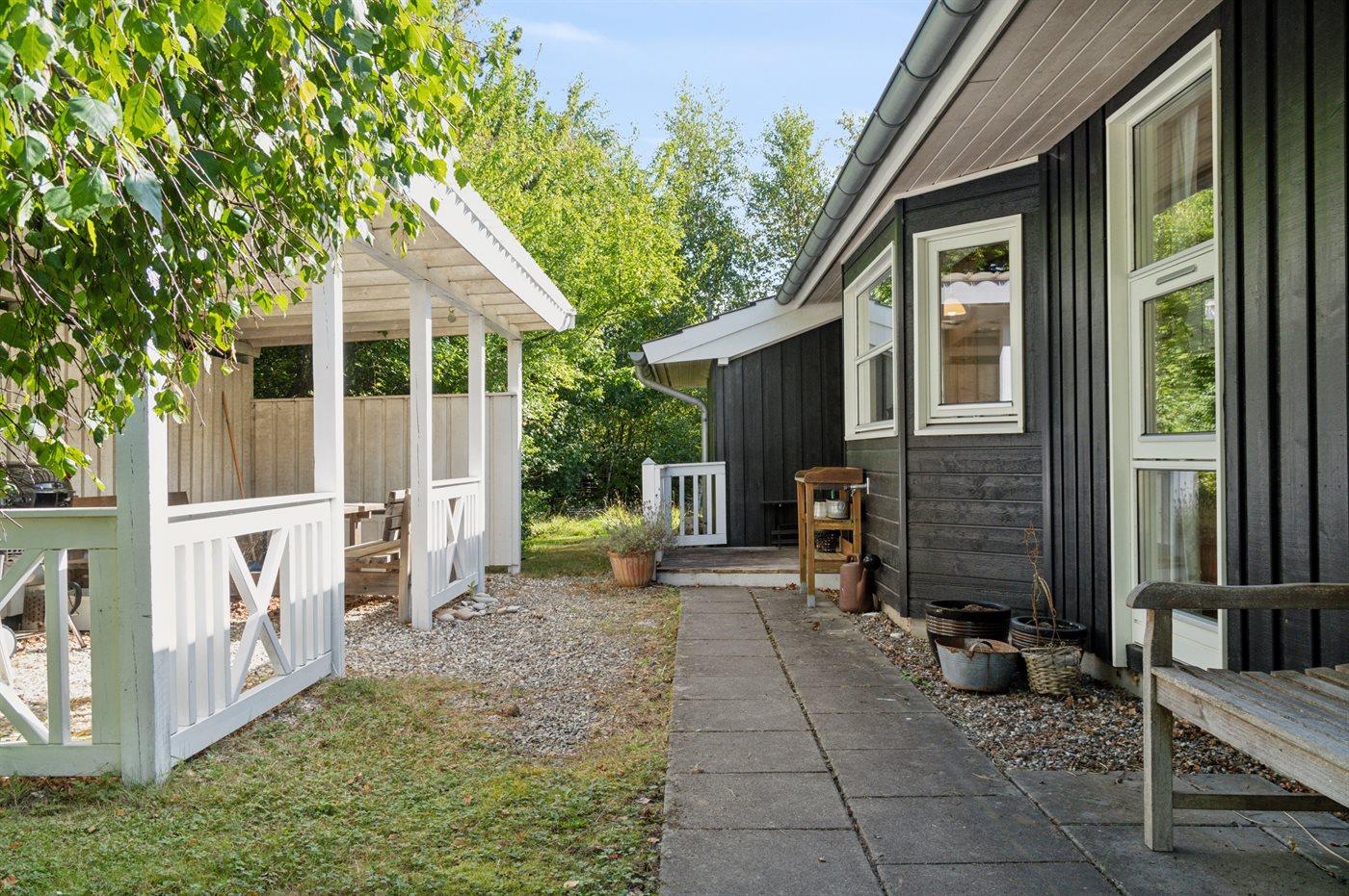 Ferieboligen er beliggende på en 1184 m² stor havegrund. Der er 575 m til havet. Nærmeste forretning er beliggende i en afstand af 1700 m. Til ferieboligen hører åbent terrasseareal. Desuden er der overdækket terrasse. Gynge. Legehus. Grill til rådighed. Parkering ved ferieboligen.