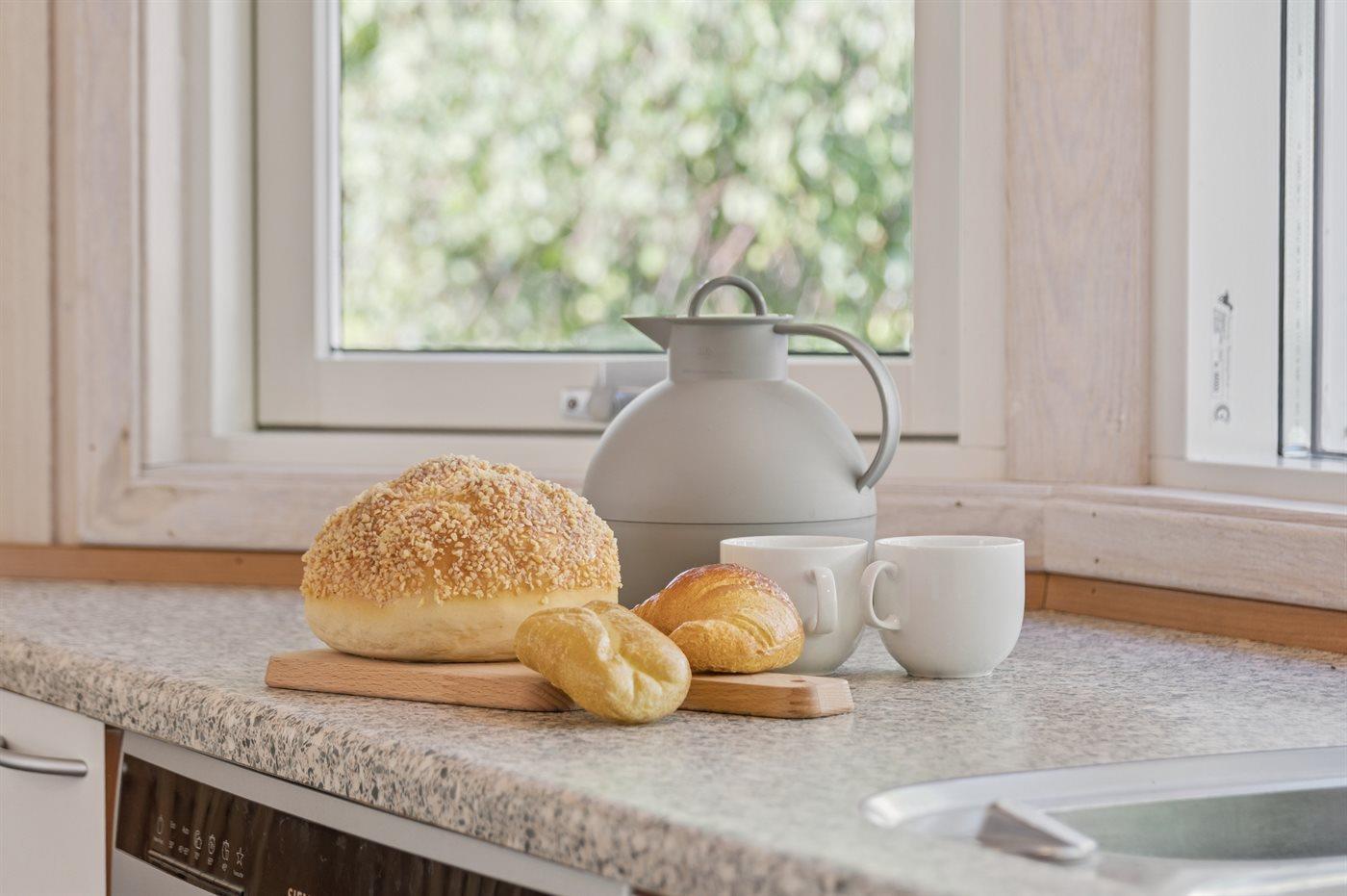Køkkenet er udstyret med 1 køleskab. Der er 4 keramiske kogeplader, varmluftovn, mikrobølgeovn samt opvaskemaskine.