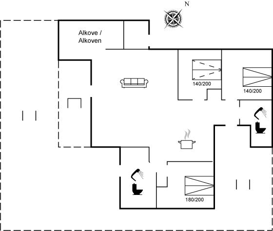 Der er i alt 3 soveværelser. Sovepladserne fordeler sig på: 4 sovepladser i dobbeltsenge. 2 sovepladser i sovesofa (dobbelt).