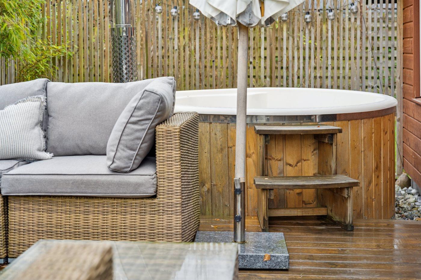 Der er mulighed for afslapning i det udendørs vildmarkskar til 4 personer.