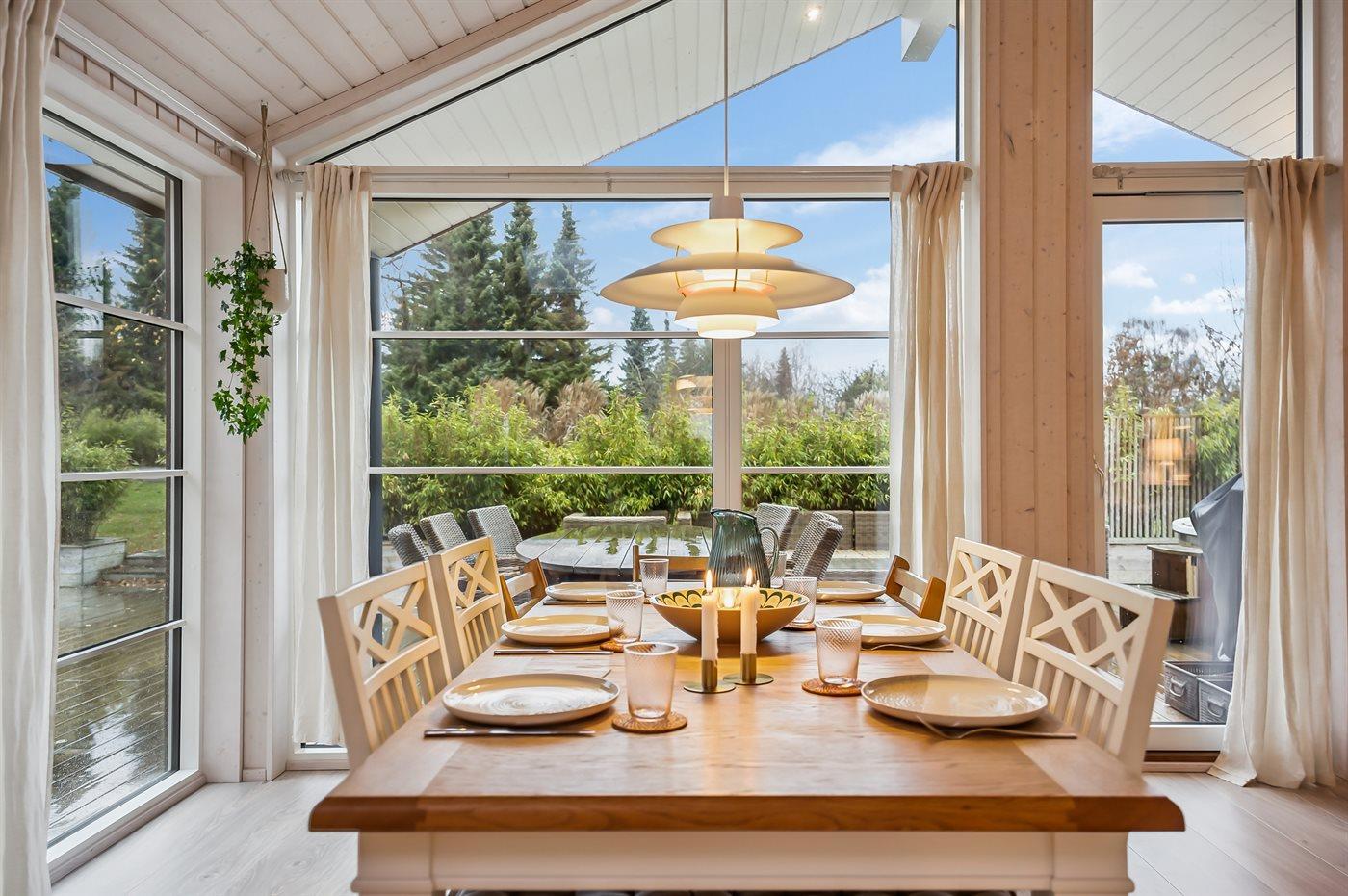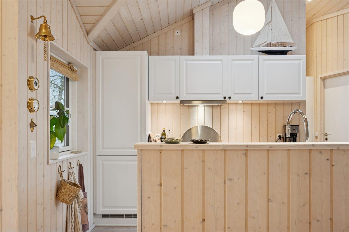 Køkkenet er udstyret med 1 køleskab. Der er 4 keramiske kogeplader, varmluftovn samt opvaskemaskine. Desuden findes der et vinkøleskab.
