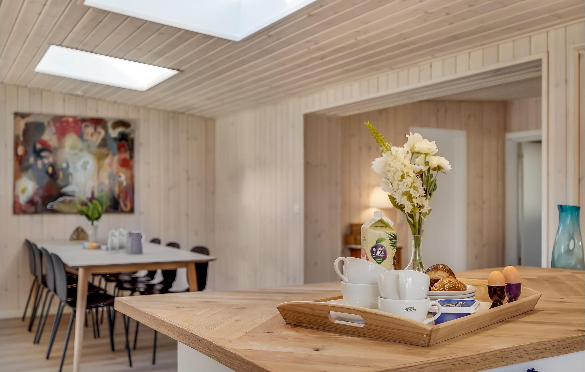 Drømmer I om en ferie nær havet i stilfulde omgivelser? Så er I kommet til det rette sted. I de lyse værelser i det komfortable hus kan I slappe af med hele familien og nyde den klassiske sommerhuscharme. Den moderne og hjemlige indretning sikrer, at I føler jer hjemme her. Lav mad sammen og nyd måltiderne ved det lange spisebord med en smuk udsigt til haven. Efter en dejlig dag tilbragt på stranden eller på udflugt kan I sidde sammen længe om aftenen på komfortable sofaer og lytte til flammernes knitren i brændeovnen. Nyd solen på terrassen, mens I ser børnene lege, og afslut en dejlig dag med et måltid fra grillen.