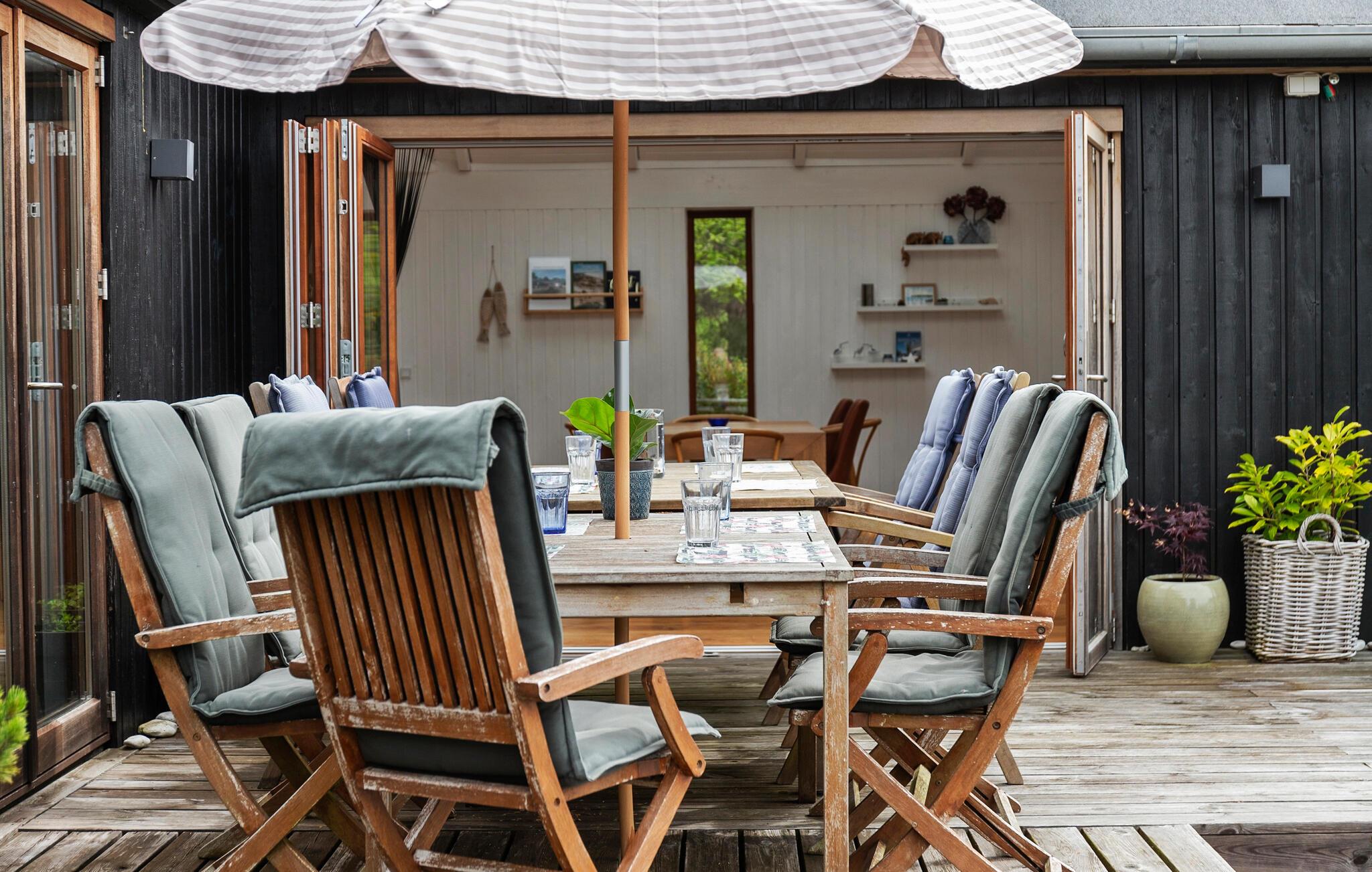 Tilbring tid sammen på den store træterrasse. Slap af i den balinesiske seng med hvide gardiner eller i hængekøjen under træet. Nyd måltider udendørs sammen, og se børnene lege på den store grund med rutsjebane og gynger.