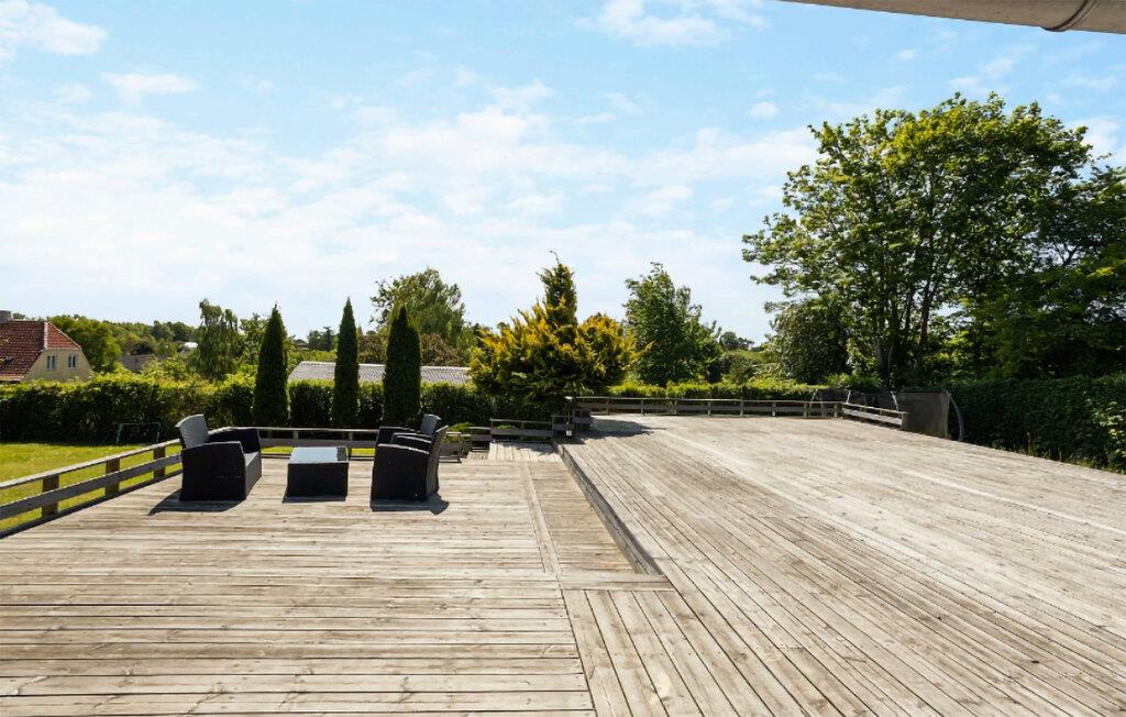 Træd ud på den rummelige træterrasse og tilbring afslappende timer i den friske luft. Sæt jer i de komfortable loungemøbler eller nyd måltiderne under åben himmel. Brug grillen til hyggelige aftener i den velholdte have. Det store udendørsområde byder på masser af plads til leg og hyggestunder for børn og voksne.