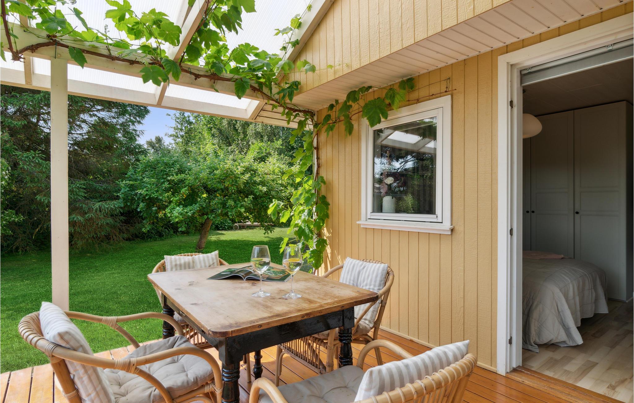 Læg telefonerne fra jer og tilbring en afstressende ferie i dette hyggelige gule træhus med indbydende interiør i varme toner og en god atmosfære. Feriehuset byder på nok plads og alt, hvad I behøver for at føle jer godt tilpas. Der er lagt op til uforglemmelige timer med fælles madlavning i det blå køkken, leg, spillehygge, puslespil og måske endda et velgørende grineflip i ny og næ. Også terrassen og flere hyggekroge i haven byder på dejlige steder til afslapning i solen, familiemåltider og lune sommertimer om aftenen med et glas vin, ligesom den store græsplæne opfordrer til en sjov løbekonkurrence. Nyd den gode sandstrand, som er lige i nærheden, eller prøv lykken med fiskestangen.