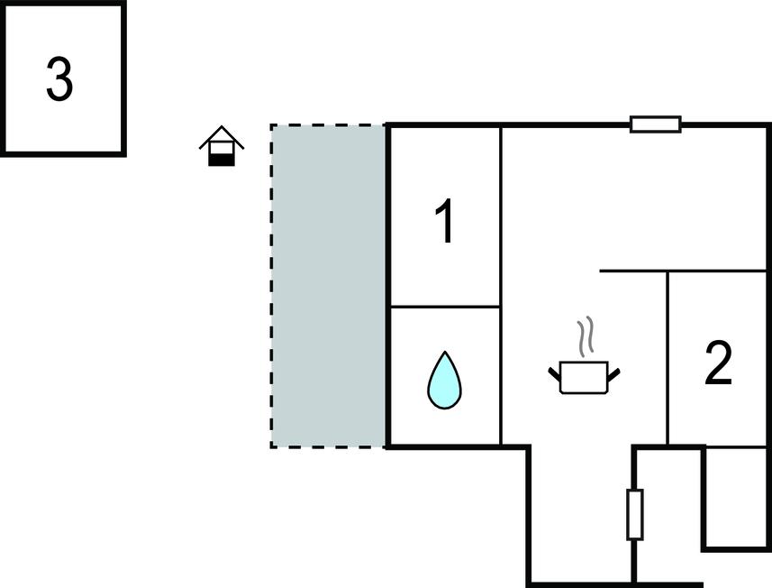 Soveværelse (nr. 1) - 2 Sovepladser. (Enkeltseng(e)).