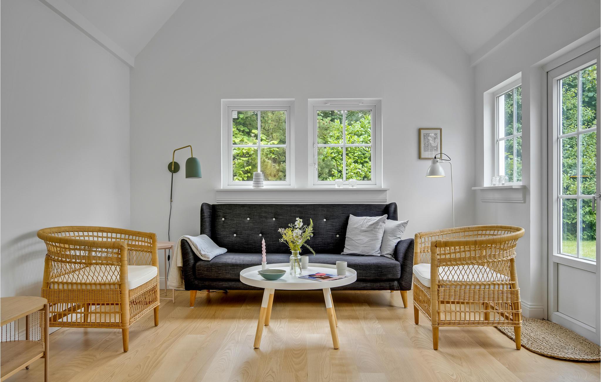Oplev en afslappende ferie med familie eller venner i dette moderne og smarte feriehus. Den store stue er særligt indbydende og giver jer en hyggelig ramme for at tilbringe tid sammen med at lege, lave mad, spise og slappe af. Efter jeres aktive feriedage kan I også bruge saunaen til at få varmen og komme helt ned i gear. Bagefter kan I slappe af på en af de to terrasser og nyde den grønne have.