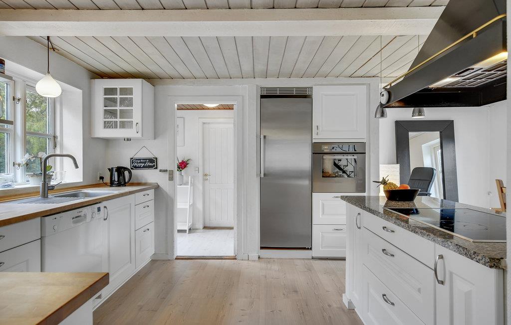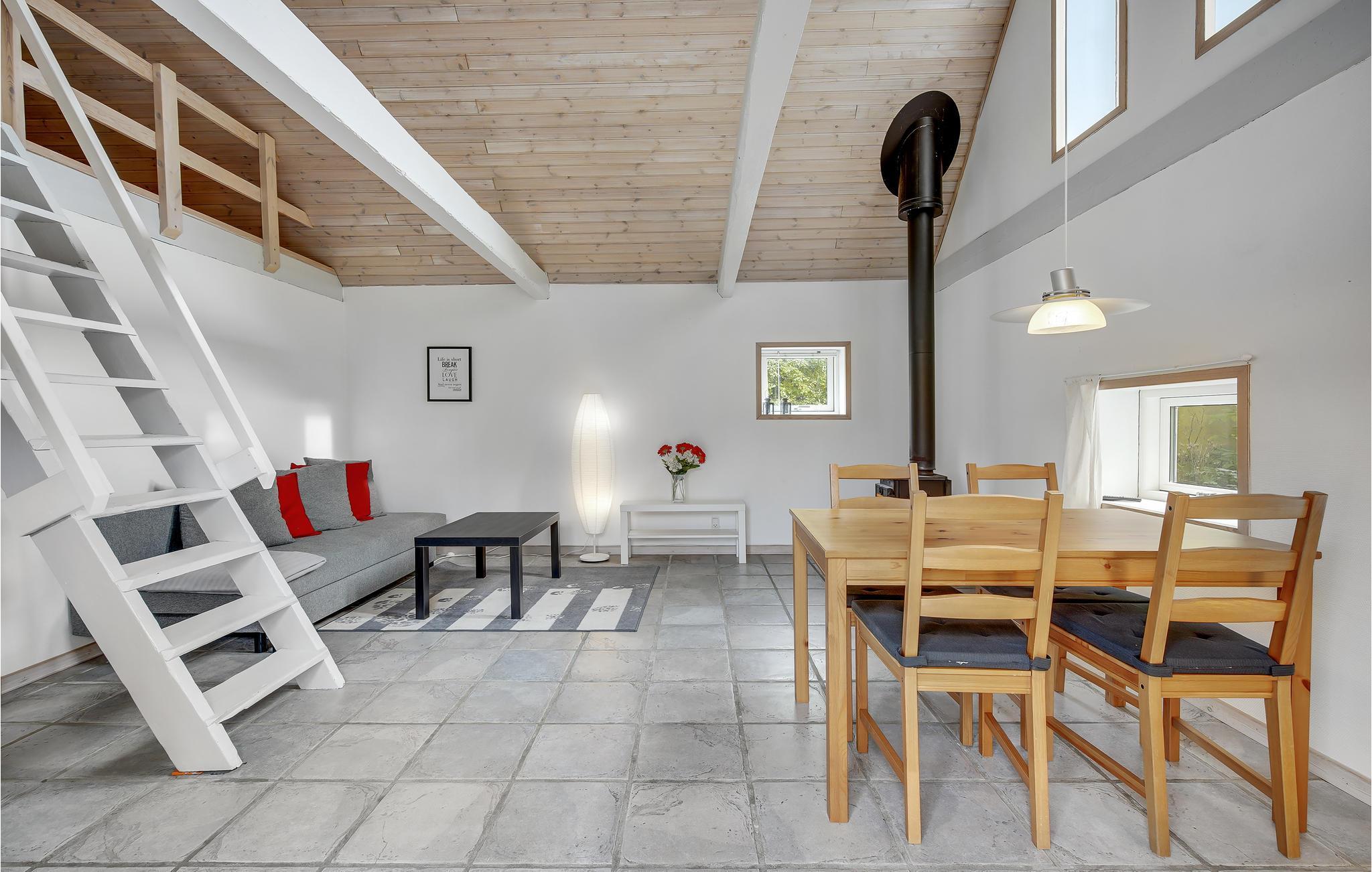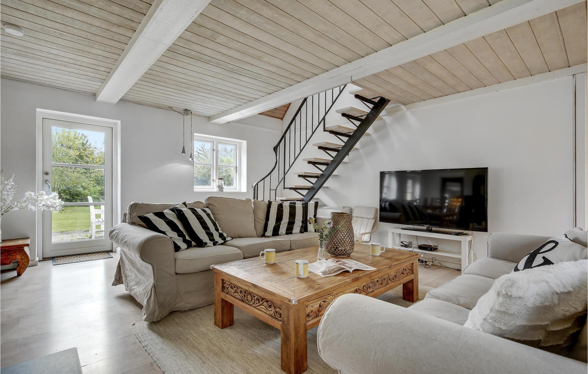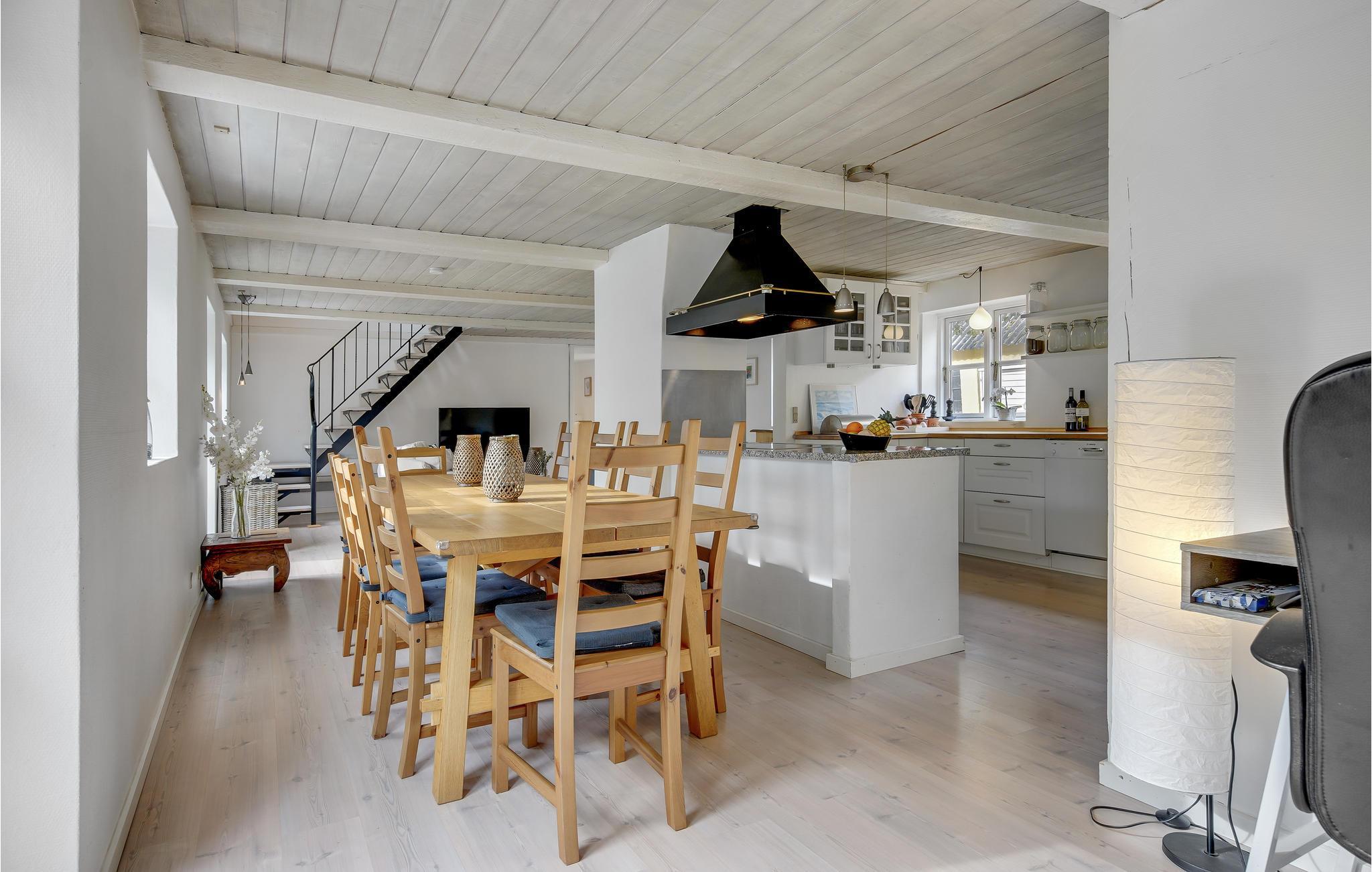 Ferieboligen er opdelt i flere afdelinger og egner sig derfor rigtig godt til flere familier, der holder ferie sammen, men stadig ønsker at kunne trække sig tilbage indimellem. Hovedbygningen er fuldt udstyret med et moderne åbent køkkenalrum, opholdsstue og soveværelser i såvel stueplan som på 1. etage. Herudover gæstehus med eget køkken og bad samt trappe op til hemsen med to sovepladser.