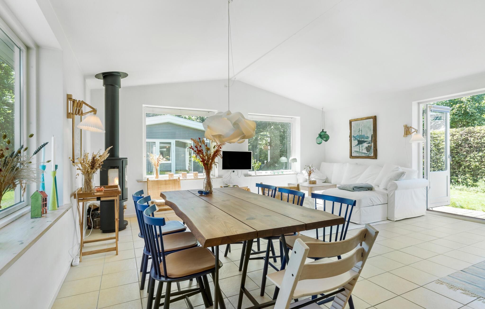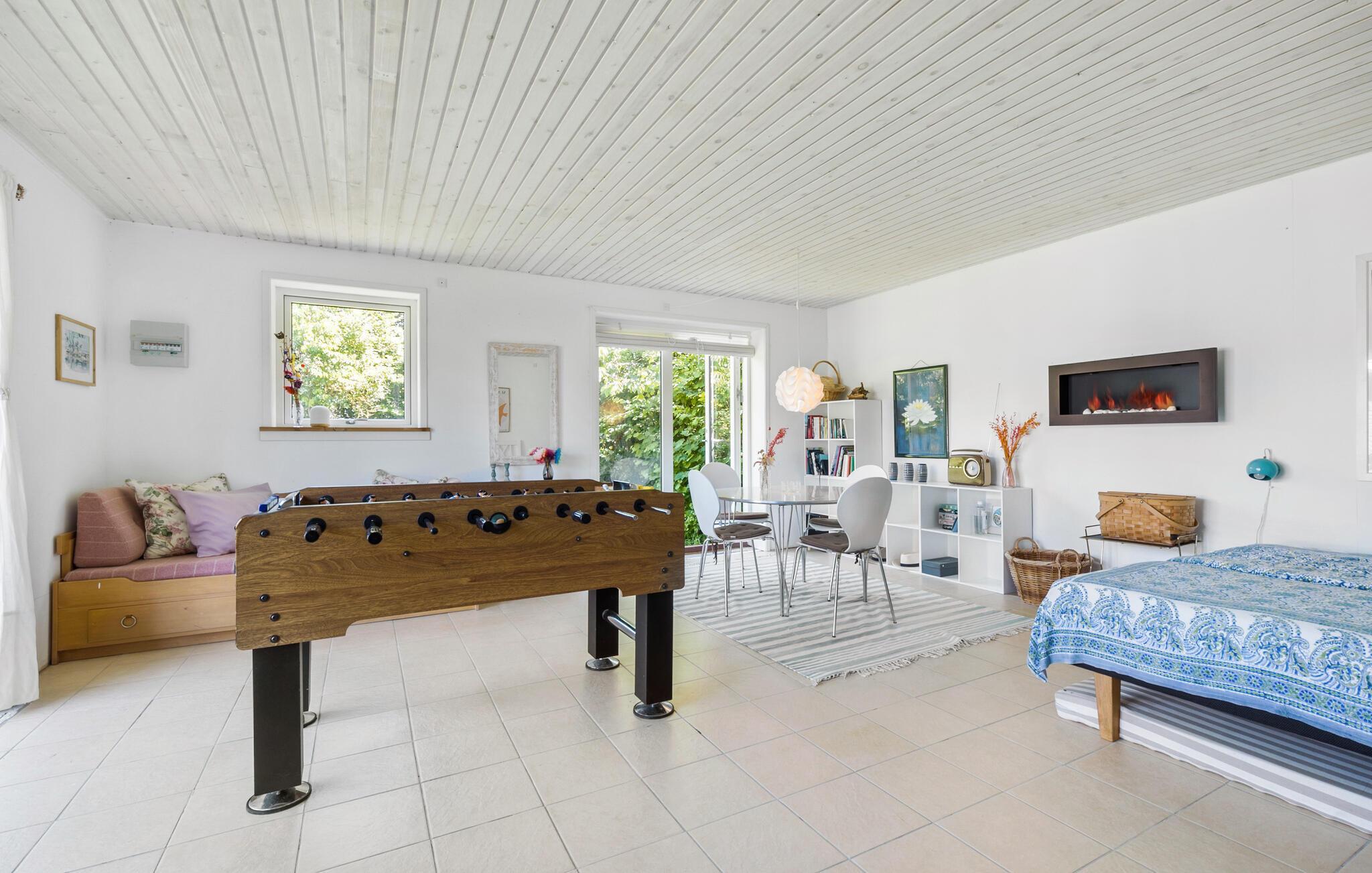Velkommen til denne behagelige feriebolig, der består af to bygninger, som giver jer alt, hvad I har brug for til en vellykket familieferie. Det familievenlige hus indbyder til at tilbringe mange timer sammen i den hyggelige stue med flot dekor. I bestemmer selv, om I vil lave mad sammen, varme jer foran brændeovnen eller spille bordfodbold. Den dejlige have med flere terrasser er ideel til at grille lækre grøntsager eller friskfanget fisk, spise og hygge sig på de lune sommeraftener. Lad de små gå på opdagelse i legehuset og forvandle græsplænen til deres egen personlige legeplads.