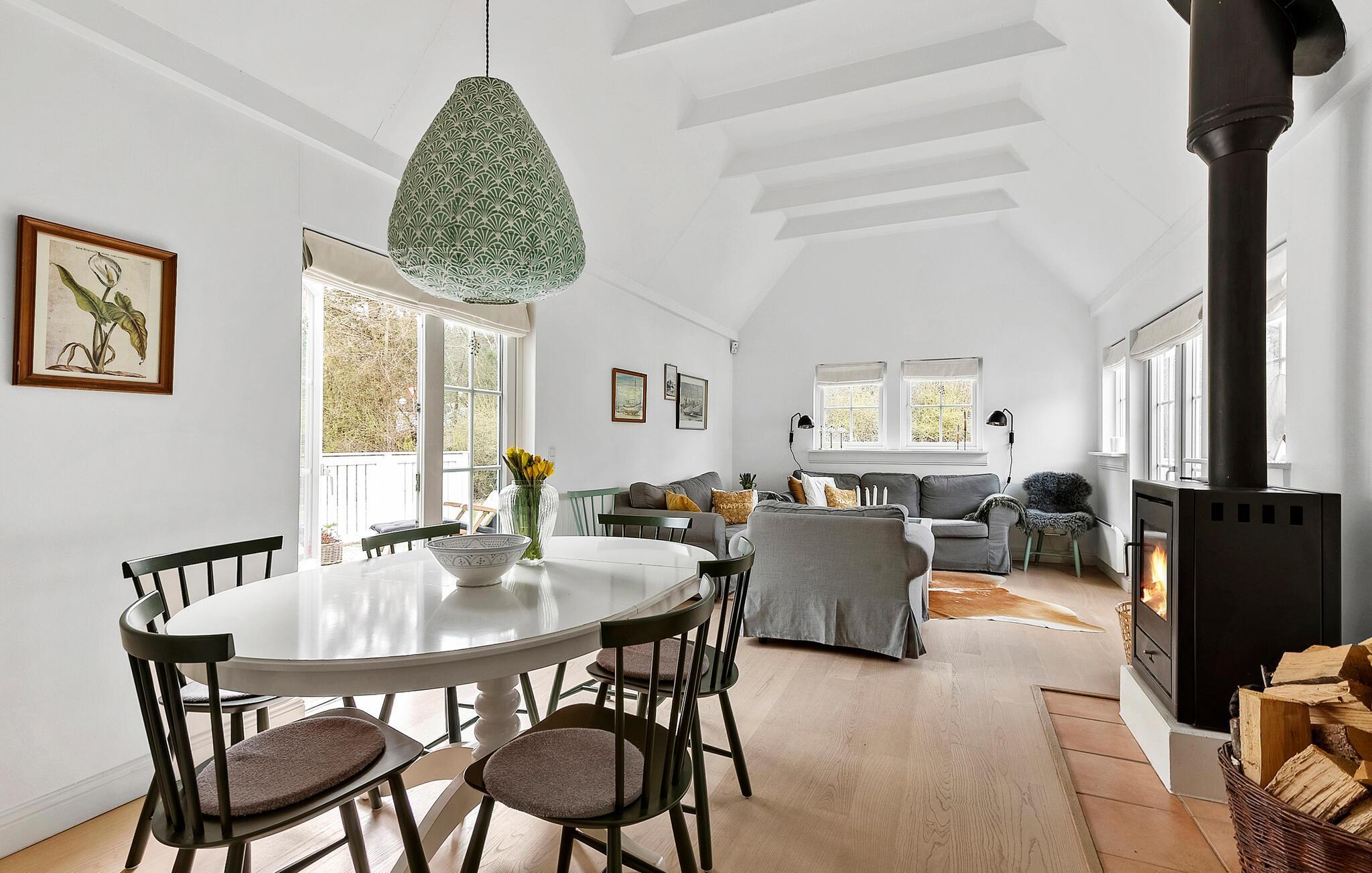I dette sommerhus finder hele familien en velkommen pause fra hverdagen. Begynd dagene med en afslappet morgenmad ved det elegante spisebord, mens dagen langsomt vågner udenfor. Det lyse opholdsområde med komfortable siddepladser lægger op til afslapning, ideelt til stille læsning eller at spille spil sammen. på kølige dage skaber brændeovnen en behagelig atmosfære. Til særlige velvære-øjeblikke er der en sauna og et spabad til rådighed.