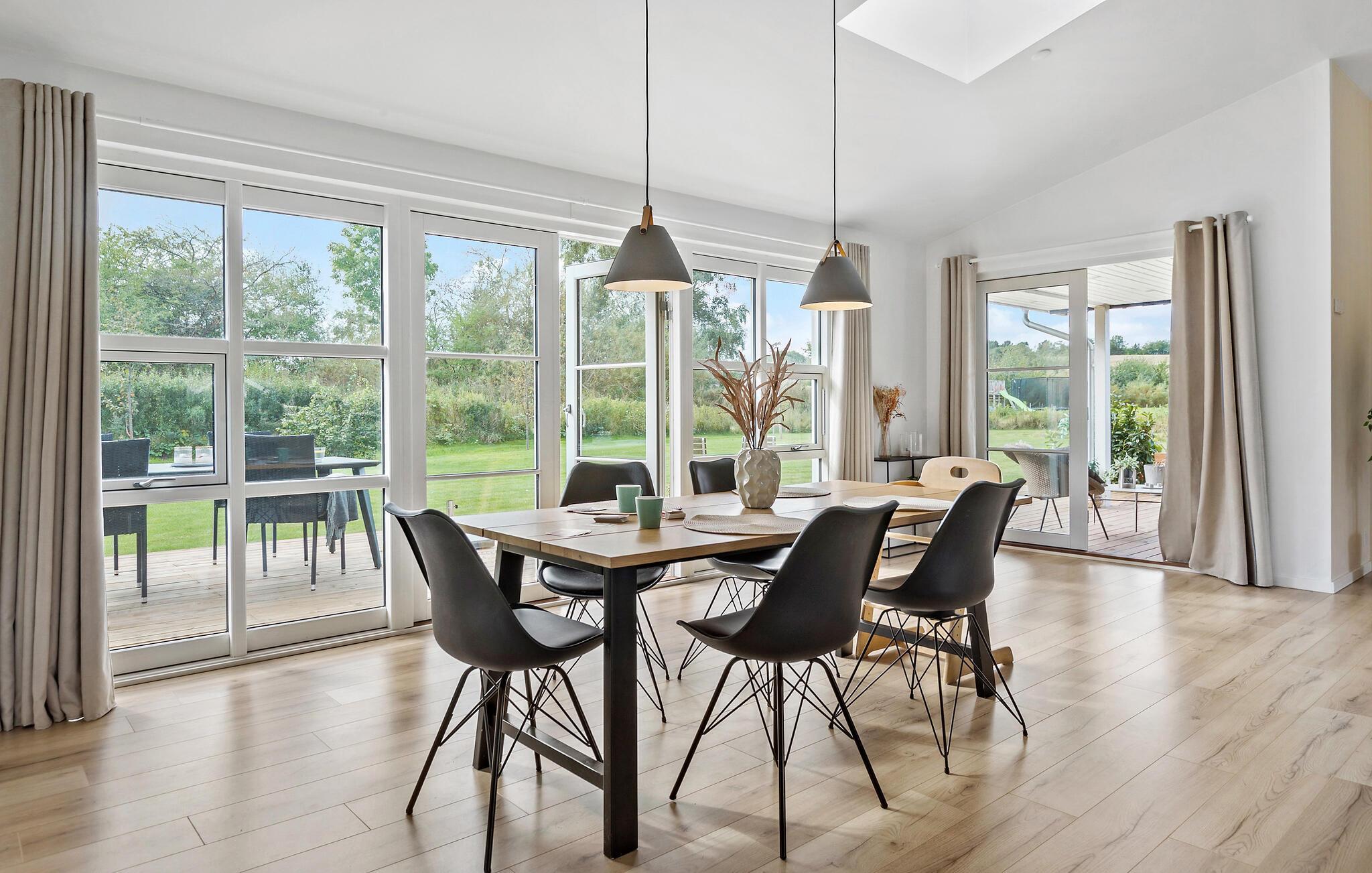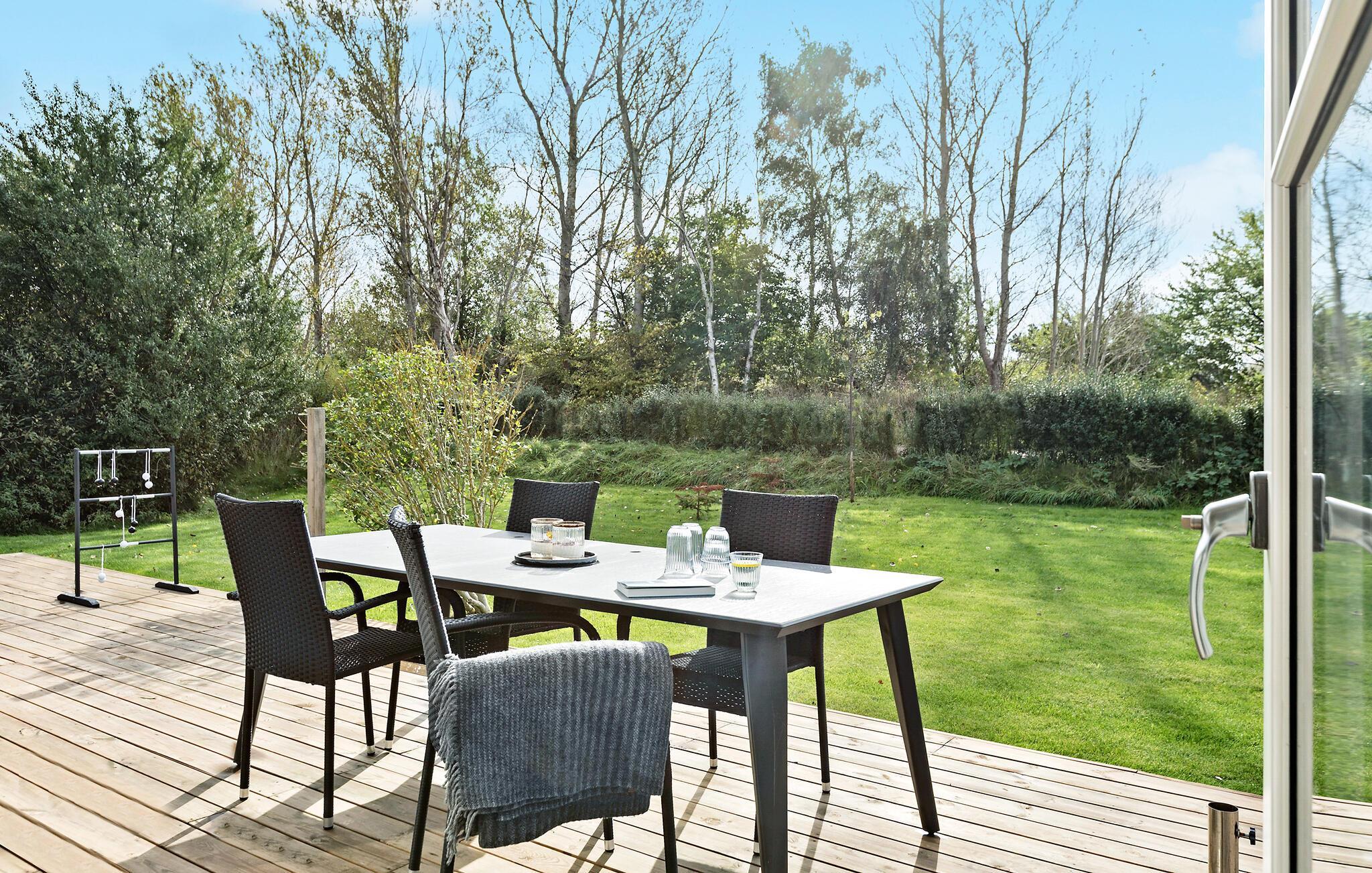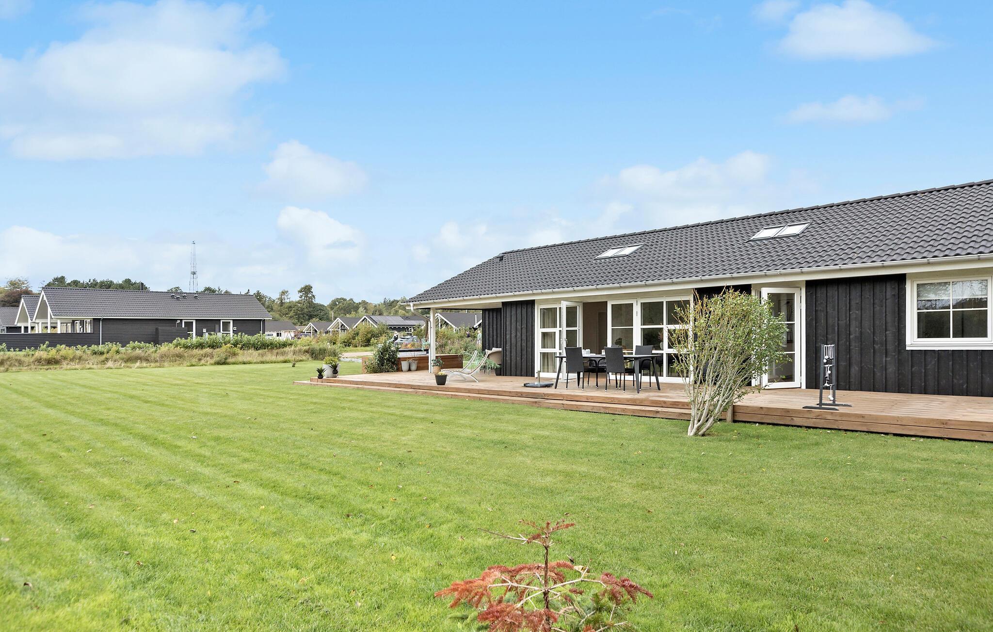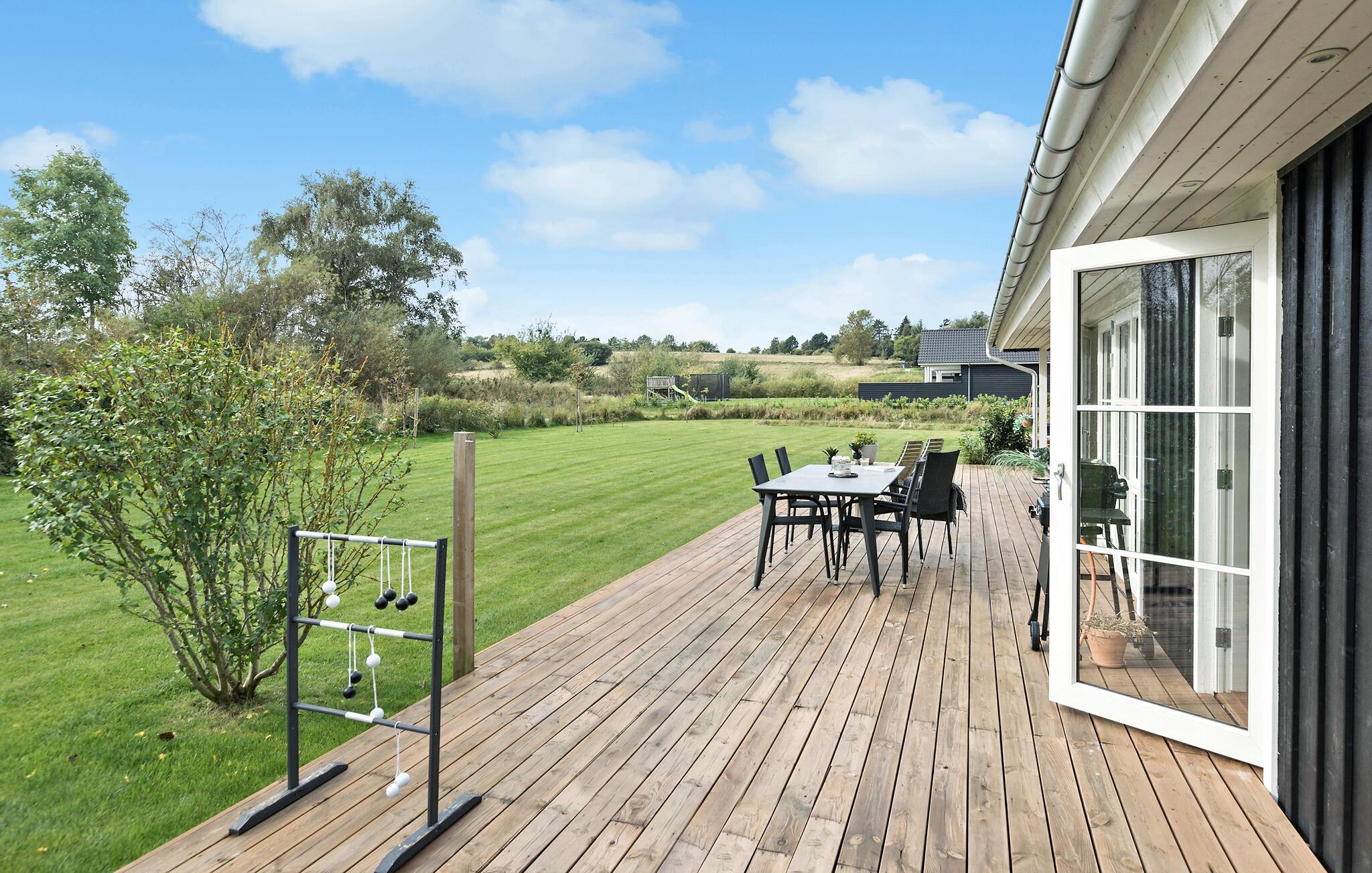 På den rummelige træterrasse kan I slappe af i det indbyggede finske vildmarksbad og nyde den friske luft. Leg spil i haven, eller nyd solen, mens familiens grillmester forbereder aftensmaden. Uanset om det er sommer eller vinter, tilbyder dette nye feriehus det perfekte miljø til en afslappende pause – kun få minutters gang fra vandet og Heatherhill.