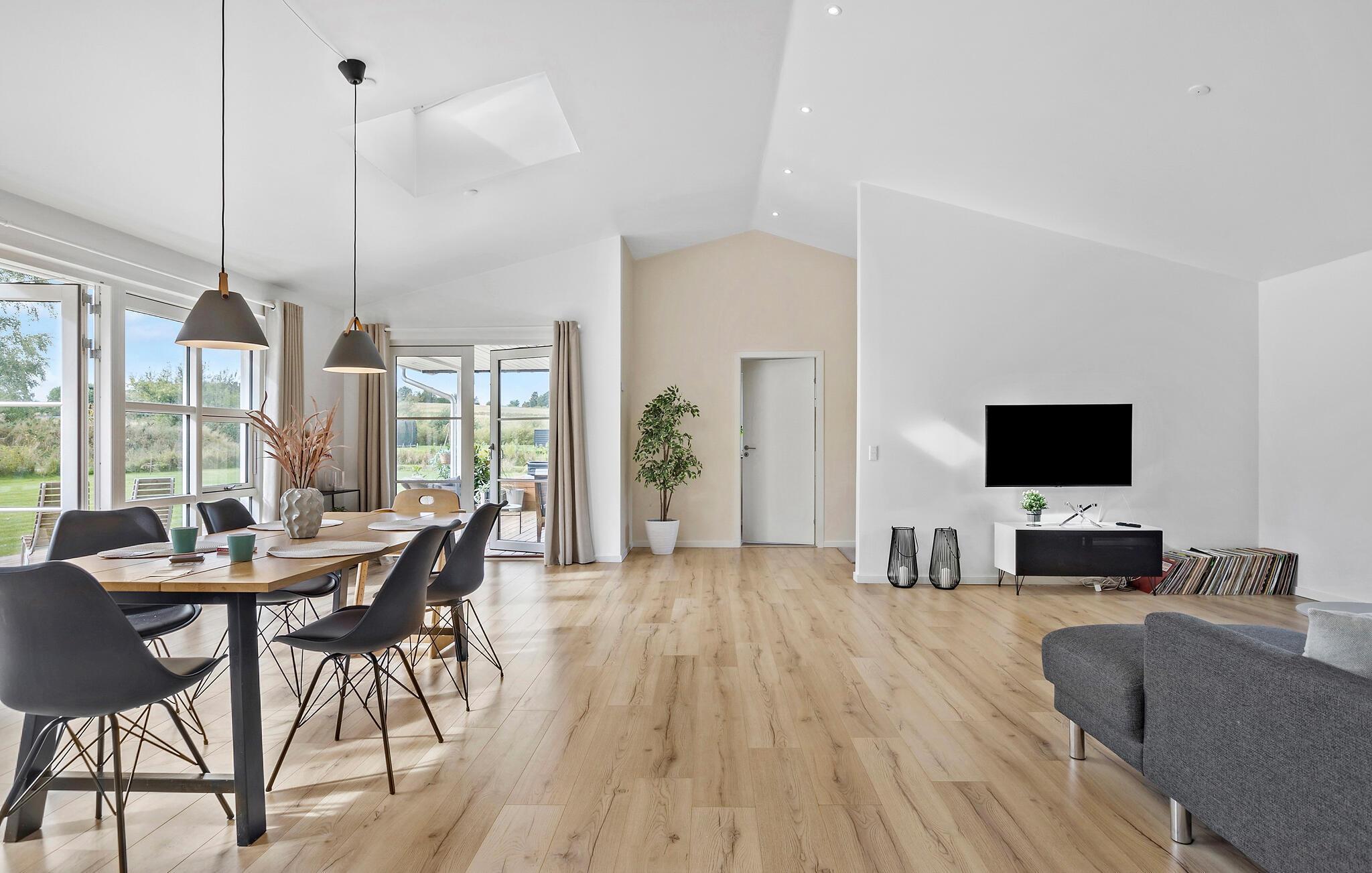 Dette elegante og lyse feriehus ved Vejby Strand inviterer jer til en afslappende ferie med moderne komfort. Den stilfulde og luftige indretning skaber en afslappet atmosfære, hvor I straks vil føle jer hjemme. Nyd samværet med familien i det åbne opholdsrum, hvor I kan lave mad sammen, spise, spille spil eller holde filmaftener.