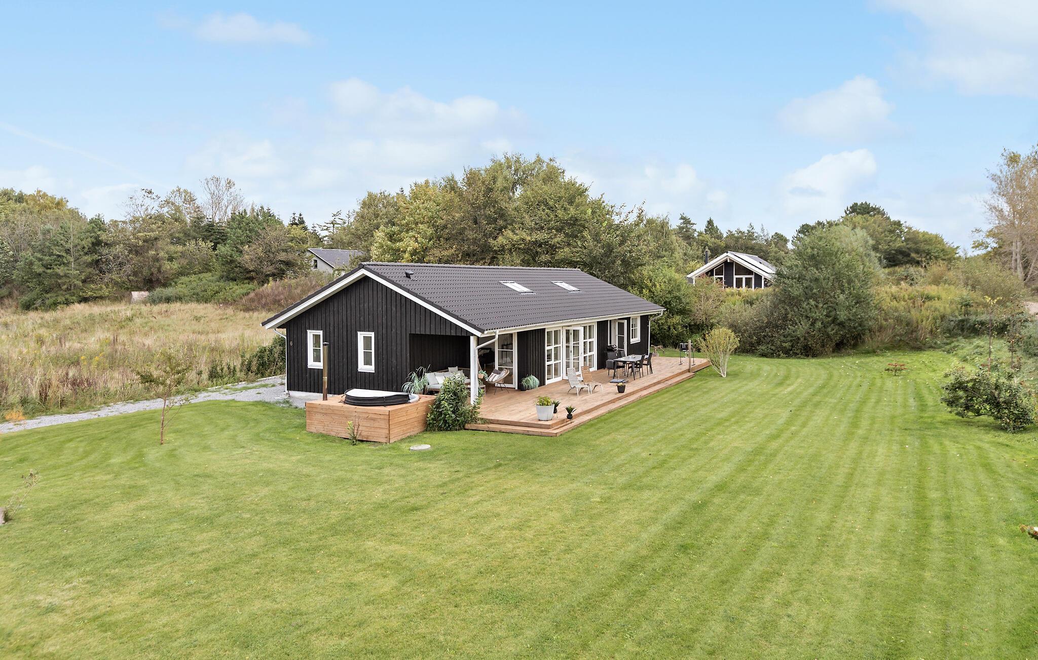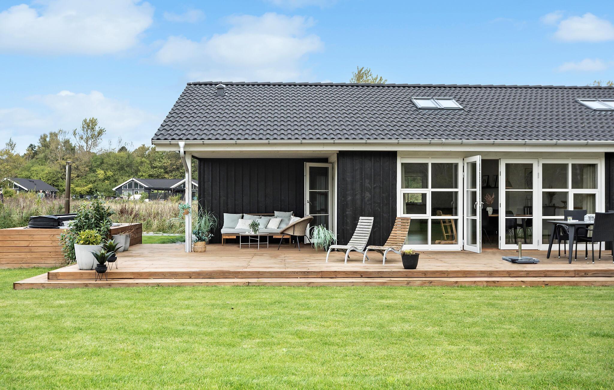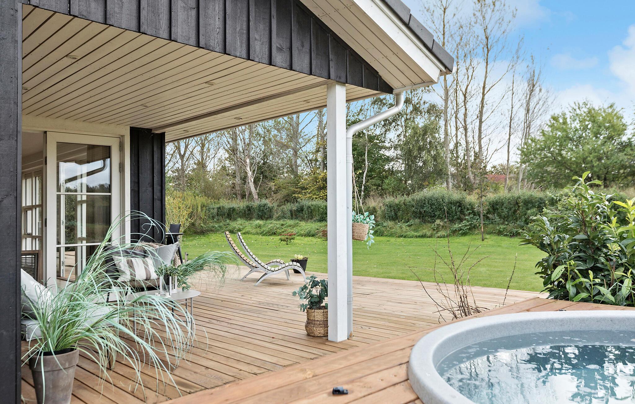 Stilfuldt feriehus ved Vejby Strand med finsk vildmarksbad og moderne komfort til en afslappende ferie.