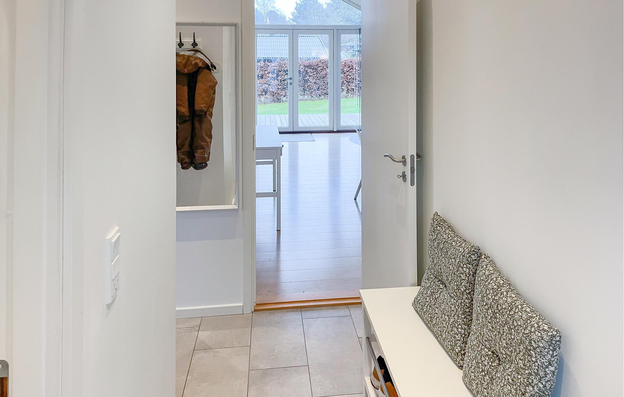 Dette hus har en varm og indbydende atmosfære. De store vinduer oversvømmer stuen med lys, hvor en komfortabel sofa og en brændeovn lægger op til hyggelige aftener. Tilbring en sjov spilleaften, stream en god serie eller slap blot af med en kop kaffe.