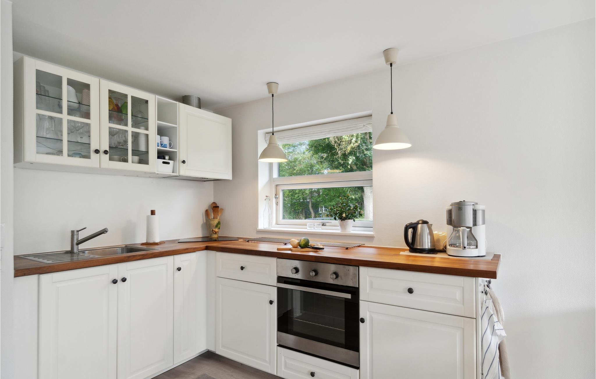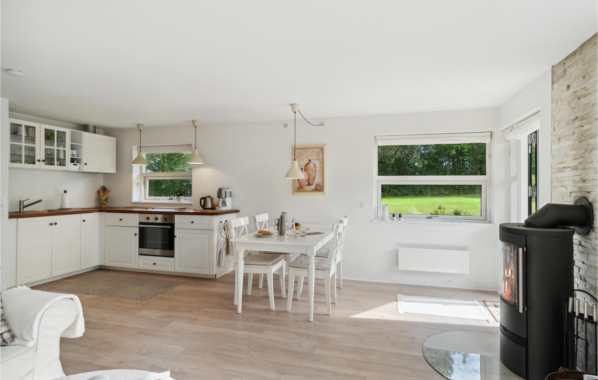 Der venter jer nogle helt særlige feriedage i Nordsjælland, som I kan fylde med friske dukkerter, fisketure og udflugter i området. Her ligger denne dejlige villa, som emmer af lys, feriestemning og smarte indretningsløsninger, så man hurtigt glemmer alt om den hektiske hverdag. I stuen kan I samles omkring spisebordet og snakke om jeres oplevelser, når I vender hjem efter dagens eventyr. Oven på en lang forblæst gåtur er det hyggeligt at få varmen tilbage i fingrene foran ilden i brændeovnen, og senere kan I læne jer godt tilbage i sofahjørnet.