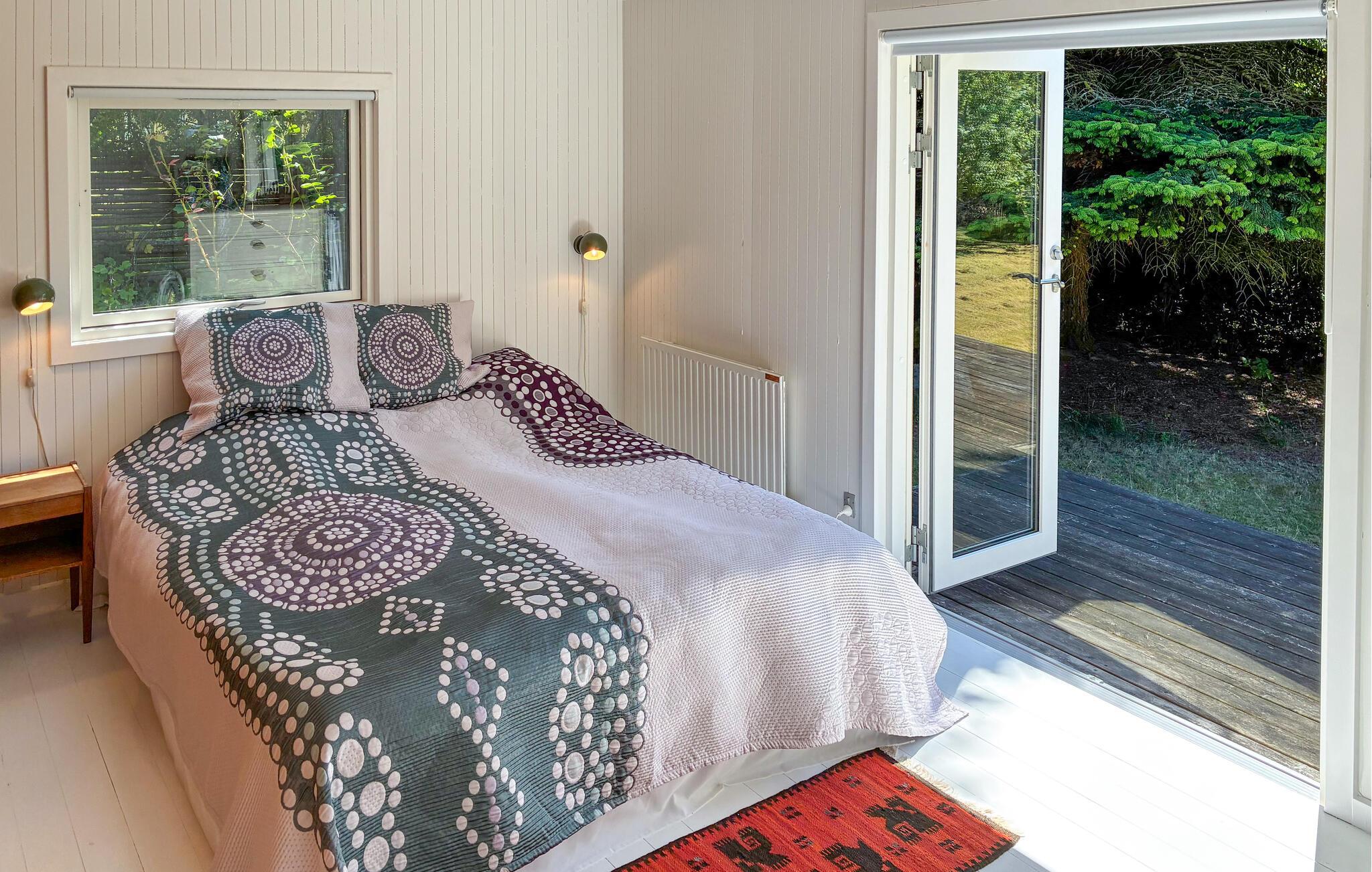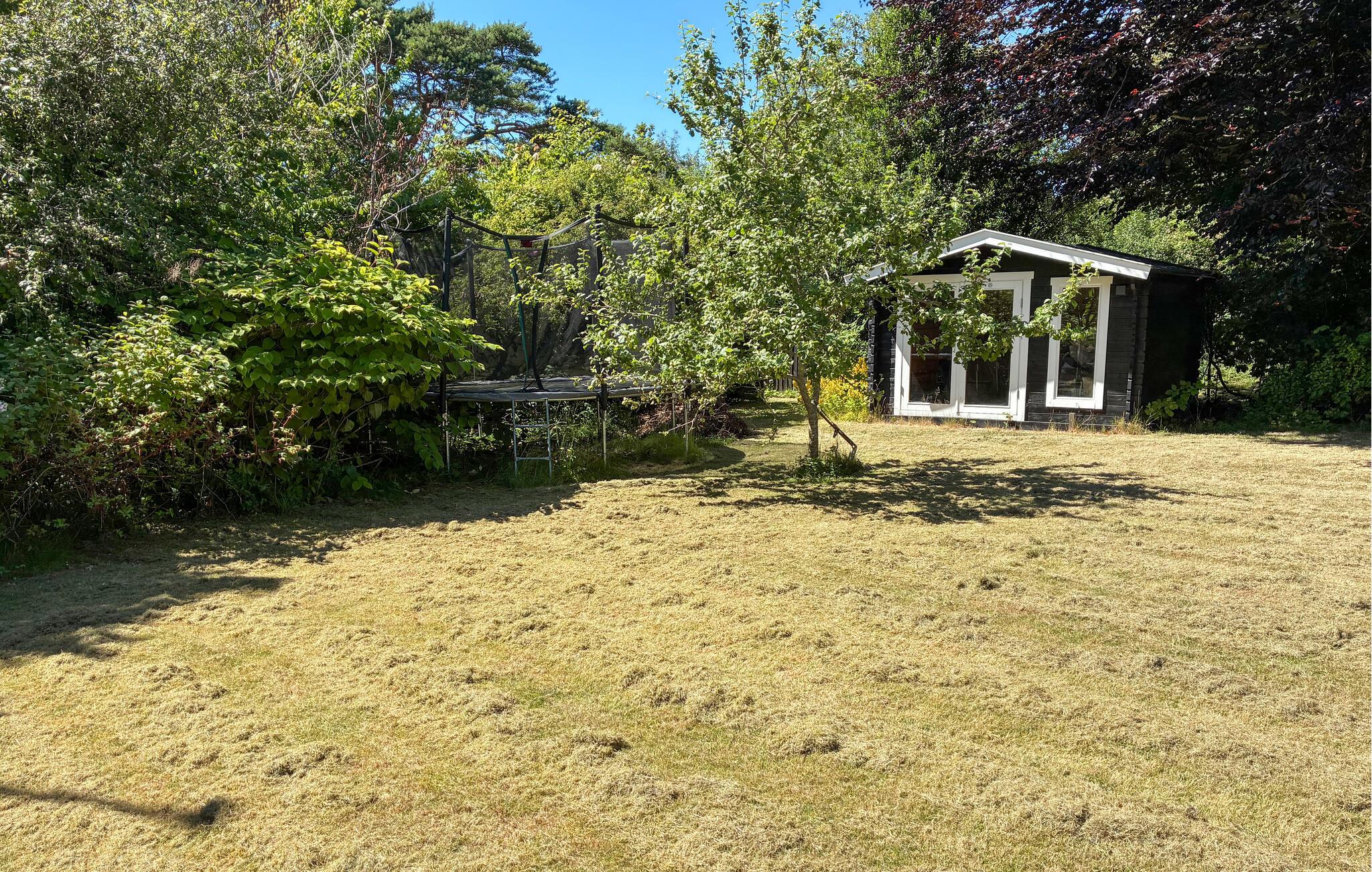 Den idylliske, afskærmede have lokker de små gæster med en trampolin. I mellemtiden kan I nyde solen på terrassen, grille eller snakke over et glas vin i skyggen.