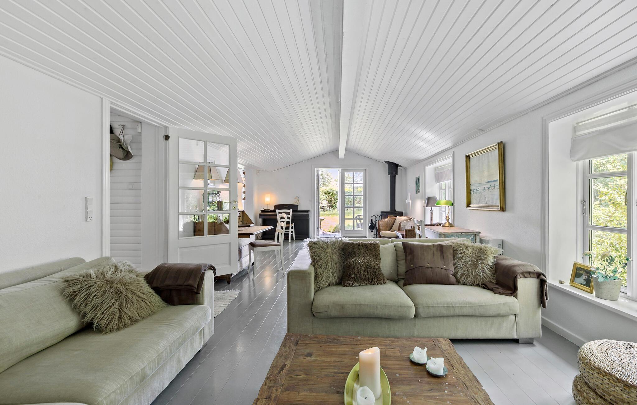 Velkommen til dette flotte og rummelige hus, der ligger i grønne omgivelser på en stor grund tæt på dejlige Vejby Strand. Udover hovedhuset er der sovepladser i annekset, så I kan rejse som en større flok og stadig kunne nyde lidt privatliv, når behovet måtte opstå. Indretningen fremtræder lyst og venligt med åben planløsning, velholdte træpaneler og dejlige lysindfald gennem de sprossede vinduespartier i stuen. Skulle vejret vise lidt tænder, kan I fyre op i brændeovnen, der giver en knitrende varme til måltiderne ved spisebordet eller aftenhyggen i de bløde sofaer. Og måske I har en pianist iblandt, der kan spille op til fællessang ved klaveret?